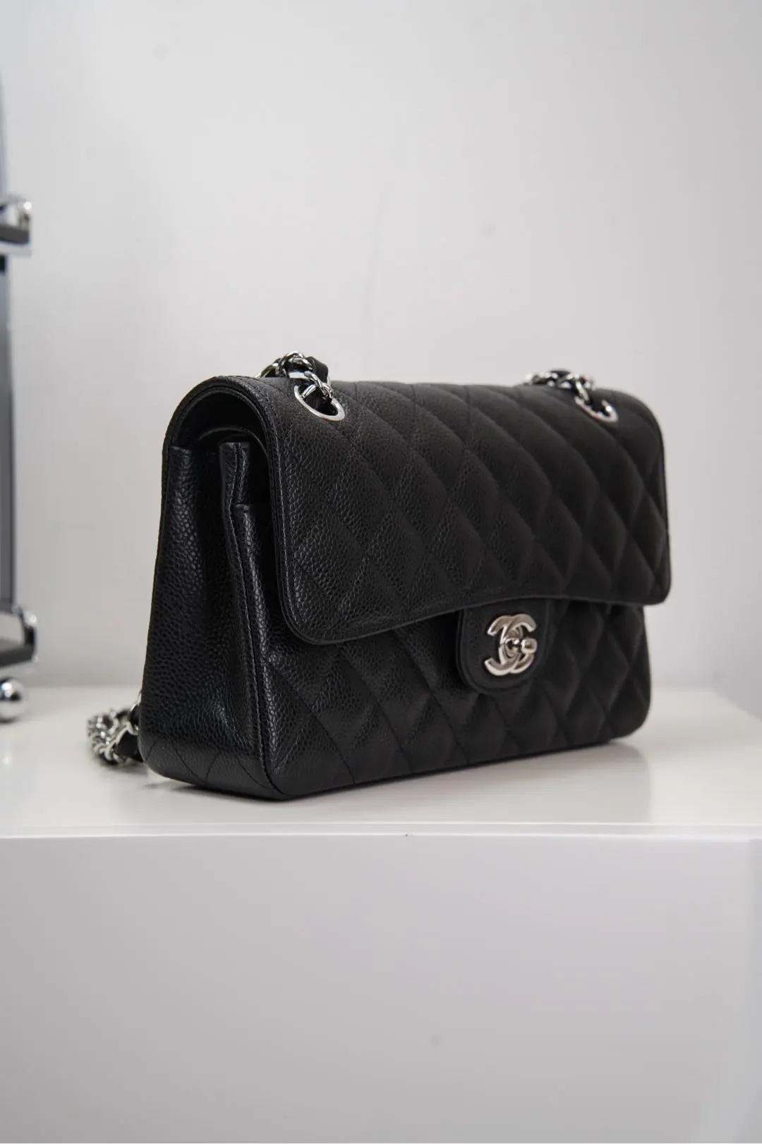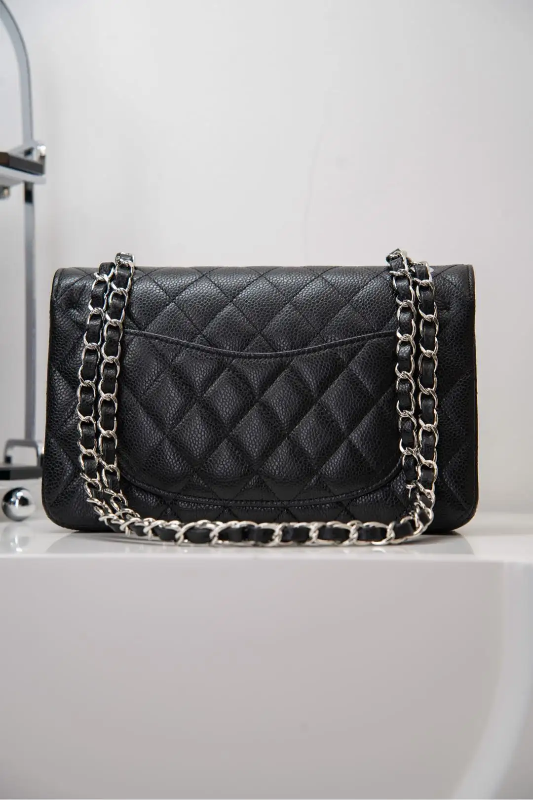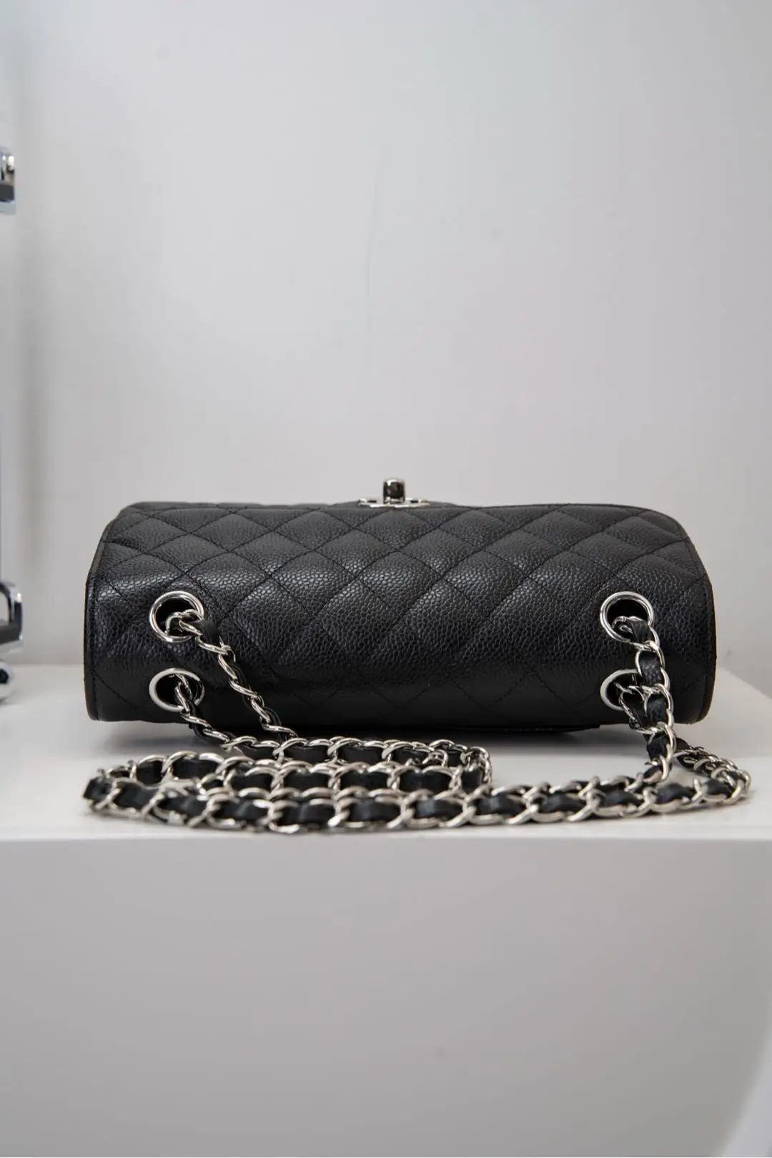 Original Chip Version ℂ𝔽 𝗖𝗹𝗮𝘀𝘀𝗶𝗰 𝗙𝗹𝗮𝗽 Authentic Leather Small Size Black Cow Silver Hardware French 𝐇𝐚𝐚𝐬 Original Lychee Ball Grain Leather, with unparalleled texture and color. Eleven years of handmade craftsmanship focused on the classic model, the front flap and body stitching perfectly aligned, the edge diamond pattern precisely 1:2. Meticulously crafted to present the true essence of the authentic product! Size: 14.5x23x6cm