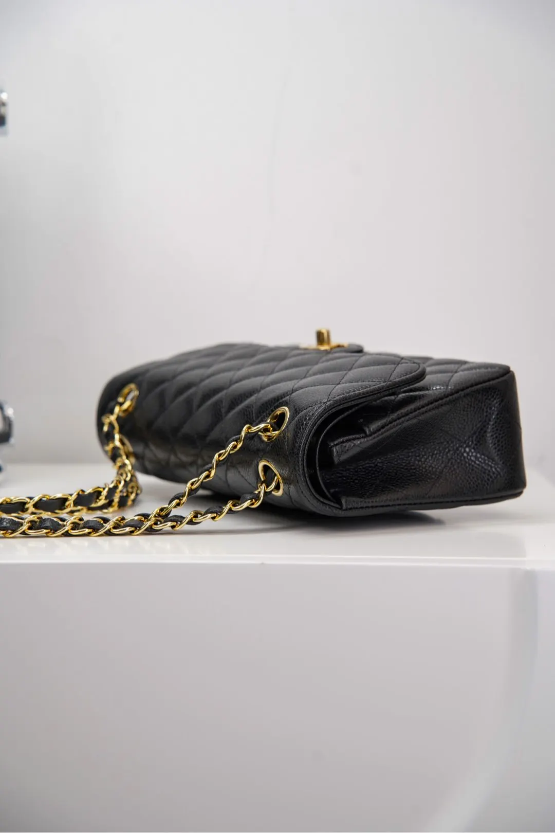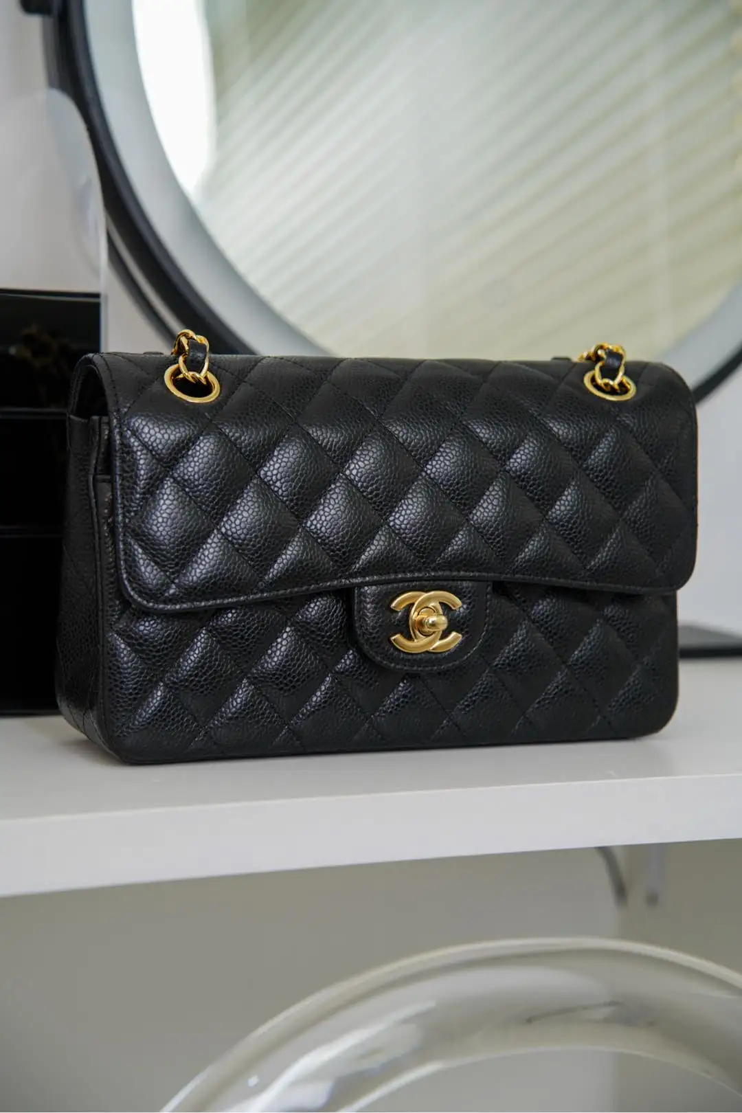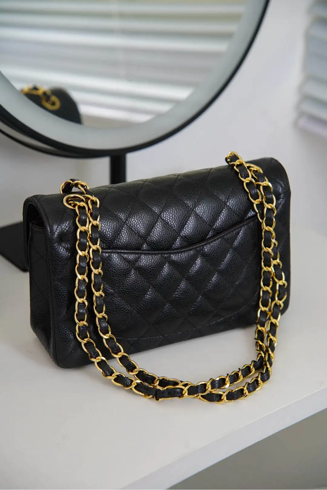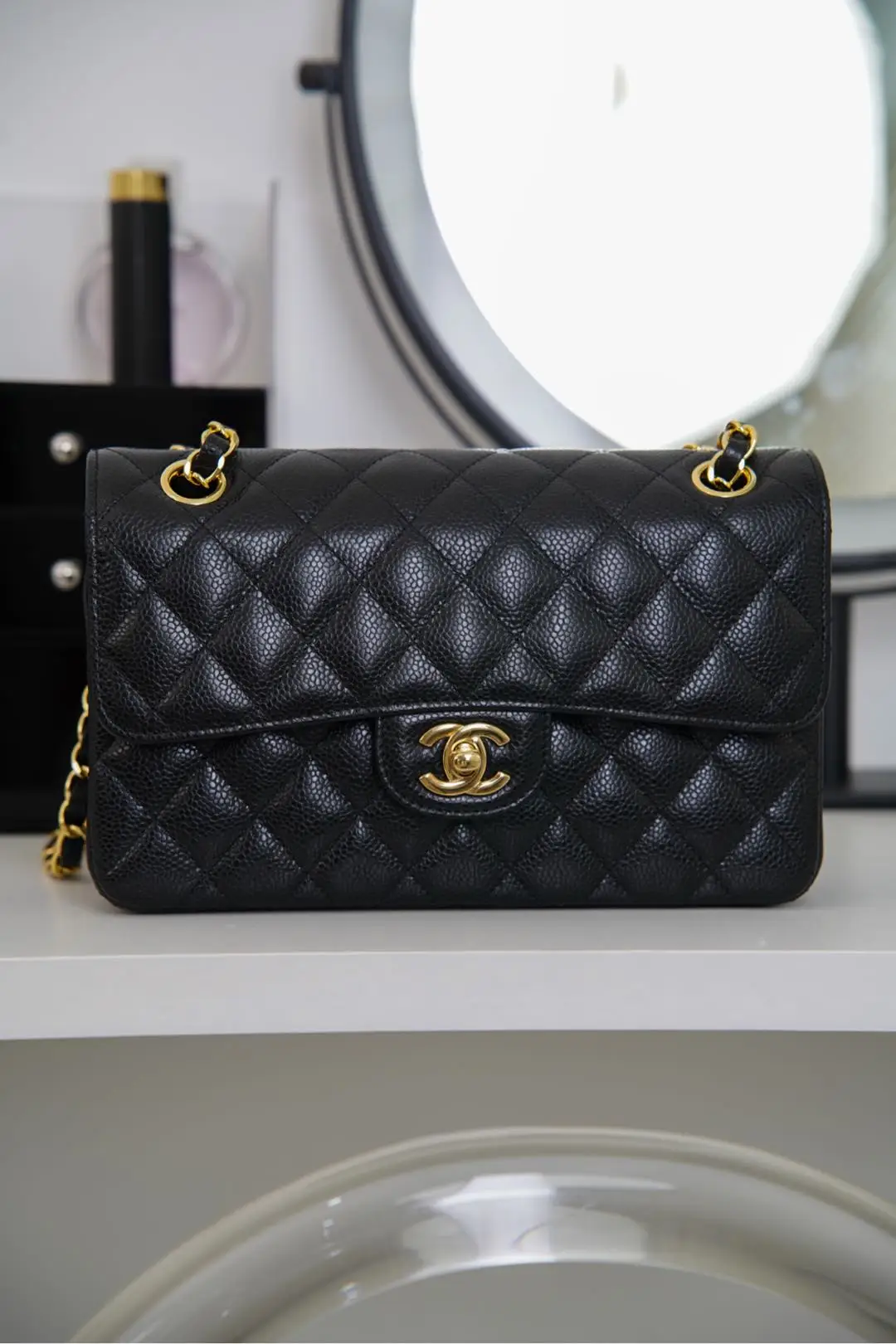 Original Chip Version ℂ𝔽 𝗖𝗹𝗮𝘀𝘀𝗶𝗰 𝗙𝗹𝗮𝗽 Authentic Leather Small Size Black Cow Gold Newly Upgraded with One Chip Per Bag French 𝐇𝐚𝐚𝐬 Original Lychee Ball Grain, with Exquisite Texture and Color, Eleven Years of Handmade Focus on Classic Styles, the Front Flap and Body Stitching Perfectly Match, the Edging Diamond Pattern is Exactly 1:2, Striving for Perfection to Present the True Charm of the Authentic Product! Size: 14.5x23x6cm