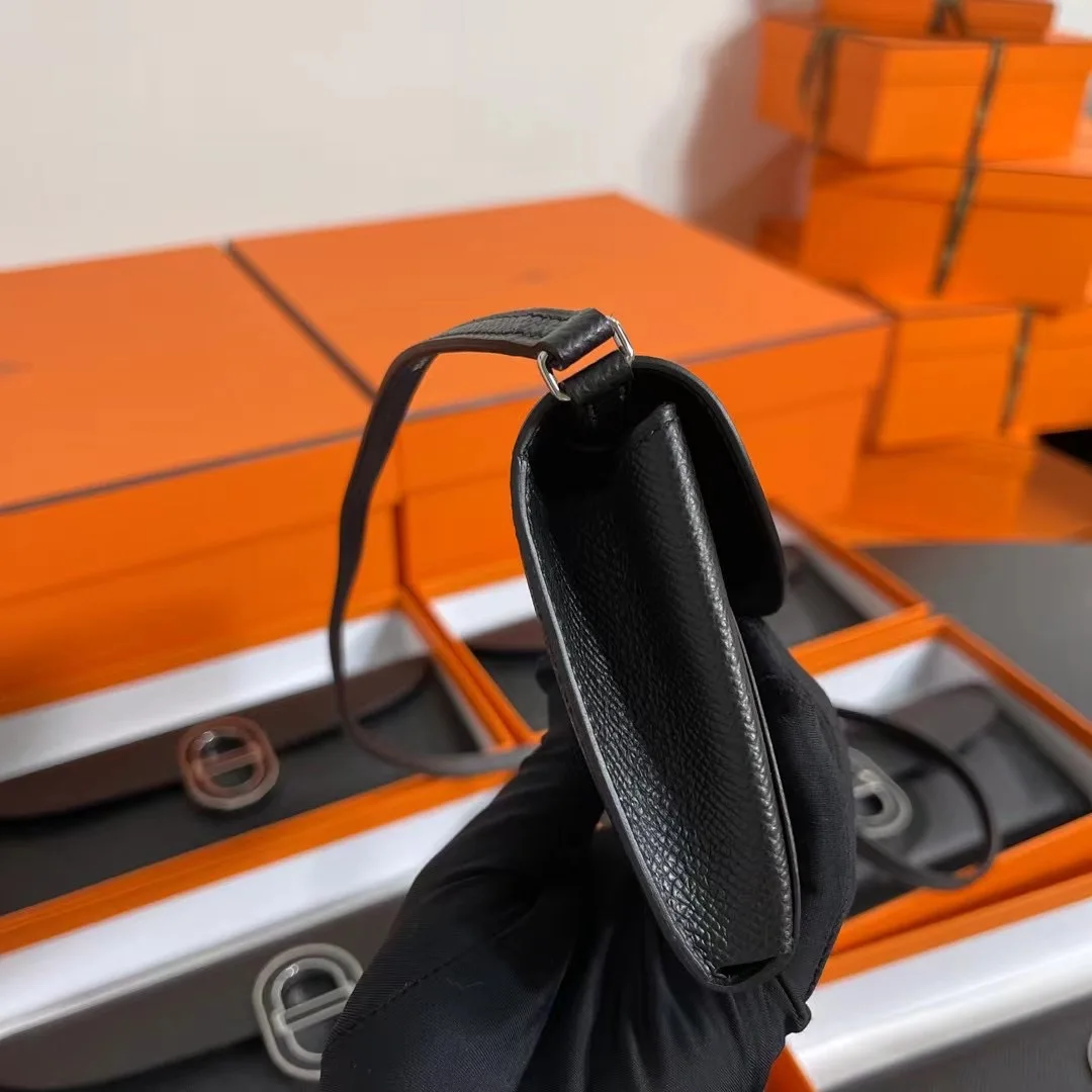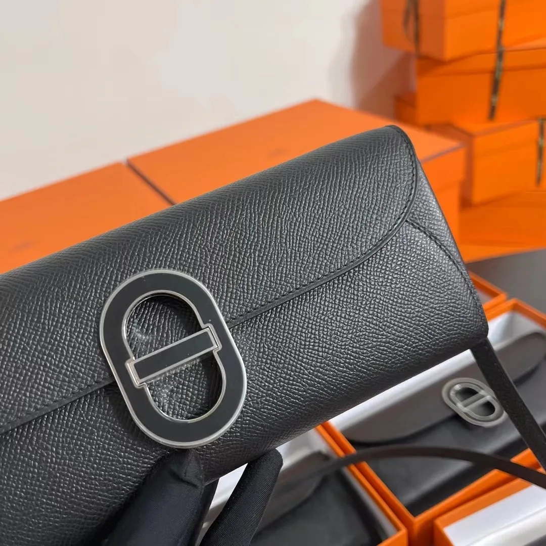 Chaine dAncre Pig Nose to go 24cm Epsom CK89 Noir Black with Black Enamel Clasp, Semi-Handmade Wax Thread Stitching, Summer Favorite, Exquisite and Cute Design, Can be Used as a Shoulder Bag or Evening Bag, a New Favorite for Hermès Lovers, Maximum Usage Rate, Can be Used as a Wallet