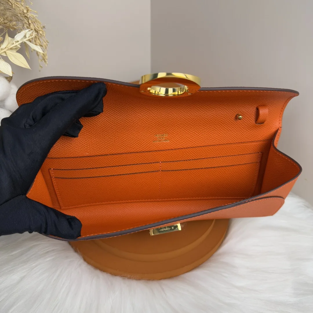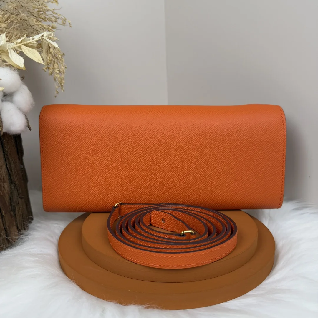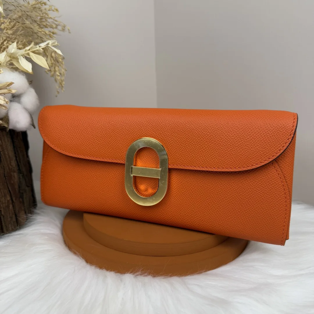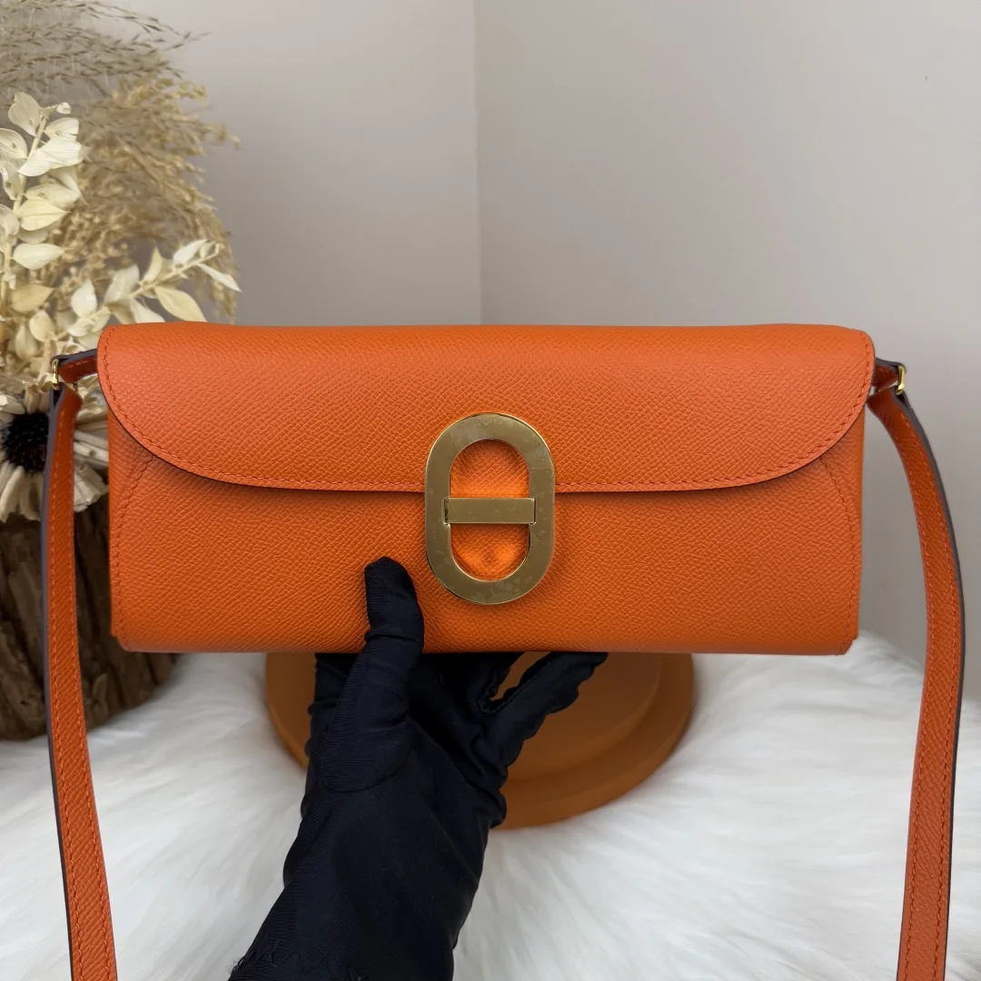 Semi-handmade Chained Andre Pig Nose Crossbody Bag to go 24cm Epsom M4 Gris Pale Orange Gold and Silver Hardware Phw, Synchronized with Boutique Wax Thread Sewing, Summer New Favorite, Exquisite and Cute Styling, Can be Used as a Shoulder Bag or Evening Bag, a New Favorite for Horse Lovers, Maximum Frequency of Use, Size 24 10x2.5cm