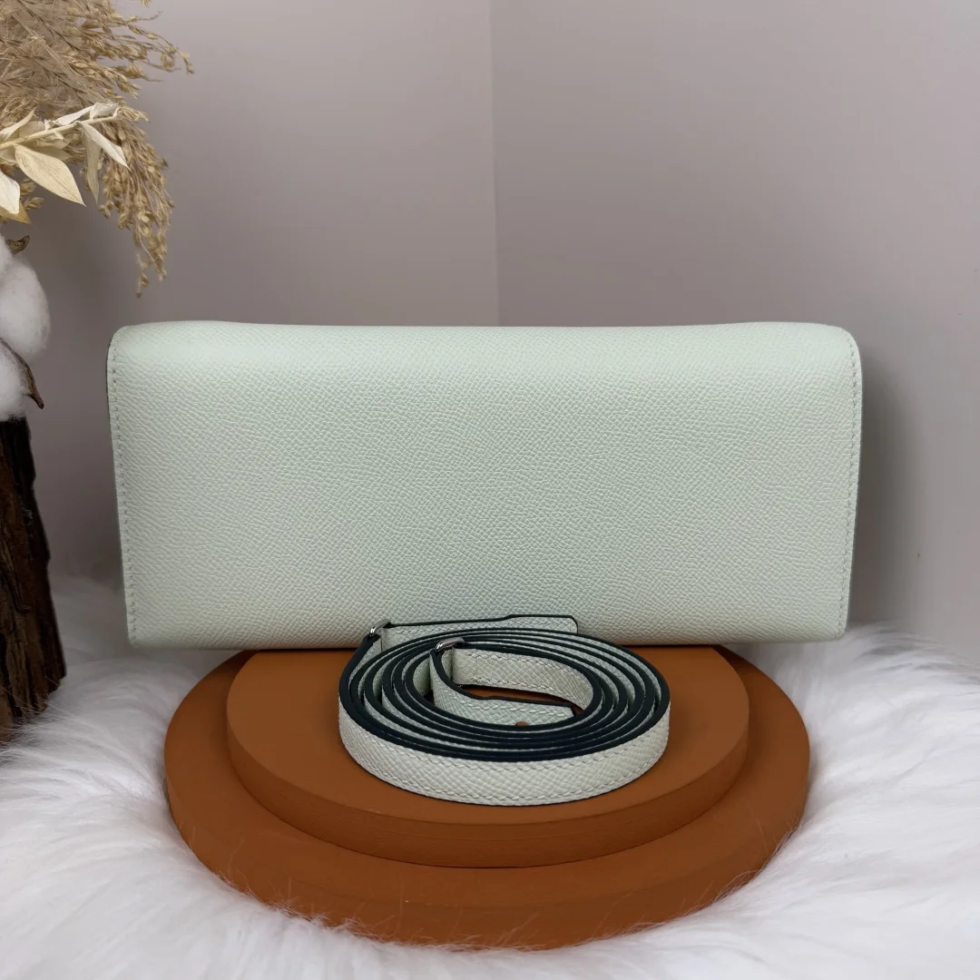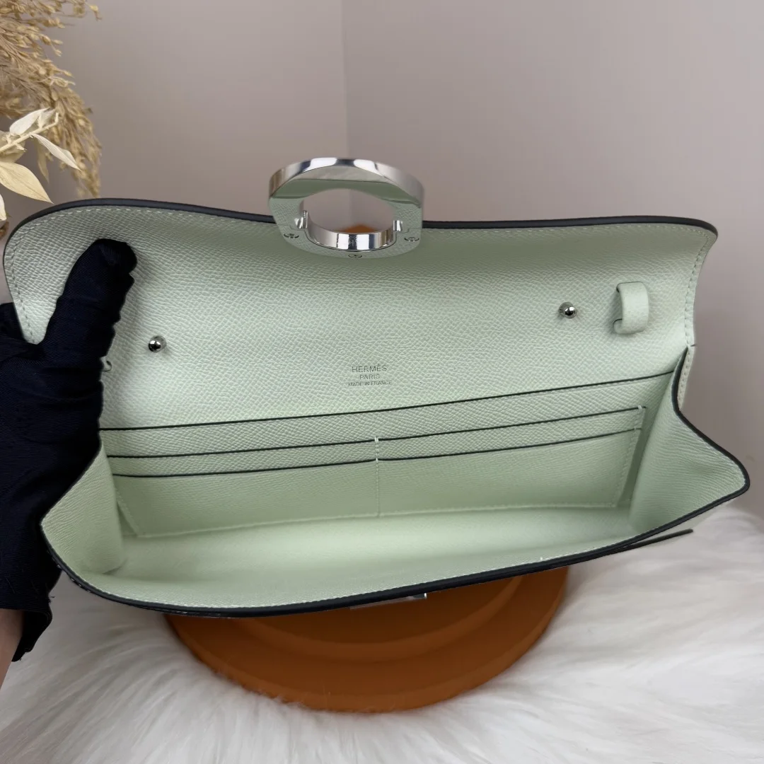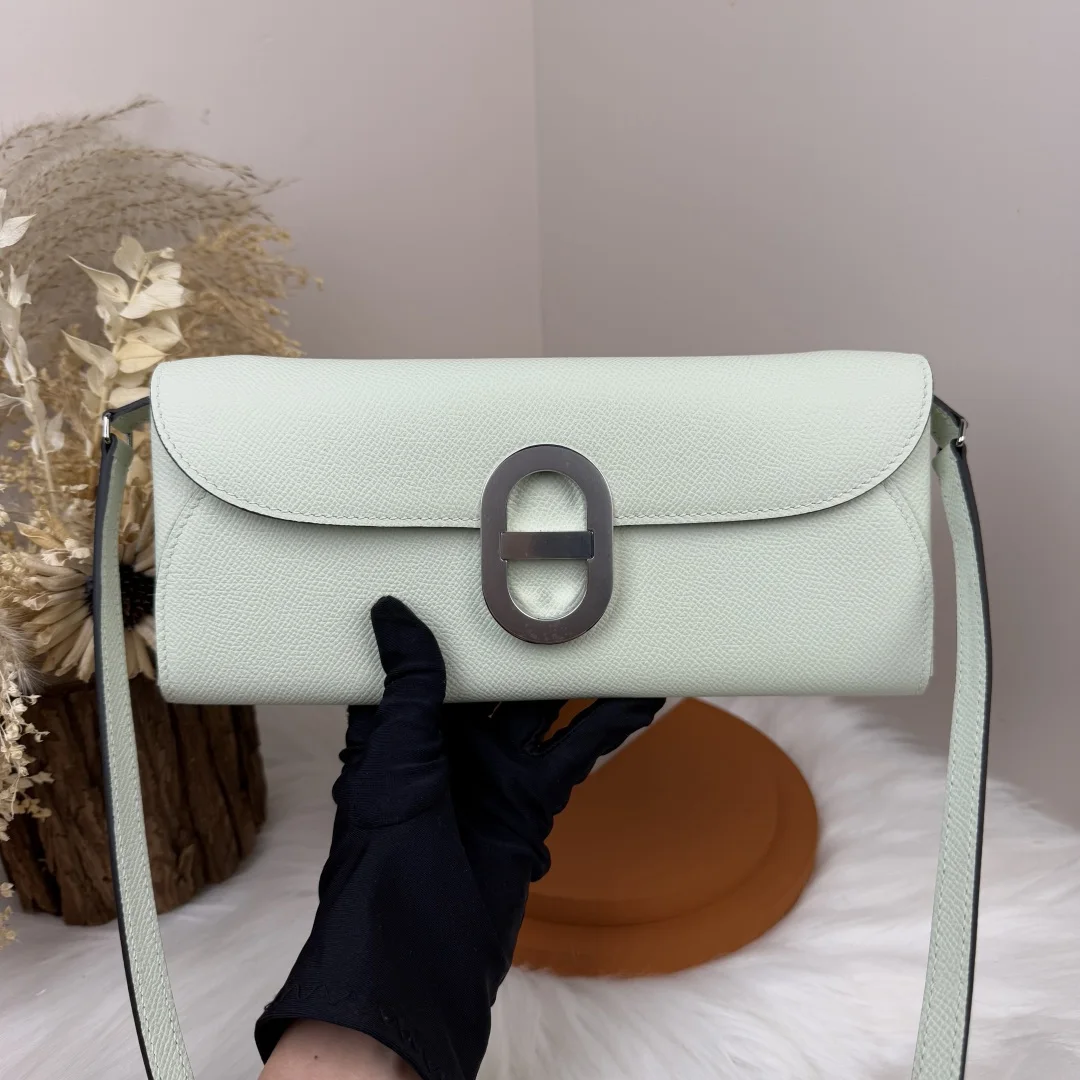 Semi-handmade Chained Andre Pig Nose Crossbody Bag to go 24cm Epsom M4 Gris Pale Bubble Green Gold and Silver Hardware Phw Synchronized with Boutique Wax Thread Sewing Summer New Favorite Exquisite and Cute Styling Can be Used as a Shoulder Bag or Evening Bag A Favorite Among Hermès Enthusiasts Maximum Exposure and Usage Rate Dimensions 24 10x2.5cm