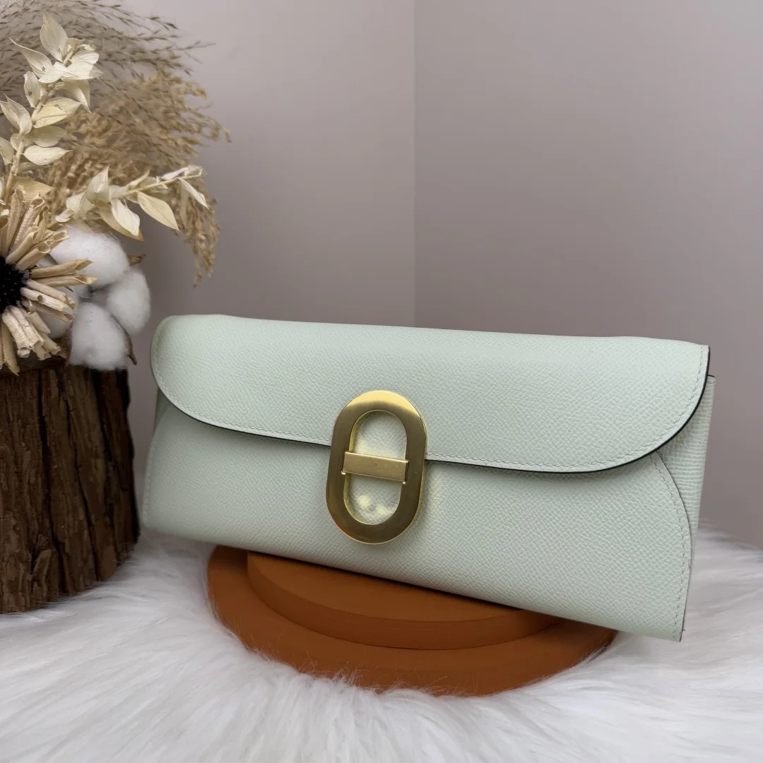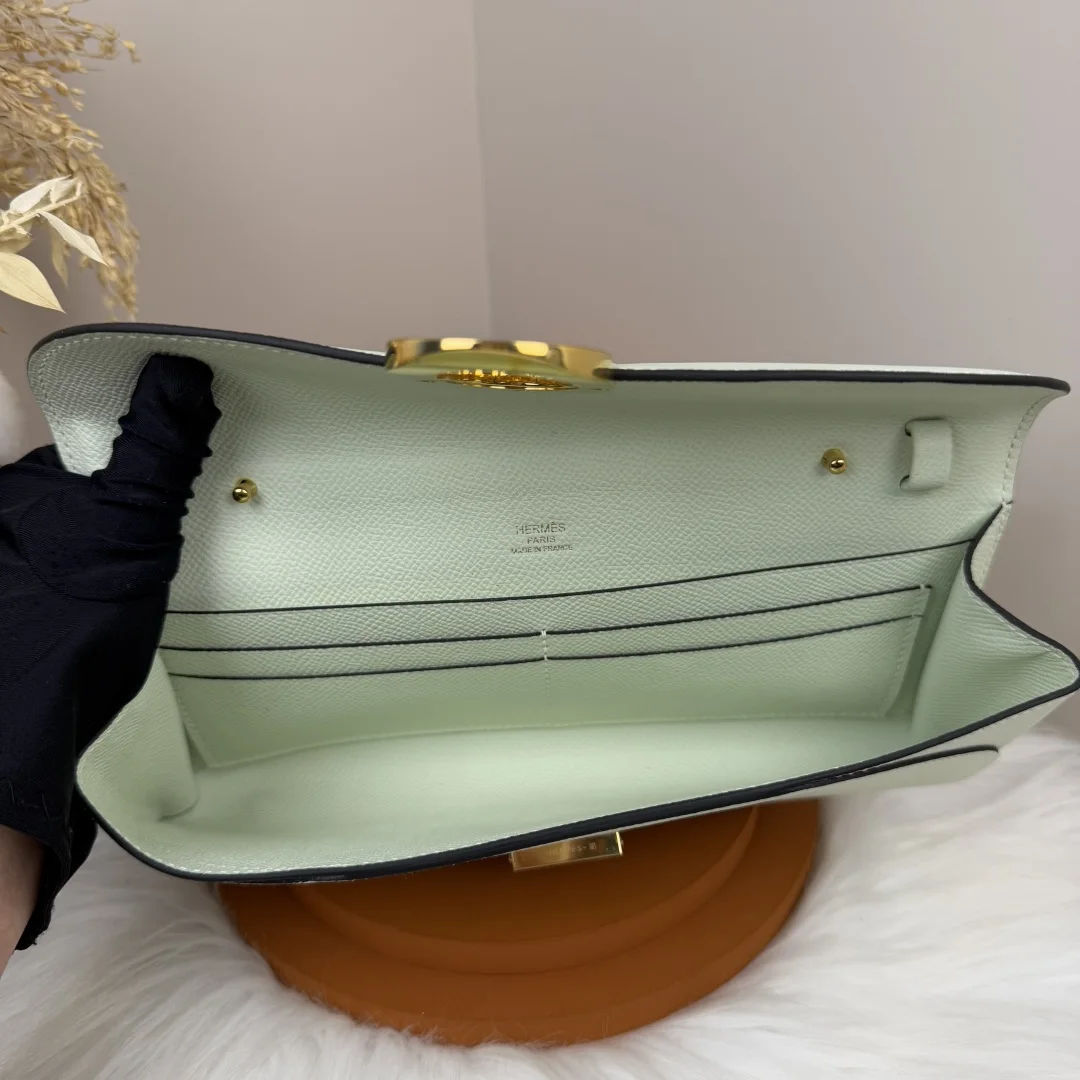 Semi-handmade Chained Andre Pig Nose Crossbody Bag to go 24cm Epsom M4 Gris Pale Bubble Green Gold and Silver Hardware Phw Synchronized with Boutique Wax Thread Sewing Summer New Favorite Exquisite and Cute Styling Can be Used as a Shoulder Bag or Evening Bag A Must-Have for Hermès Lovers Maximum Usage Rate Size 24 10x2.5cm