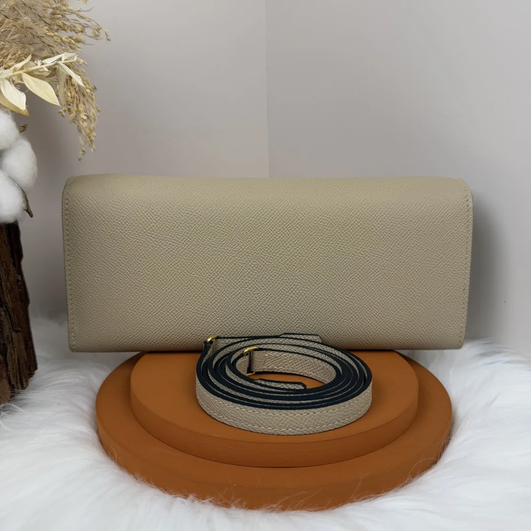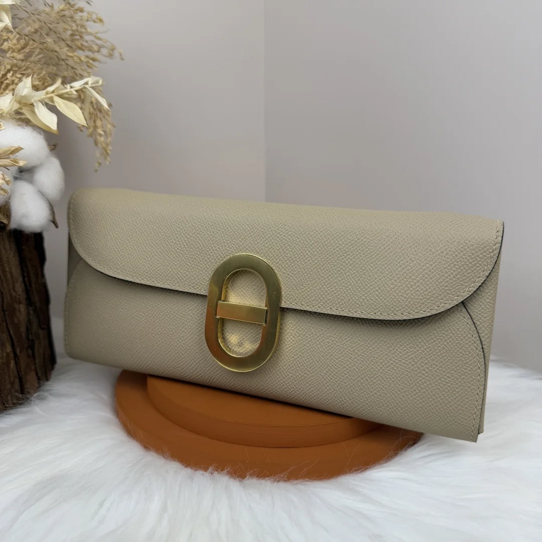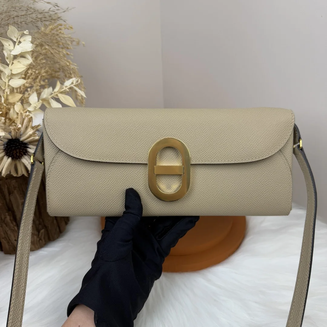 Semi-handmade Chained Andre Pig Nose Crossbody Bag to go 24cm Epsom M4 Gris Pale Light Grey Gold and Silver Hardware Phw, Synchronized with Boutique Honey Wax Thread Sewing, Summer New Favorite, Exquisite and Lovely Styling, Can be Used as a Shoulder Bag or Evening Bag, a New Favorite for Horse Lovers, High Usage Rate, Size 24 10x2.5cm