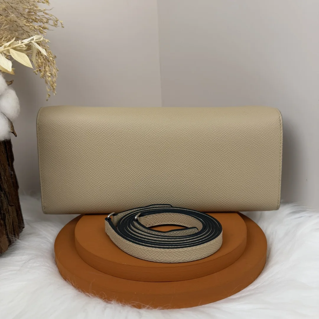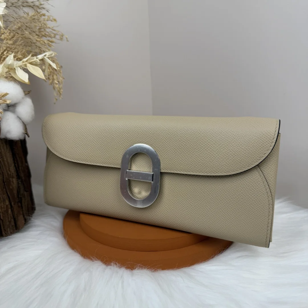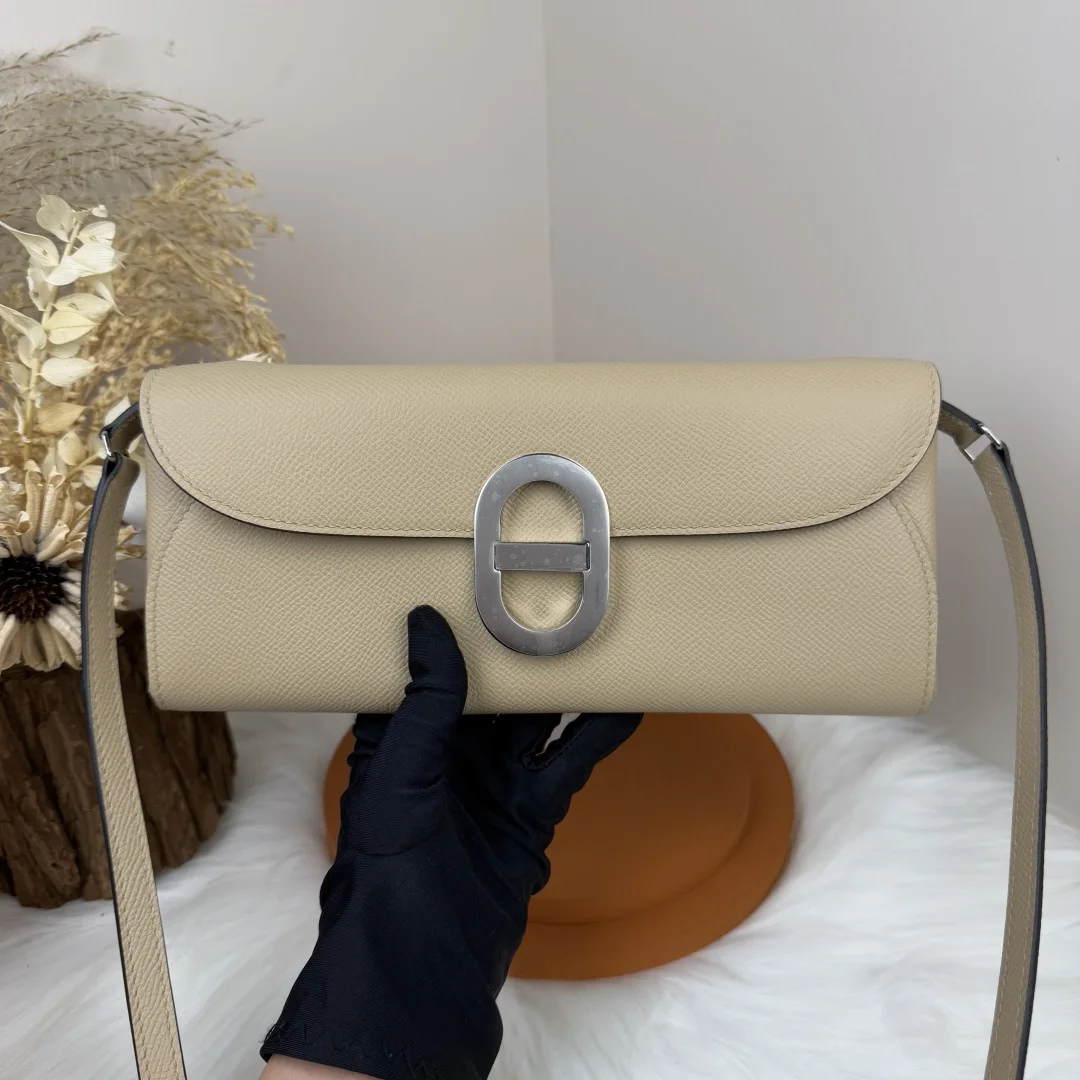 Semi-handmade Chained Andre Pig Nose Crossbody Bag to go 24cm Epsom M4 Gris Pale Light Grey Gold and Silver Hardware Phw, Synchronized with Boutique Wax Thread Sewing, Summer New Favorite, Exquisite and Lovely Styling, Can be Used as a Shoulder Bag or Evening Bag, a New Favorite for Horse Lovers, High Usage Rate, Size 24 10x2.5cm