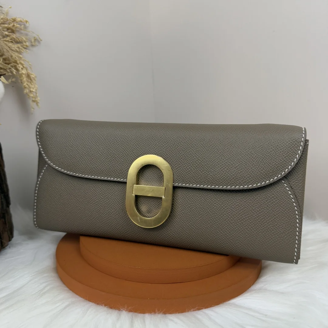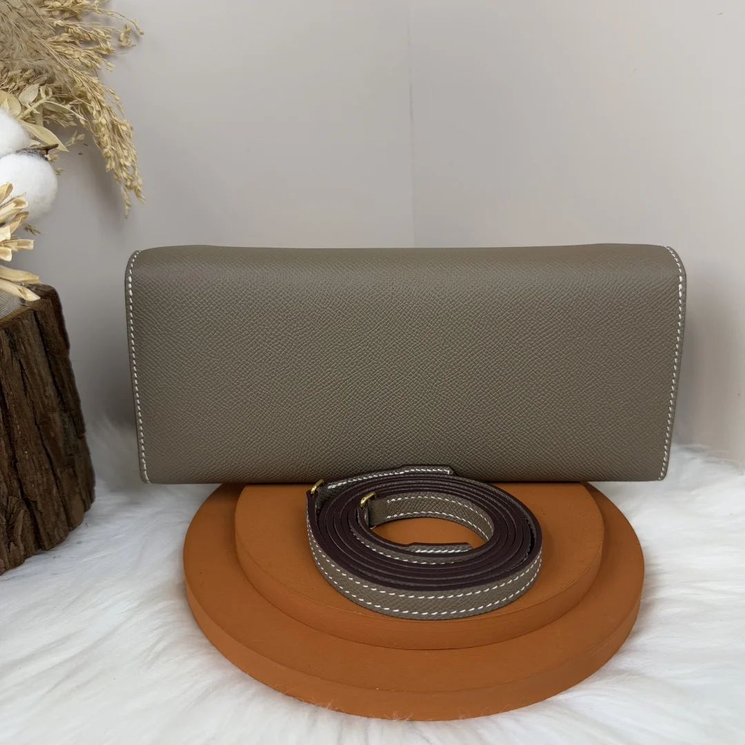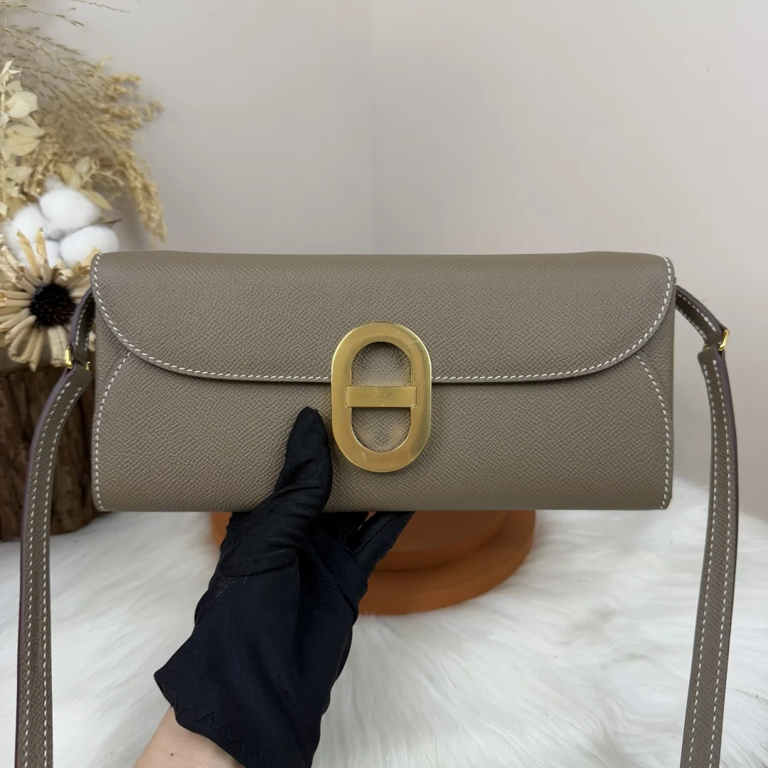 Semi-handmade Chained Andre Pig Nose Crossbody Bag to go 24cm Epsom M4 Gris Pale Elephant Grey Gold and Silver Hardware Phw, Synchronized with Boutique, Wax Thread Sewing, Summer New Favorite, Exquisite and Cute Styling, Can be Used as a Shoulder Bag or Evening Bag, a New Favorite for Horse Lovers, High Usage Rate, Size 24 10x2.5cm