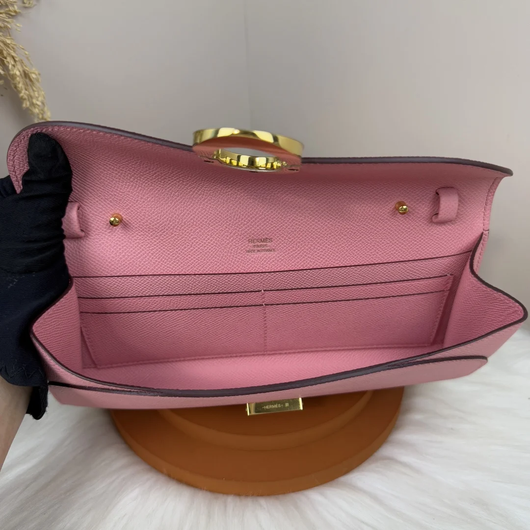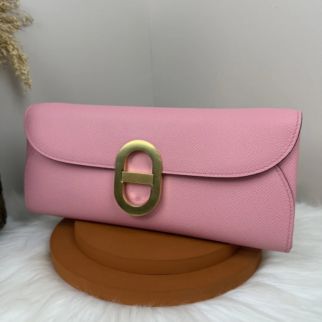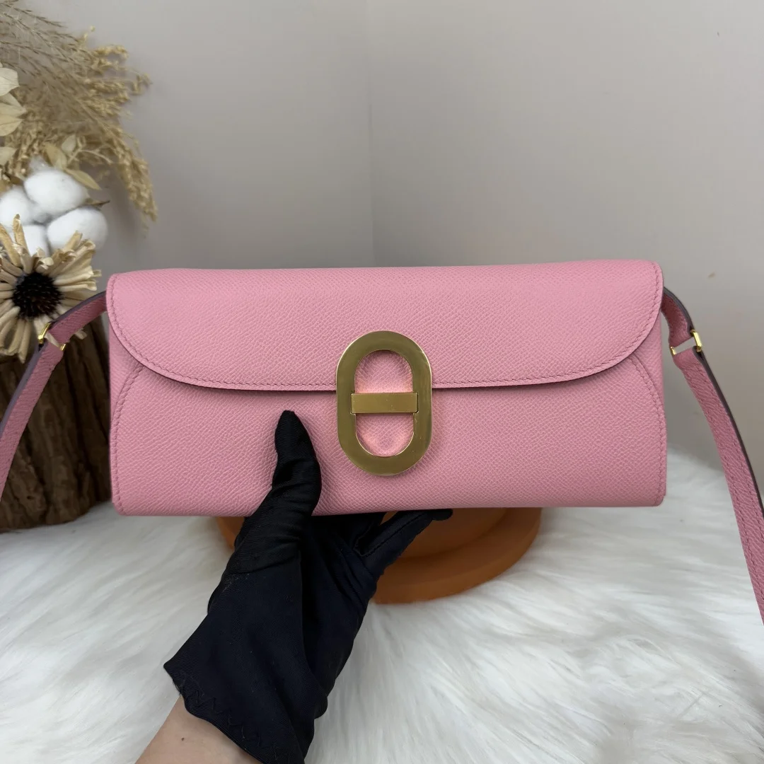 Semi-handmade Chained Andre Pig Nose Crossbody Bag to go 24cm Epsom M4 Gris Pale Milkshake Pink Gold and Silver Hardware Phw, Synchronized Counter Wax Thread Sewing, Summer New Favorite, Exquisite and Cute Styling, Can be Used as a Shoulder Bag or Evening Bag, a New Favorite for Horse Lovers, Maximum Appearance and Usage Rate, Size 24 10x2.5cm