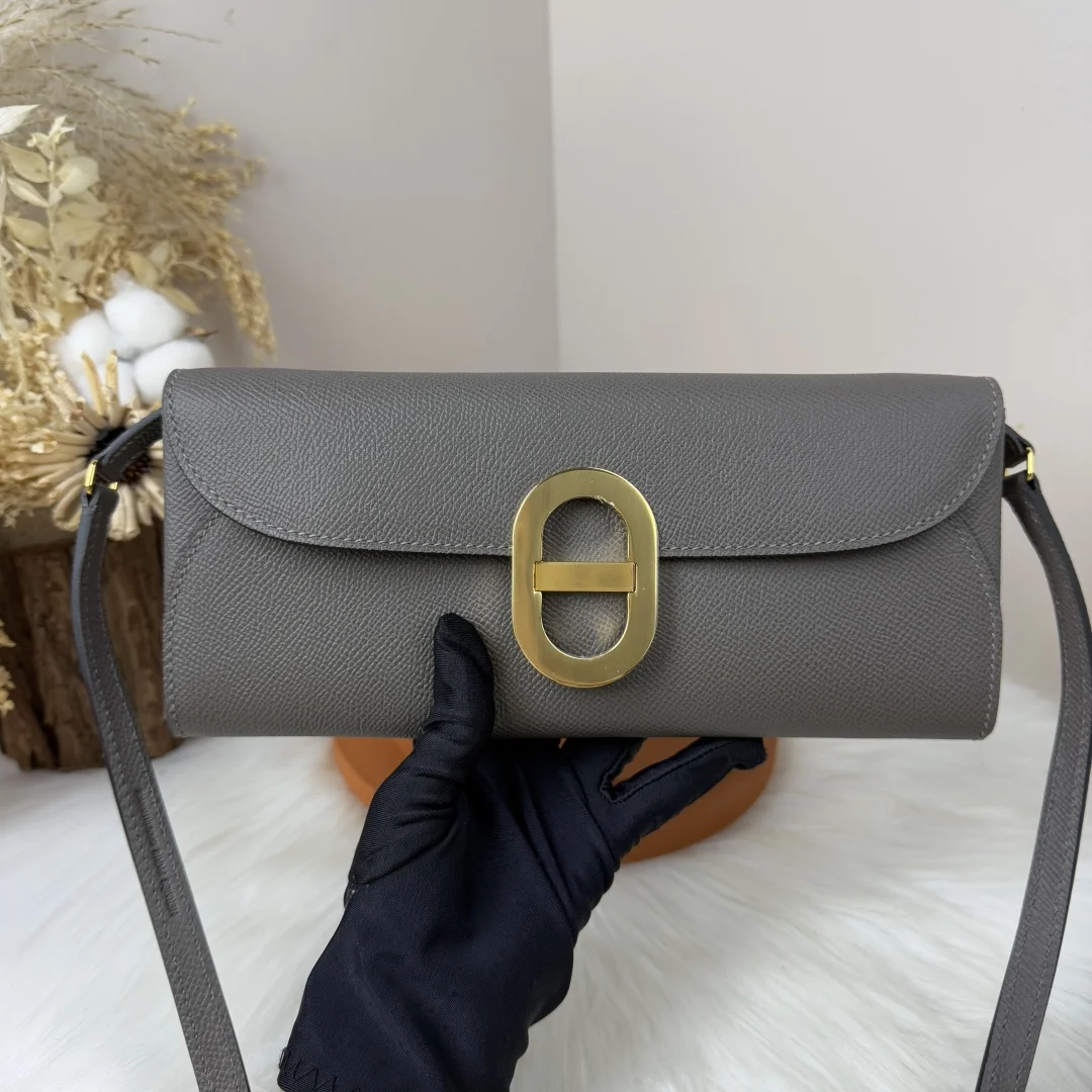 Semi-handmade Chained Andre Pig Nose Crossbody Bag to go 24cm Epsom M4 Gris Pale Iron Grey Gold and Silver Hardware Phw, Synchronized with Boutique Wax Thread Sewing, Summer New Favorite, Exquisite and Cute Styling, Can be Used as a Shoulder Bag or Evening Bag, a New Favorite for Horse Lovers, the Ceiling of Appearance Rate and Usage Rate, Size 24 10x2.5cm