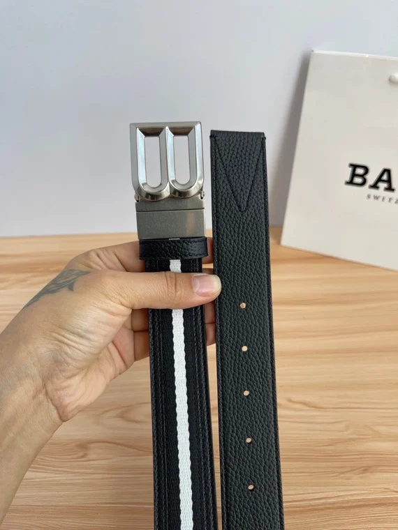 The new BALLY classic series belt, 3.5CM, is made of calfskin, perfectly complemented by hand-stitched seams and classic colors, suitable for pairing with business suits or more casual styles.