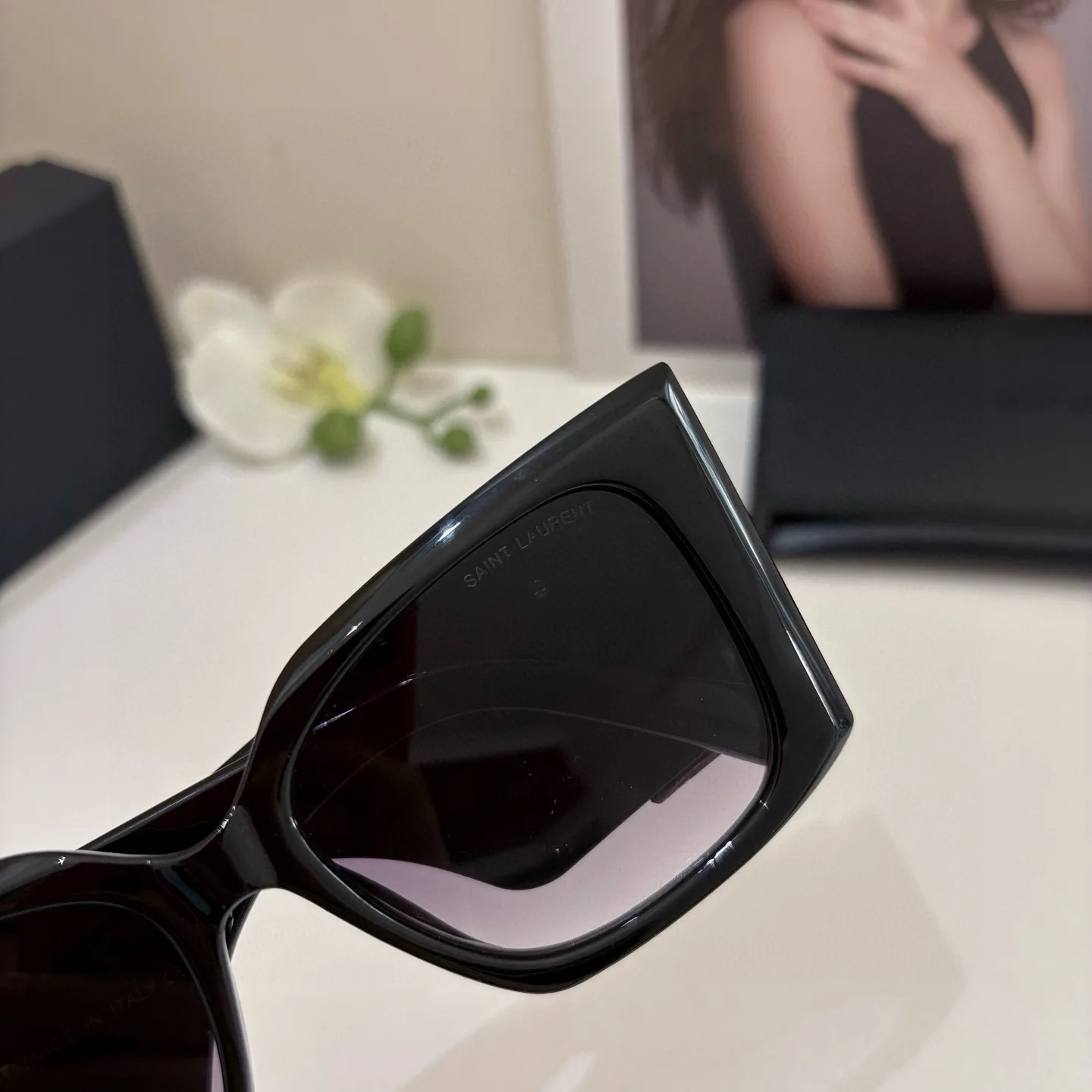 YSL Saint Laurent sunglasses make your face look smaller, the large lenses are not heavy at all, and the design of the temple width is just right, providing a lightweight and co..