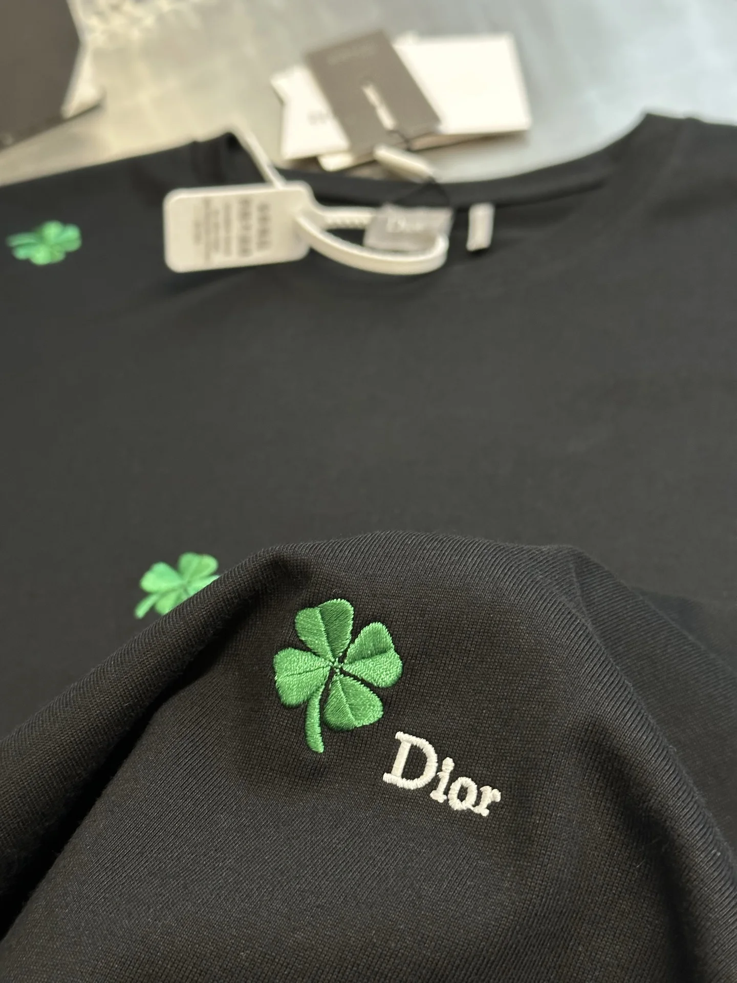 Dior Clover Embroidery Short-Sleeve T-Shirt