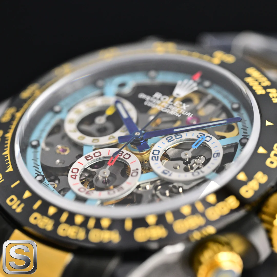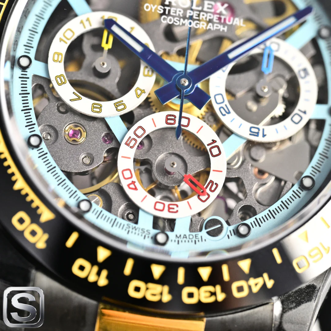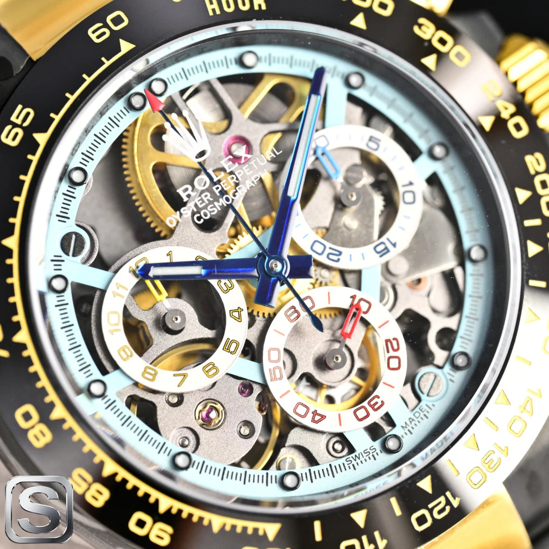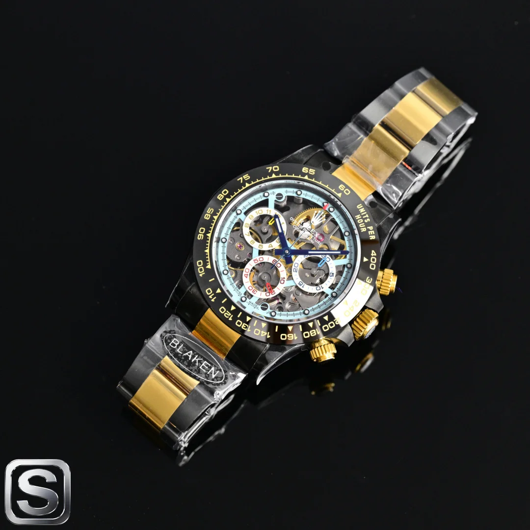 BLAKEN UPGRADE ALERT!** Rolex Daytona 6th Gen Daytona Carbon Black Replica with Skeleton Design! The 40mm size is absolutely stunning! Key highlights that will instantly win you over: BKL 12.2mm Ultra-thin Case (outperforming the common 13.5mm versions on the market), crafted from Solid Stainless Steel with near-zero gaps, maximizing texture! Upgraded Matte Black Kit Multi-color Bezels available, allowing for easy style changes and appealing to those who love personalization. Two strap options: Silicone Strap for lightweight comfort and Steel Strap for a rugged look, with CNC Precision Engraving manual polishing throughout, a detail lover s dream! Movement: 4802 Integrated Movement with 72-hour Long Power Reserve, Chronograph Function synchronized with retail models, ensuring stable timekeeping. Thoughtful design: Oyster Safety Clasp prevents accidental opening, Solid Links provide long-lasting comfort, and operation is simple! Understated yet stylish, this upgrade is a must-have! Shop now!