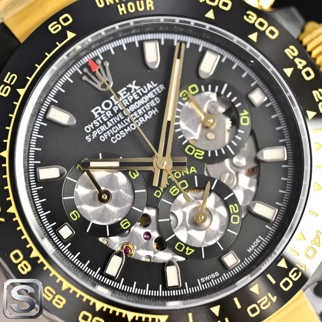 BLAKEN UPGRADE ALERT!** Rolex Daytona 6th Gen Daytona Carbon Black Replica with Skeleton Design! The 40mm size is absolutely stunning! Key highlights that will instantly win you over: BKL 12.2mm Ultra-thin Case (outperforming the common 13.5mm versions on the market), crafted from Solid Stainless Steel with near-zero gaps, maximizing texture! Upgraded Matte Black Kit Multi-color Bezels available, allowing for easy style changes and appealing to those who love personalization. Two strap options: Silicone Strap for lightweight comfort and Steel Strap for a rugged look, with CNC Precision Engraving manual polishing throughout, perfect for detail enthusiasts! Movement: 4802 Integrated Movement with 72-hour Long Power Reserve, Chronograph Function synchronized with retail models, ensuring stable timekeeping. Thoughtful design: Oyster Safety Clasp prevents accidental opening, Solid Links provide long-lasting comfort, and simple operation! Understated yet impressive, this upgrade is a must-have! Shop now!