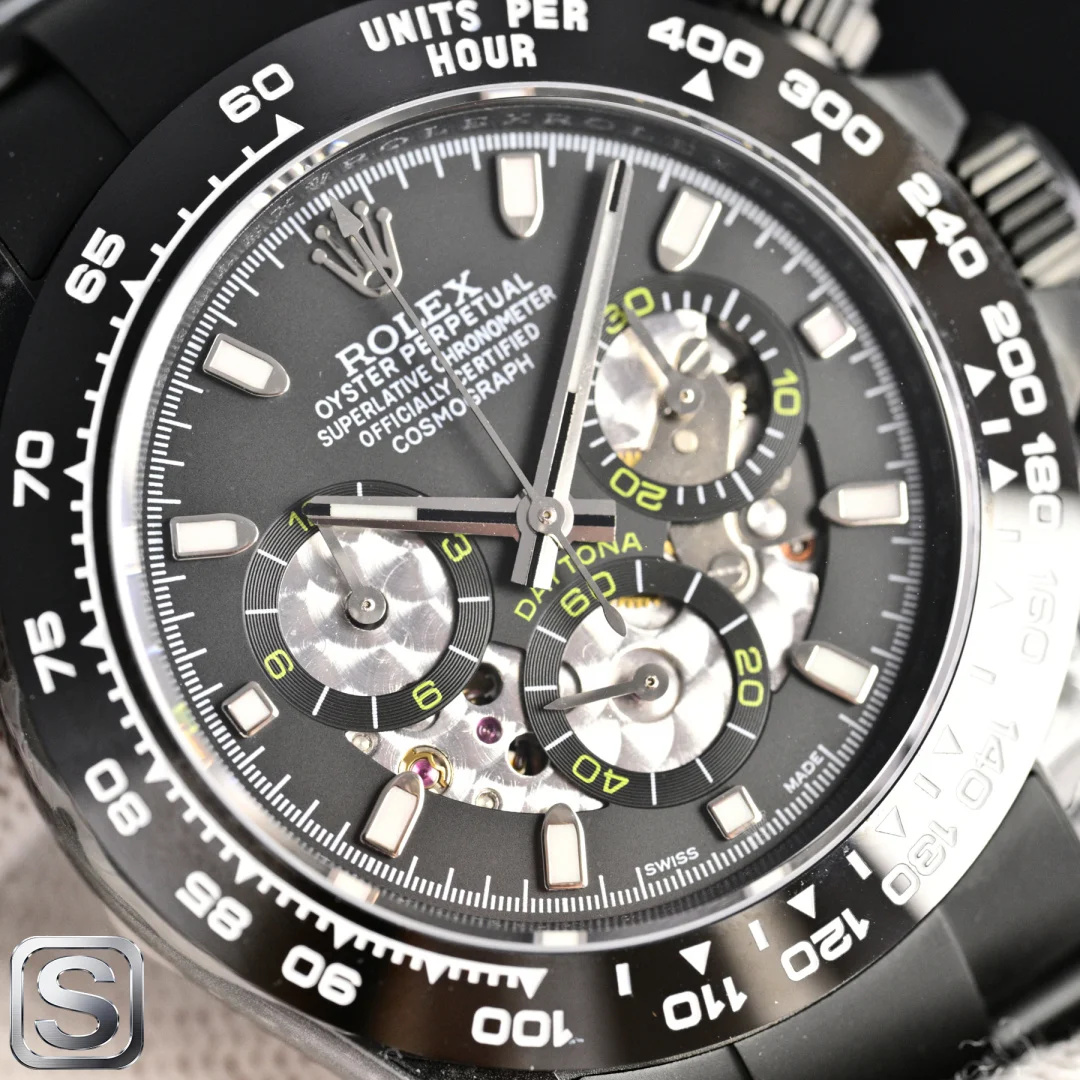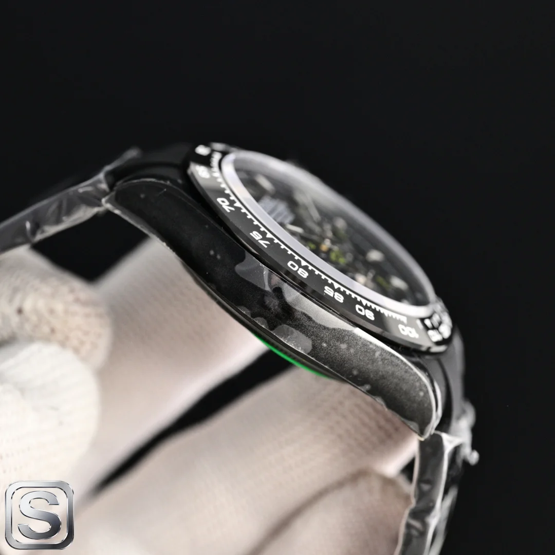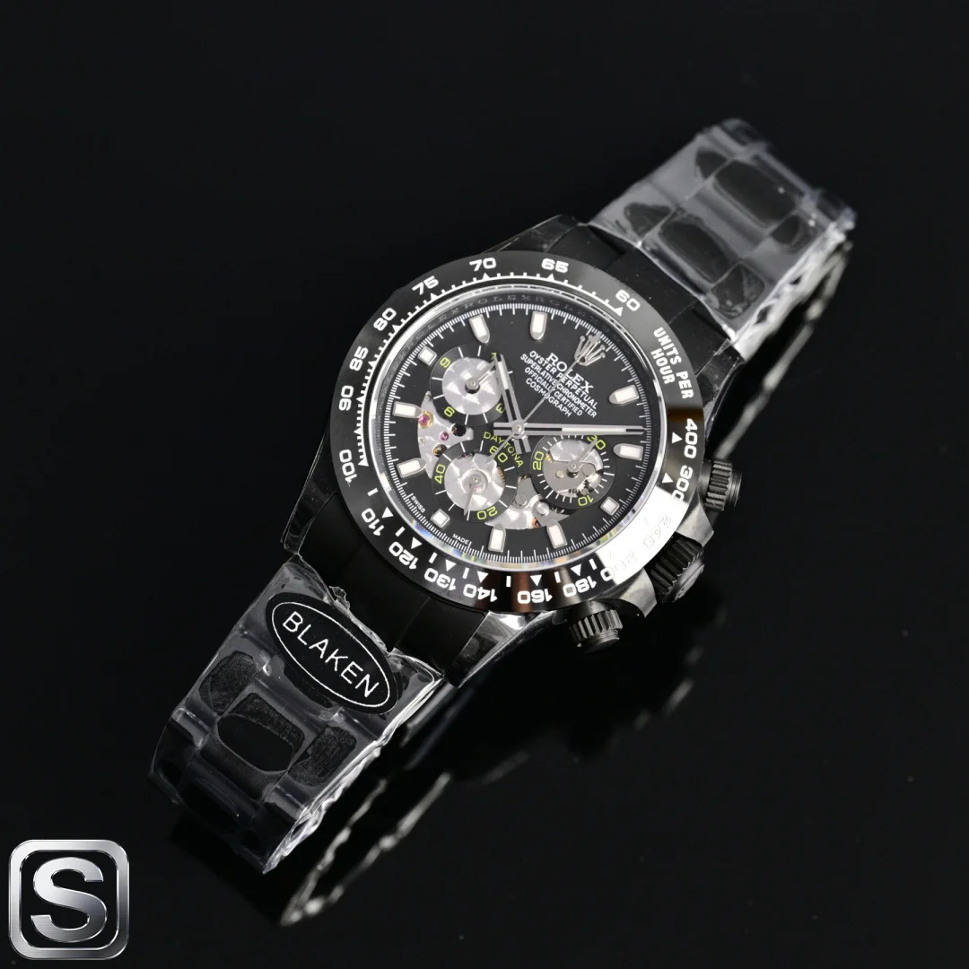 BLAKEN UPGRADE ALERT!** Rolex Daytona 6th Gen Daytona Carbon Black Replica with Skeleton Design! The 40mm size is absolutely stunning! Key highlights that will instantly win you over: BKL 12.2mm Ultra-thin Case (outperforming the common 13.5mm versions on the market), crafted from Solid Stainless Steel with near-zero gaps, maximizing texture! Upgraded Matte Black Kit Multi-color Bezels available, allowing for easy style changes and appealing to those who love personalization. Two strap options: Silicone Strap for lightweight comfort and Steel Strap for a rugged look, both CNC Precision Engraved manually polished, perfect for detail enthusiasts! Movement: 4802 Integrated Movement with 72-hour Long Power Reserve, Chronograph Function synchronized with retail versions, ensuring stable timekeeping. Thoughtful design: Oyster Safety Clasp prevents accidental opening, Solid Links provide long-lasting comfort, and simple operation! Understated yet impressive, this upgrade is a must-have! Shop now!