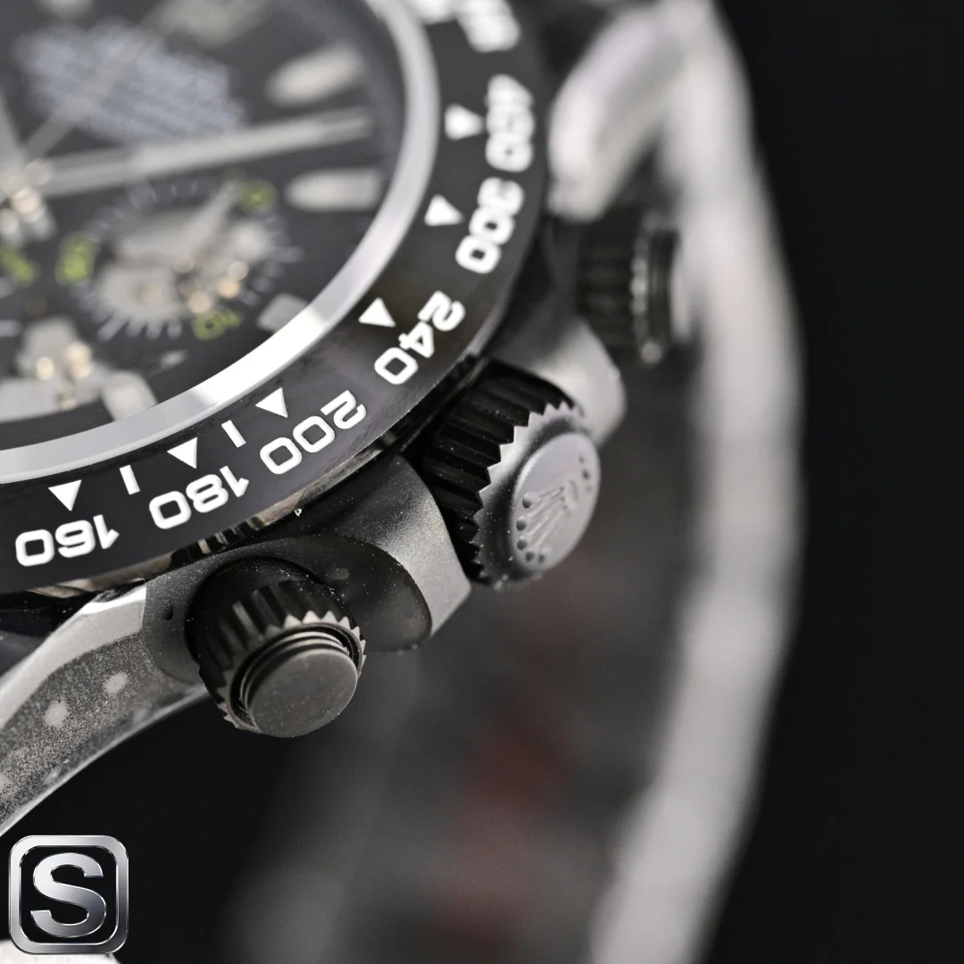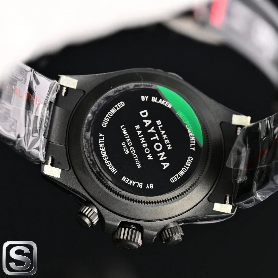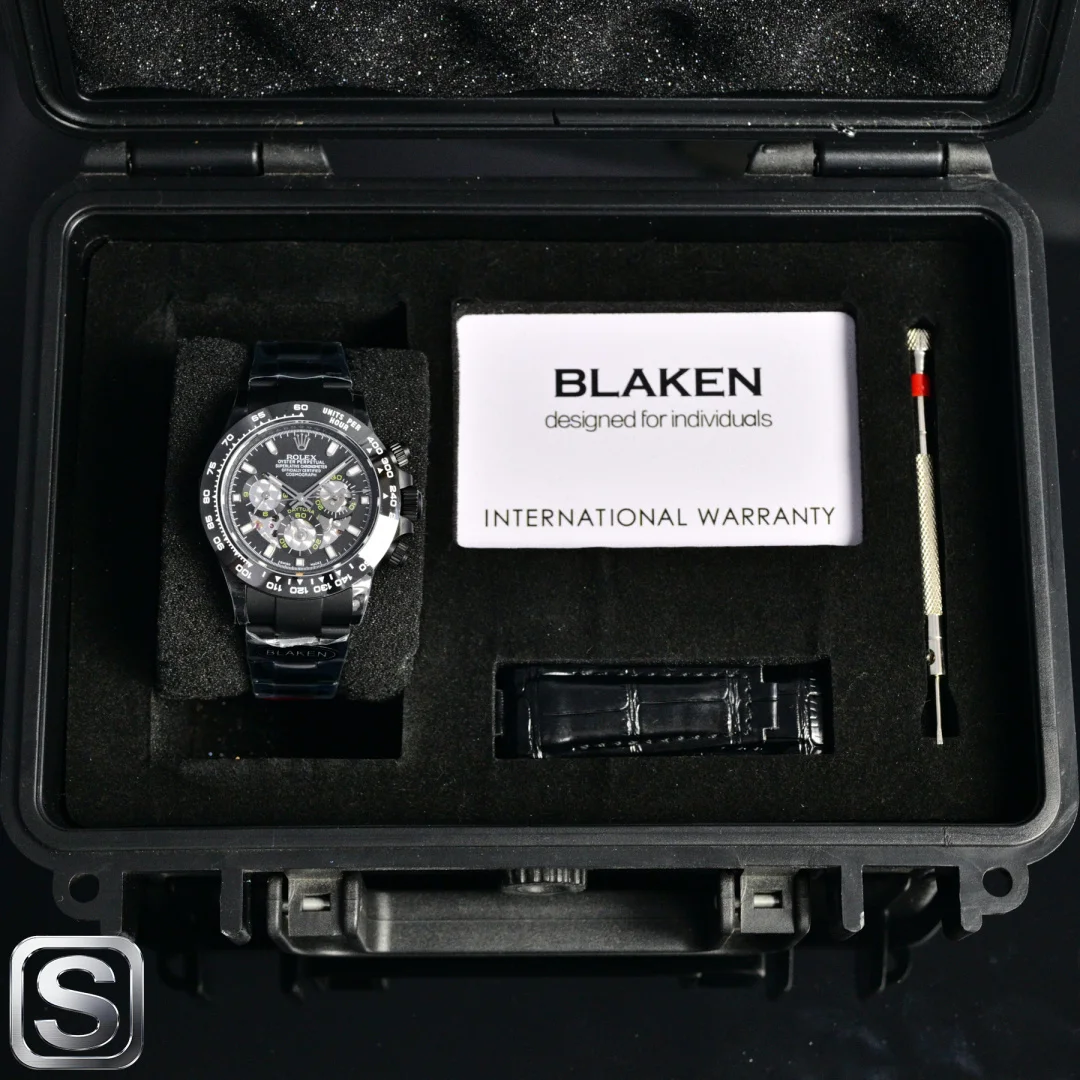 BLAKEN UPGRADE ALERT!** Rolex Daytona 6th Gen Daytona Carbon Black Replica with Skeleton Design! The 40mm size is absolutely stunning! Key highlights that will instantly win you over: BKL 12.2mm Ultra-thin Case (outperforming the common 13.5mm versions on the market), crafted from Solid Stainless Steel with near-zero gaps, maximizing texture! Upgraded Matte Black Kit Multi-color Bezels available, allowing for easy style changes and appealing to those who love personalization. Two strap options: Silicone Strap for lightweight comfort and Steel Strap for a rugged look, both CNC Precision Engraved manually polished, perfect for detail enthusiasts! Movement: 4802 Integrated Movement with 72-hour Long Power Reserve, Chronograph Function synchronized with retail versions, ensuring stable timekeeping. Thoughtful design: Oyster Safety Clasp prevents accidental opening, Solid Links provide long-lasting comfort, and simple operation! Understated yet impressive, this upgrade is a must-have! Shop now!