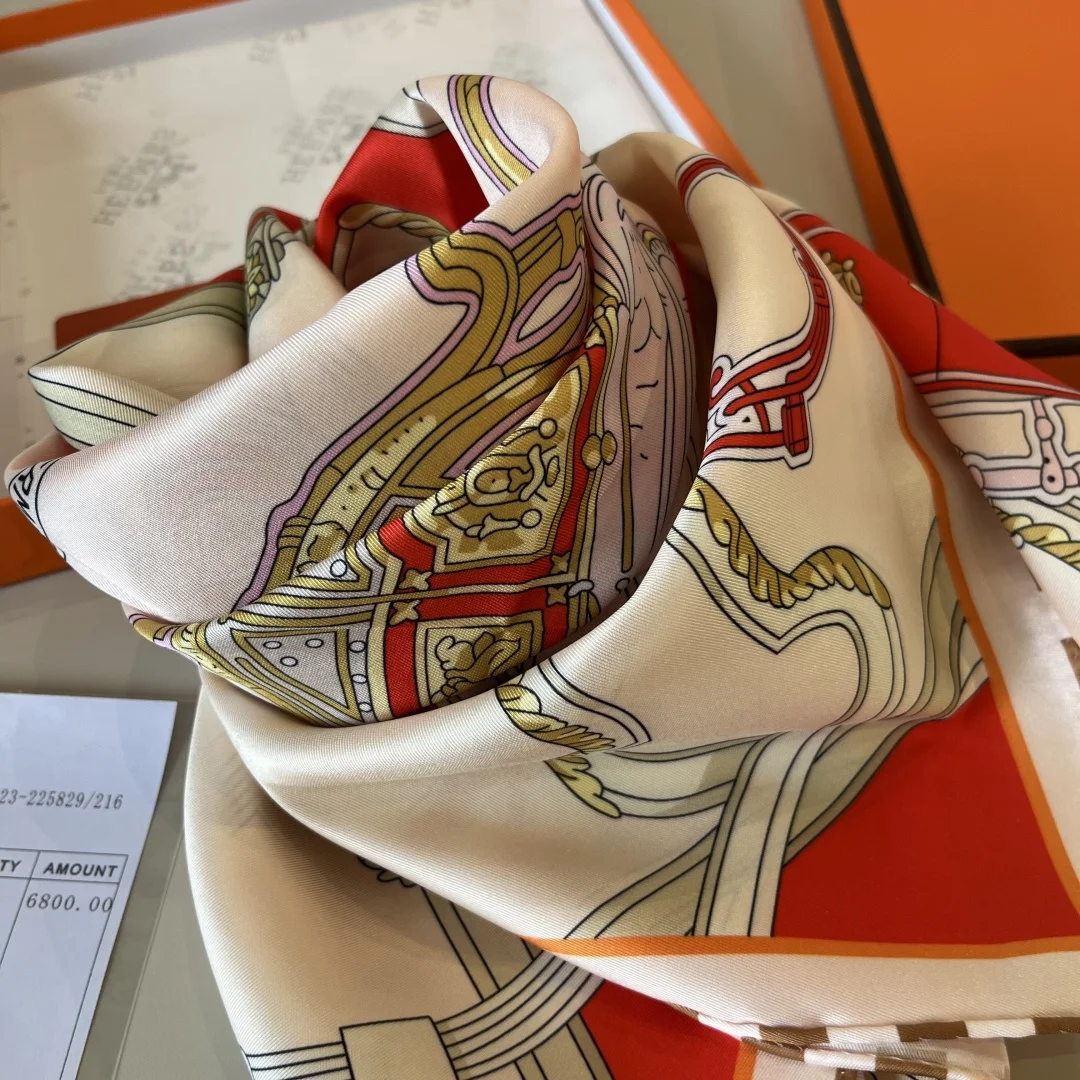 Hermes 90cm Silk Scarf Spring Mix Top-grade Twill Silk Material Hand-rolled Edges, Exuding a Luxurious Feel, High-end Heavyweight Twill Silk, Completely Boutique Quality Fabr..