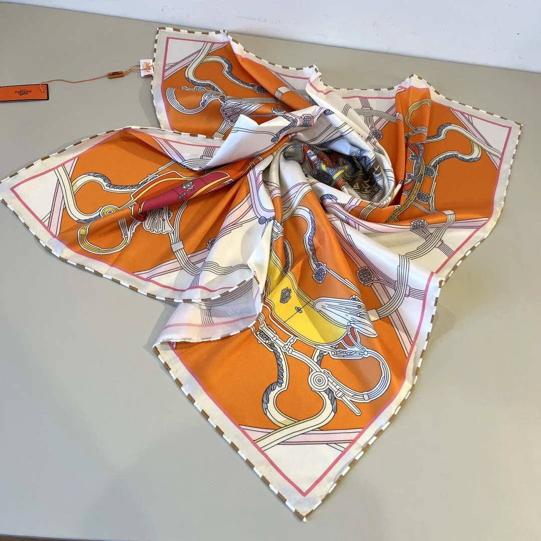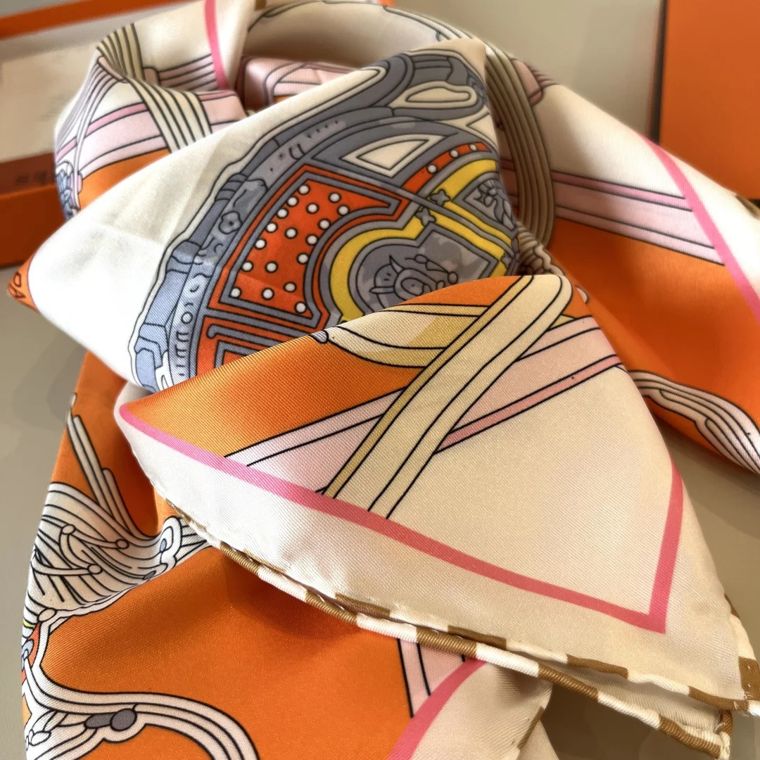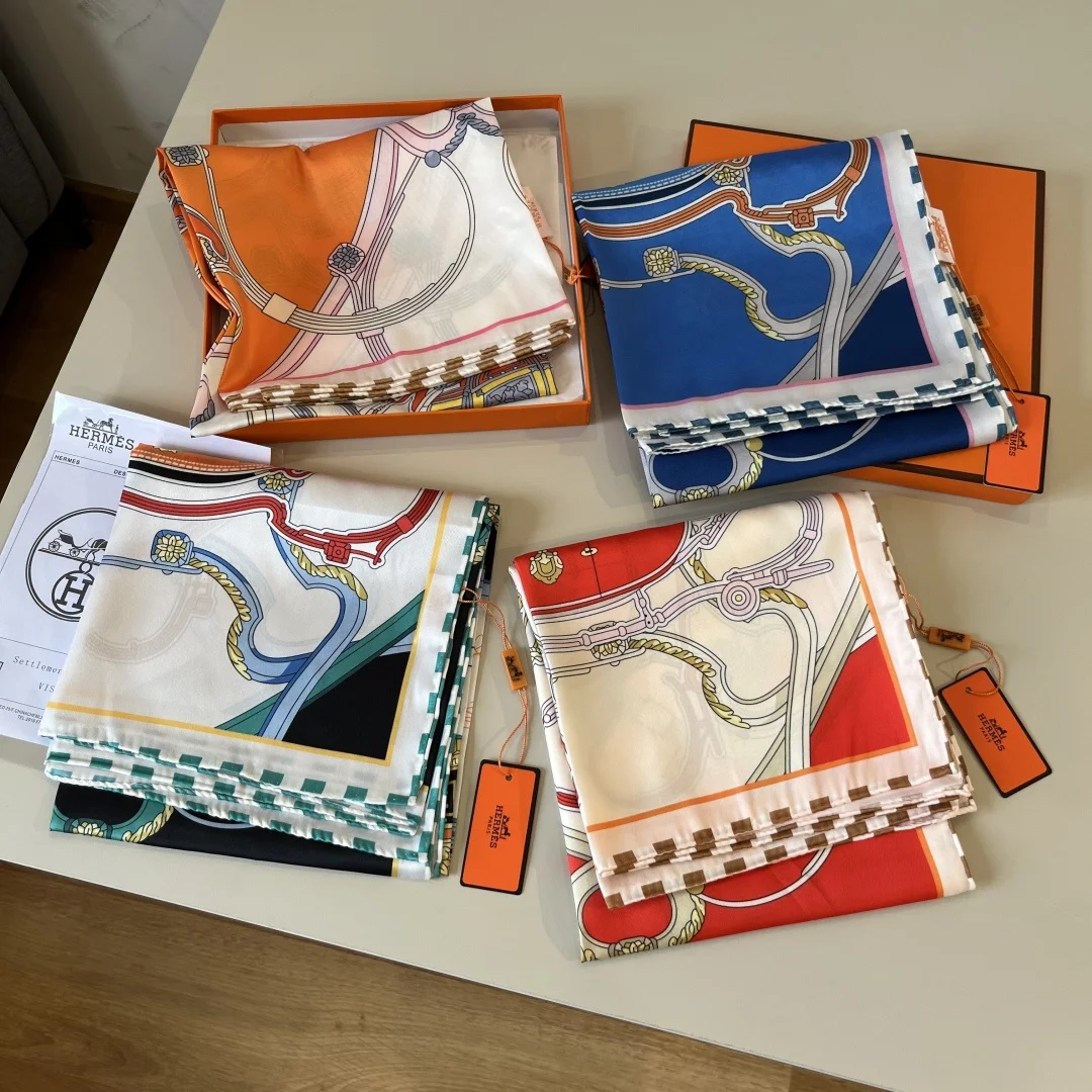 Hermes 90cm Silk Scarf Spring Mix Top-grade Twill Silk Material Hand-rolled Edges, Exuding a Luxurious Feel, High-end Heavyweight Twill Silk with Complete Boutique Quality Fa..