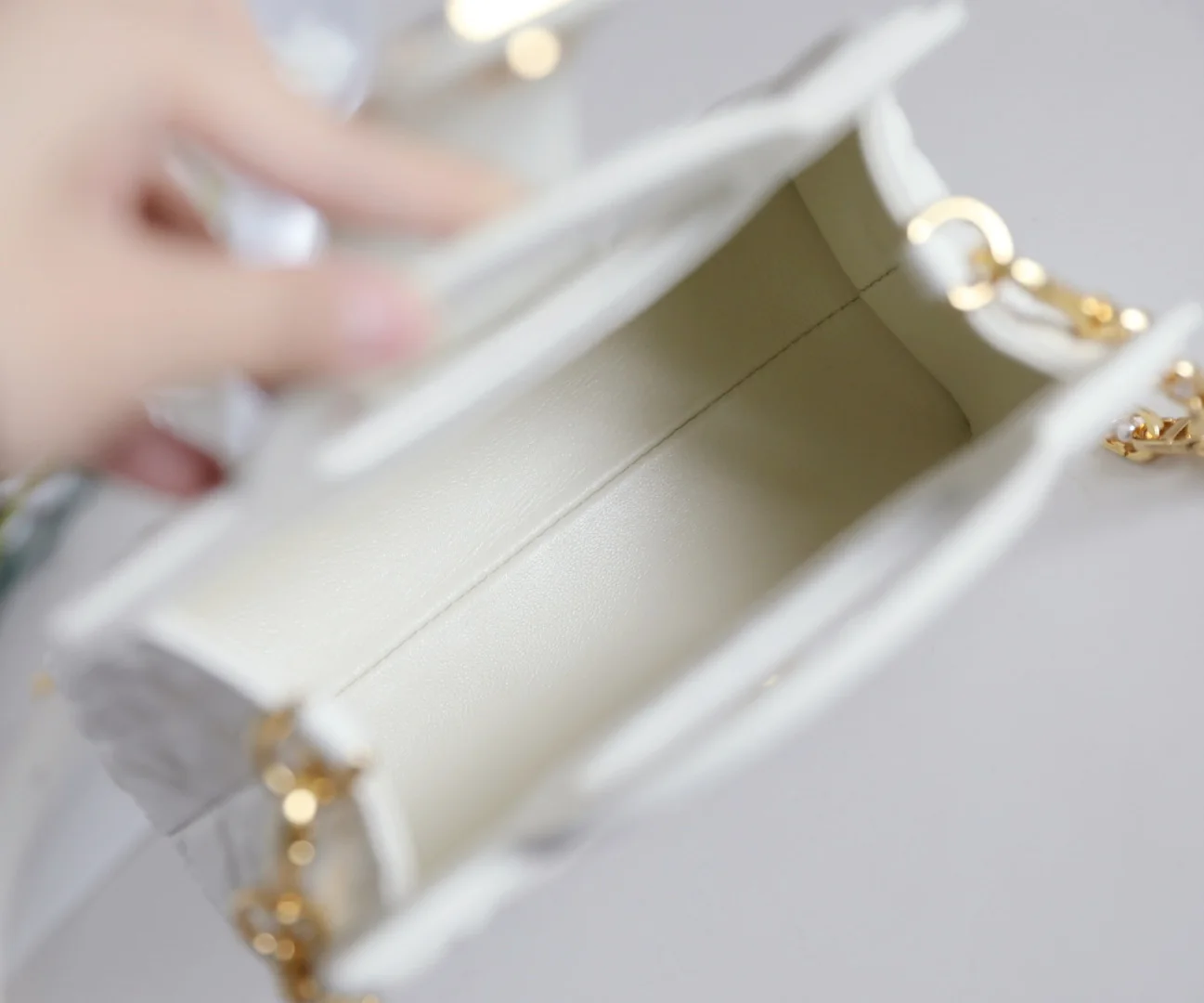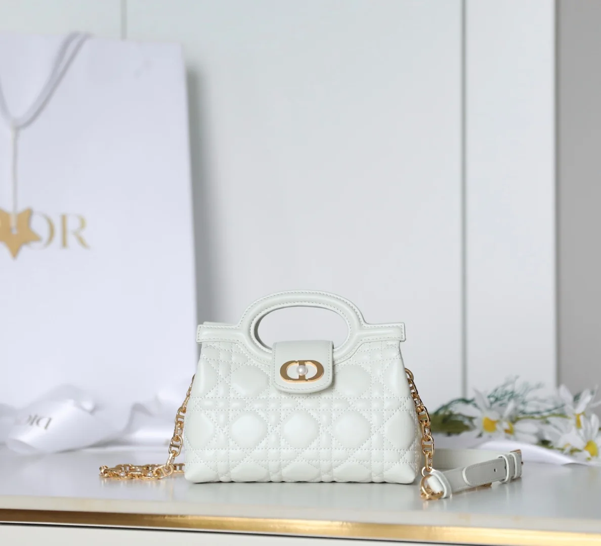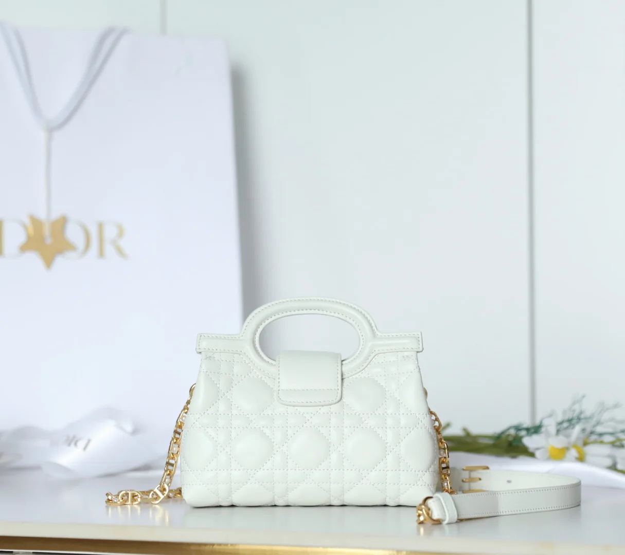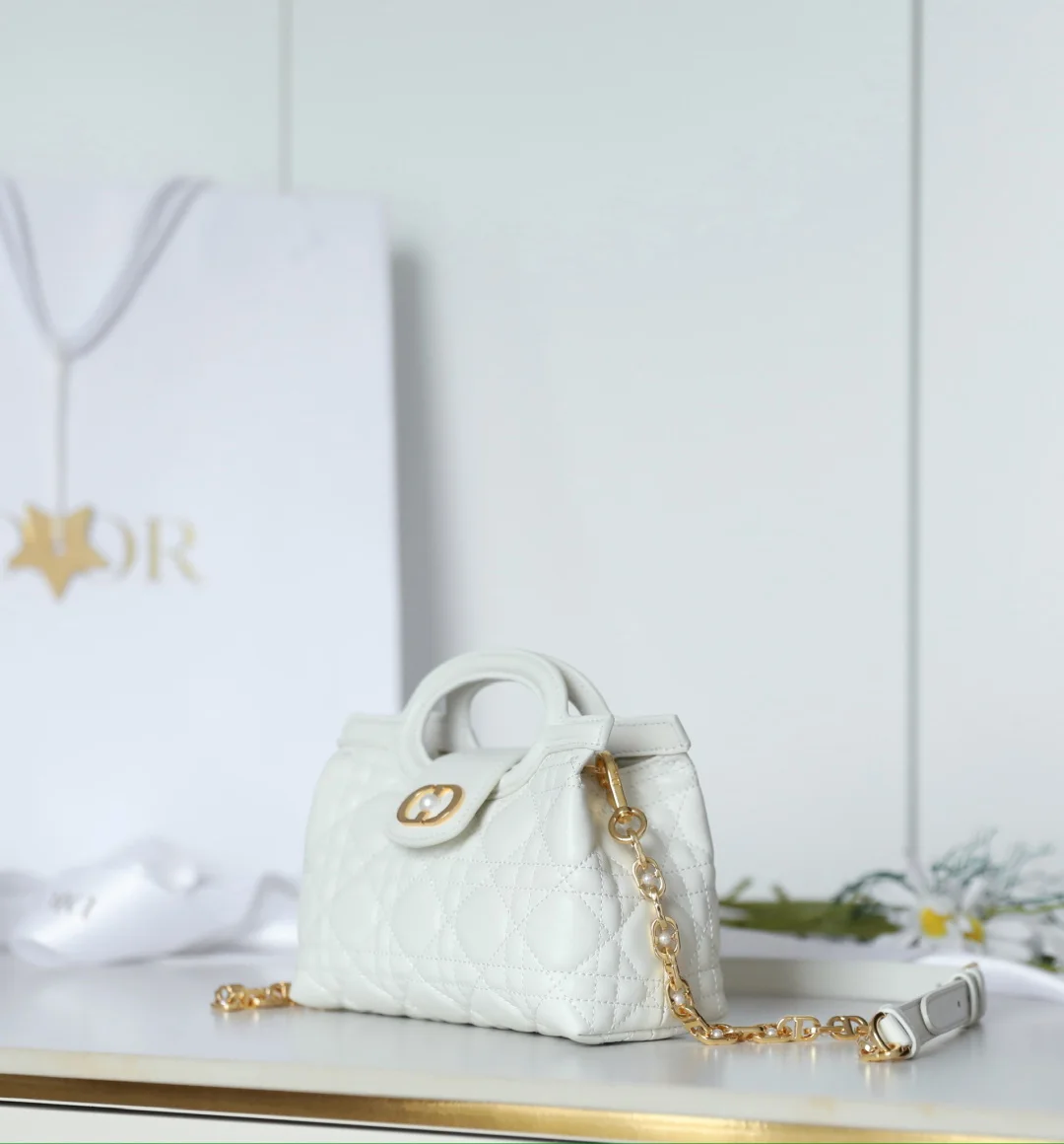 Premium Chip Version ๐ฟ๐๐ค๐ง ๐ ๐ค๐ก๐๐ ๐๐ค๐ฅ ๐๐๐ฃ๐๐ก๐ Pearl Bag DR-๐ ๐๐, a new addition to the Dior Spring 2026 Ready-to-Wear Collection, showcasing an elegant and refined design. Crafted in white lambskin with Cannage stitching, the flap is adorned with a gold-finish metal CD signature and embellished with white resin pearls. It features one interior compartment to accommodate daily essentials. With dual top handles and an adjustable, removable CD chain strap composed of leather and CD links, accented with white resin pearls, it can be comfortably carried by hand, worn over the shoulder, or crossbody, complementing both daytime and evening ensembles. Main body: Lambskin Lining: Lambskin Magnetic flap closure CD clasp and white resin pearl detailing on the front 1 compartment Dual top leather handles Adjustable and removable chain strap with resin pearl and leather detailing
