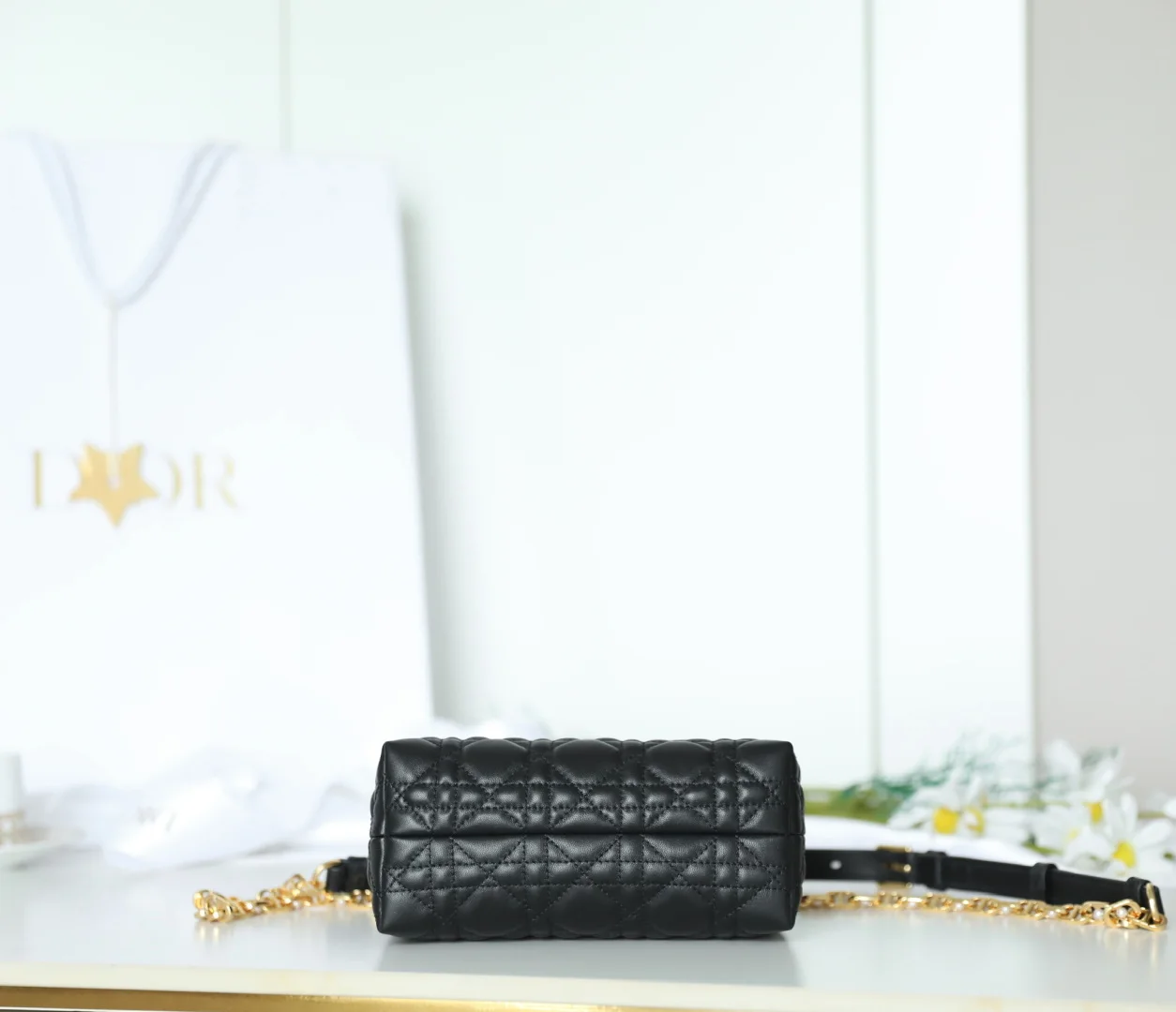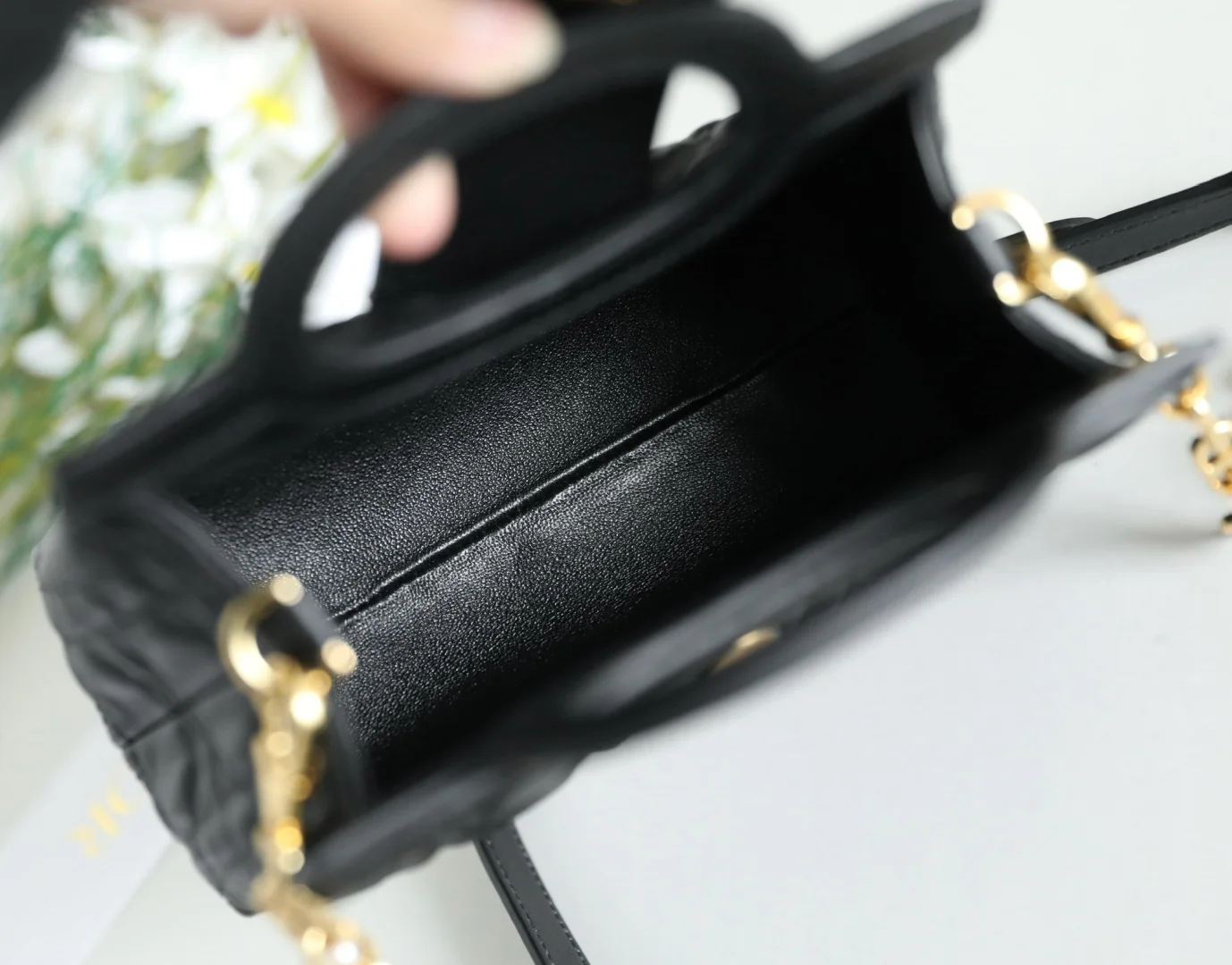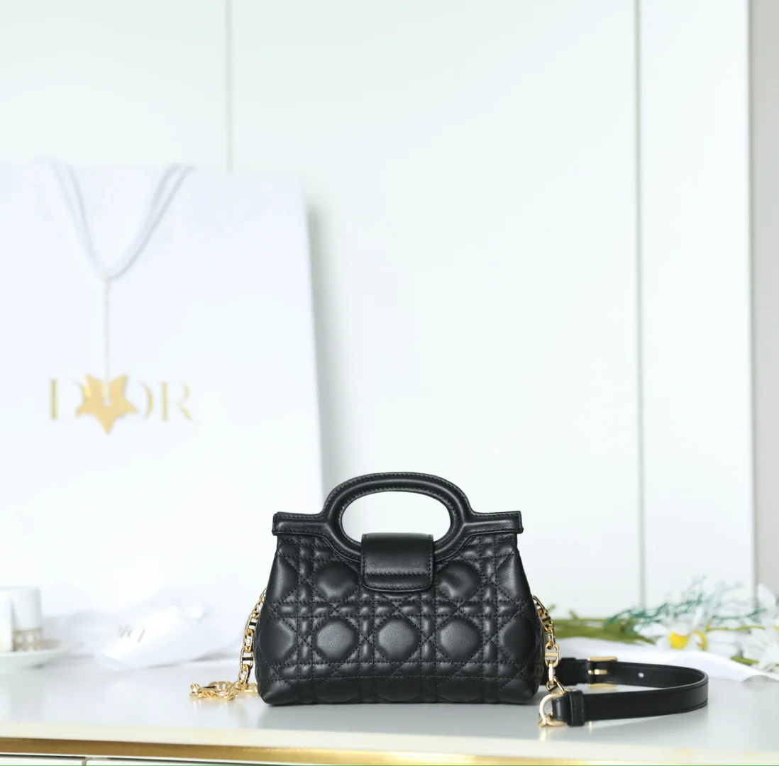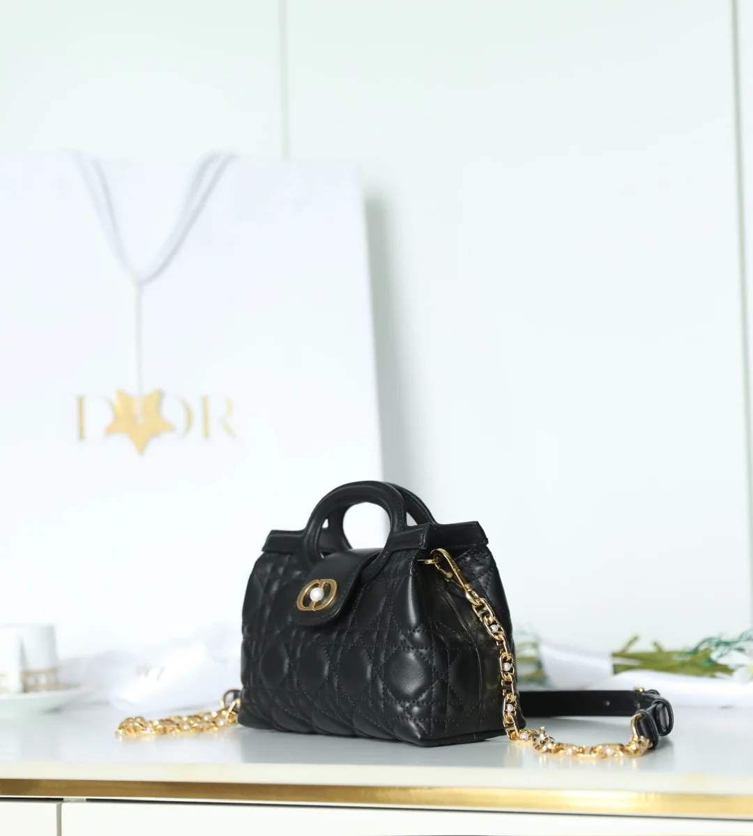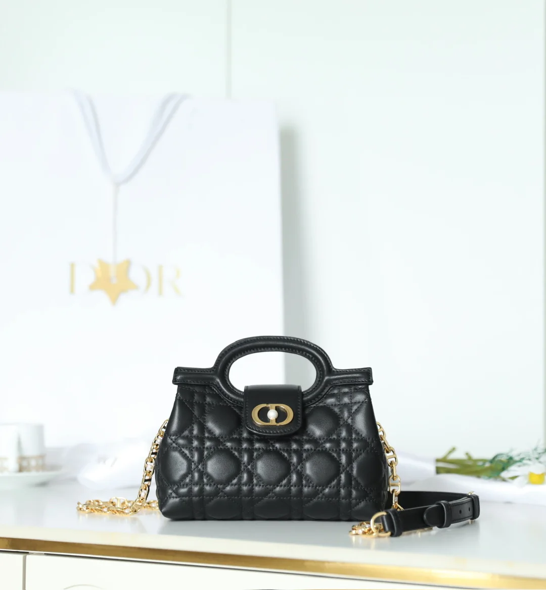 Superior Chip Version ๐ฟ๐๐ค๐ง ๐ ๐ค๐ก๐๐ ๐๐ค๐ฅ ๐๐๐ฃ๐๐ก๐ Pearl Bag DR-๐ ๐๐, a new addition to the Dior Spring 2026 Ready-to-Wear Collection, showcases an elegant and refined design. Crafted in black lambskin with Cannage stitching, the flap is embellished with a gold-finish metal CD signature and adorned with white resin pearls. The interior features a compartment to accommodate daily essentials. Equipped with double top handles and an adjustable, removable CD chain strap, composed of a leather insert and CD chain links accented with white resin pearls, it can be carried by hand, worn over the shoulder, or crossbody, complementing both daytime and evening ensembles. Main body: Lambskin Lining: Lambskin Magnetic flap closure CD clasp and white resin pearls on the front 1 compartment Double top leather handles Adjustable and removable chain strap with resin pearls and leather insert