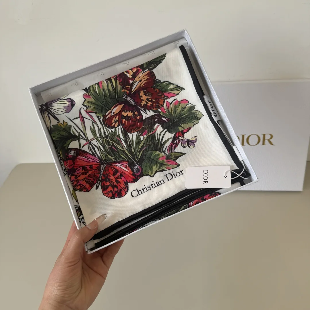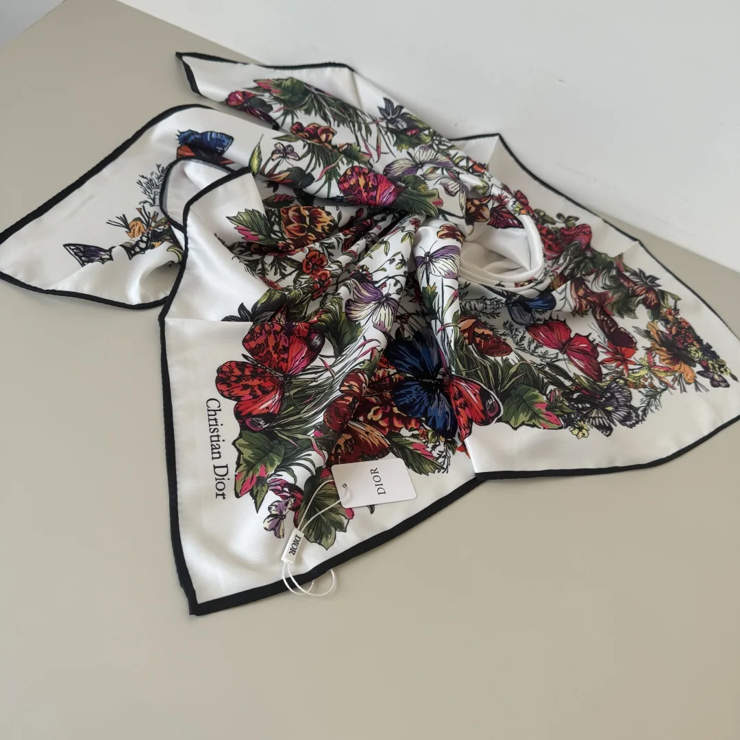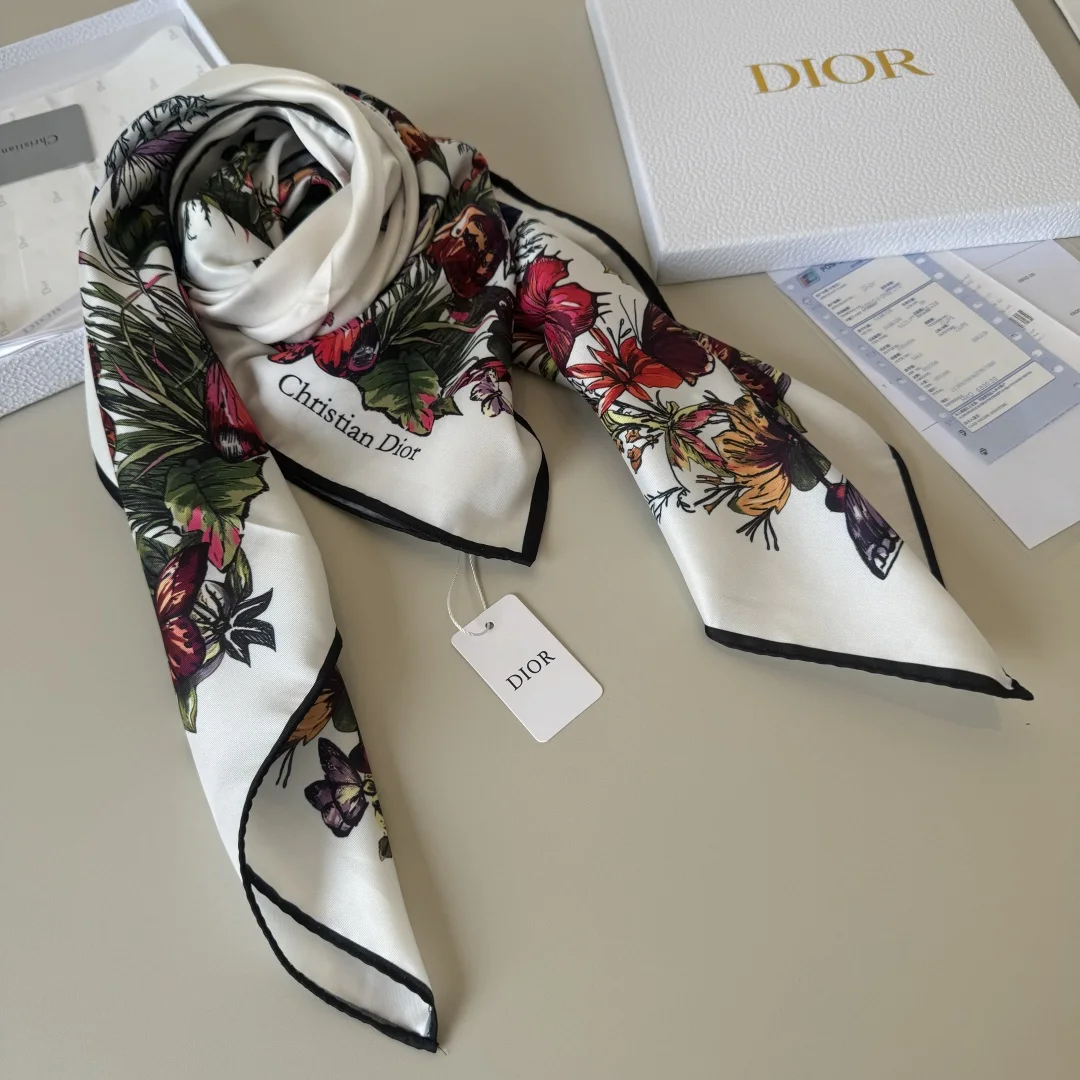 Dior s new square scarf Dior Floral Scarf Absolutely stunning, a top-tier masterpiece The classic element pattern design is extremely beautiful, truly flattering to the skin tone and versatile. Whether it s good-looking or not, you can judge for yourself