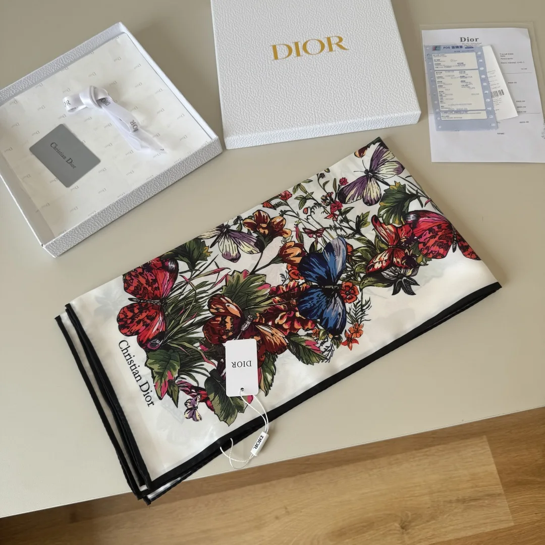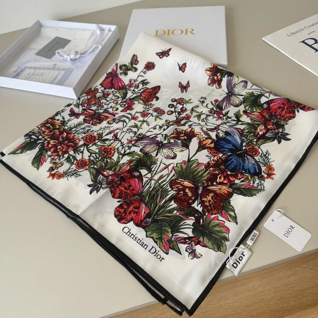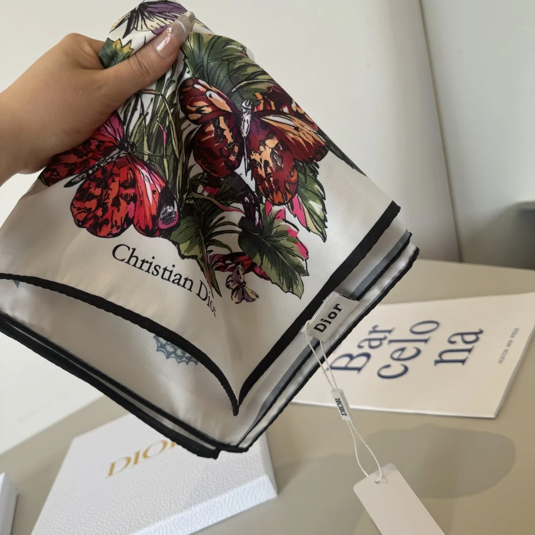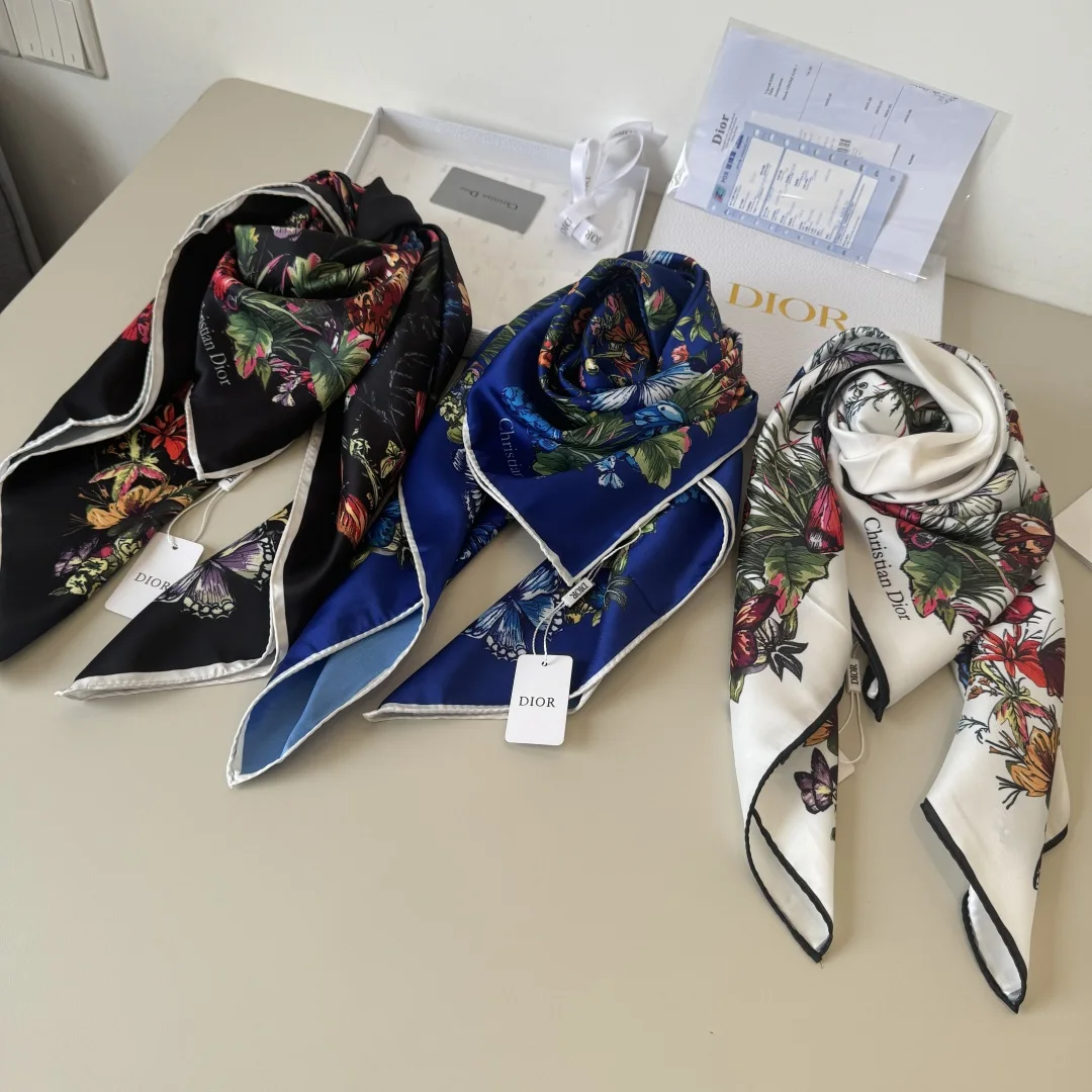 Dior s new square scarf Dior Floral Scarf Absolutely stunning, a top-tier masterpiece The classic element pattern design is extremely beautiful, truly flattering to the skin tone and versatile. Whether it s good-looking or not, you can judge for yourself