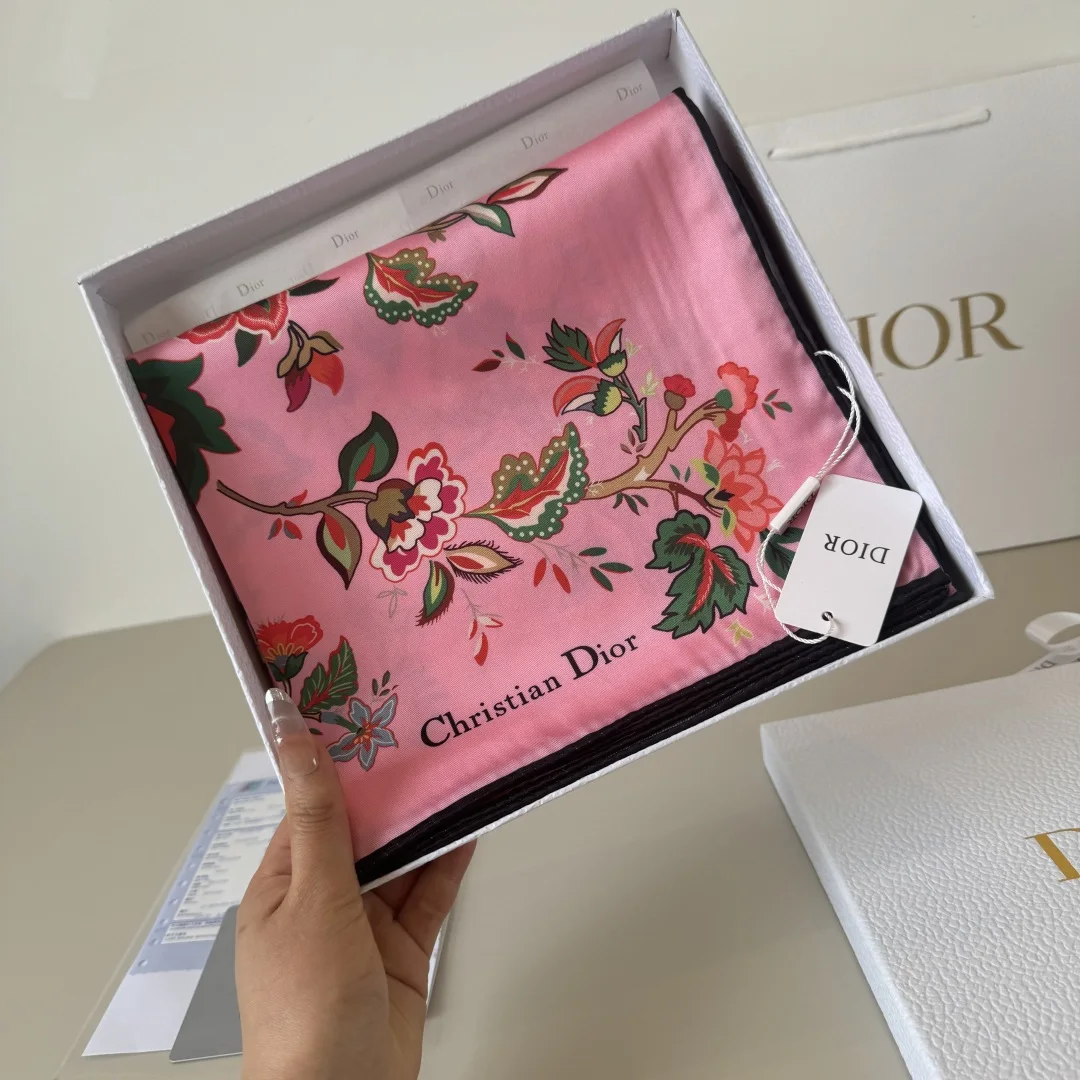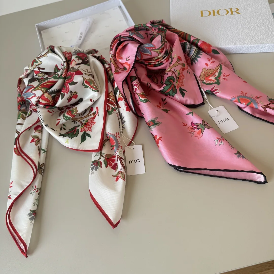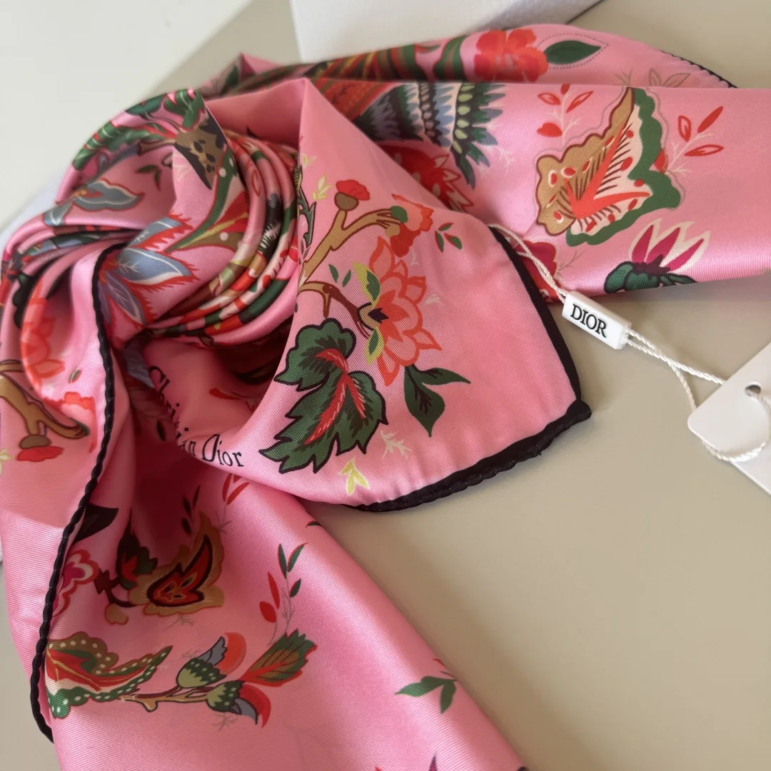 Dior s new square scarf Dior Floral Square Scarf Absolutely stunning, a top-tier masterpiece Classic element pattern design style, extremely beautiful. It truly complement..