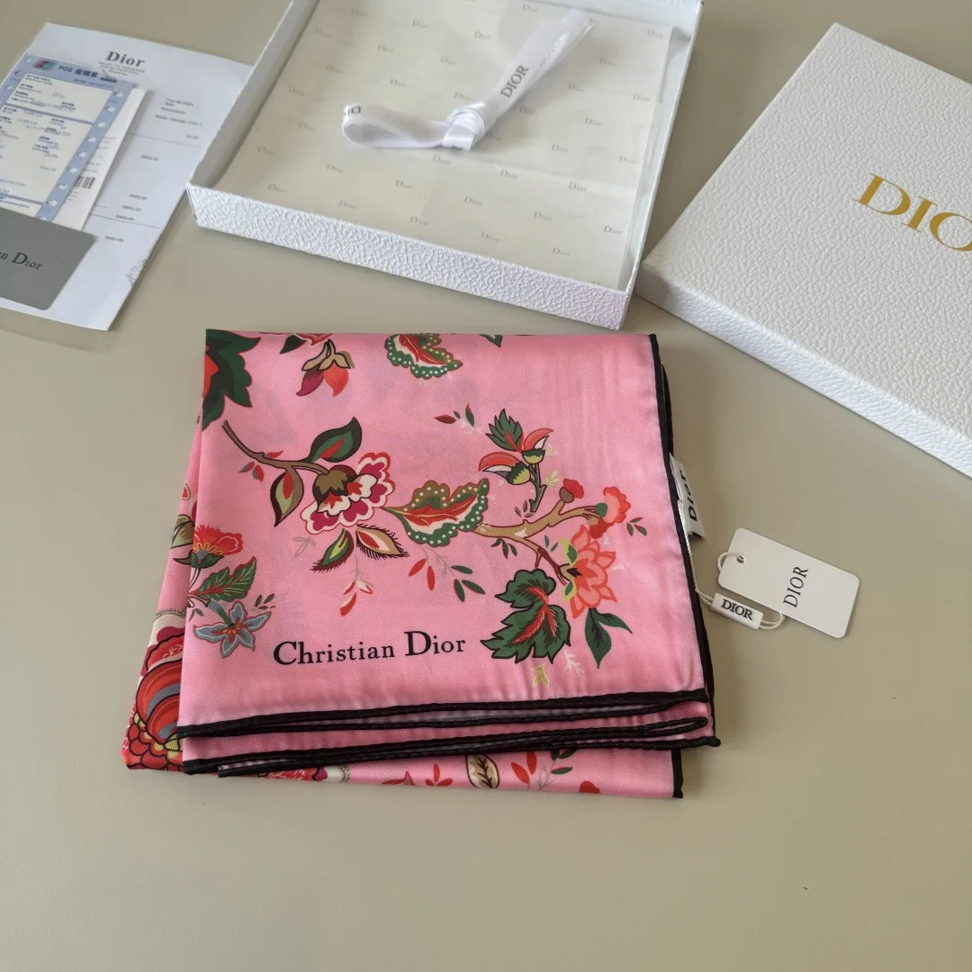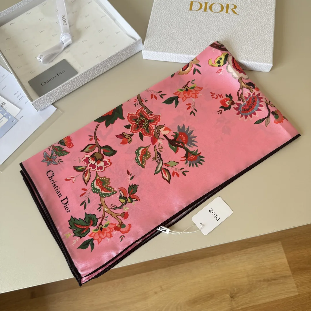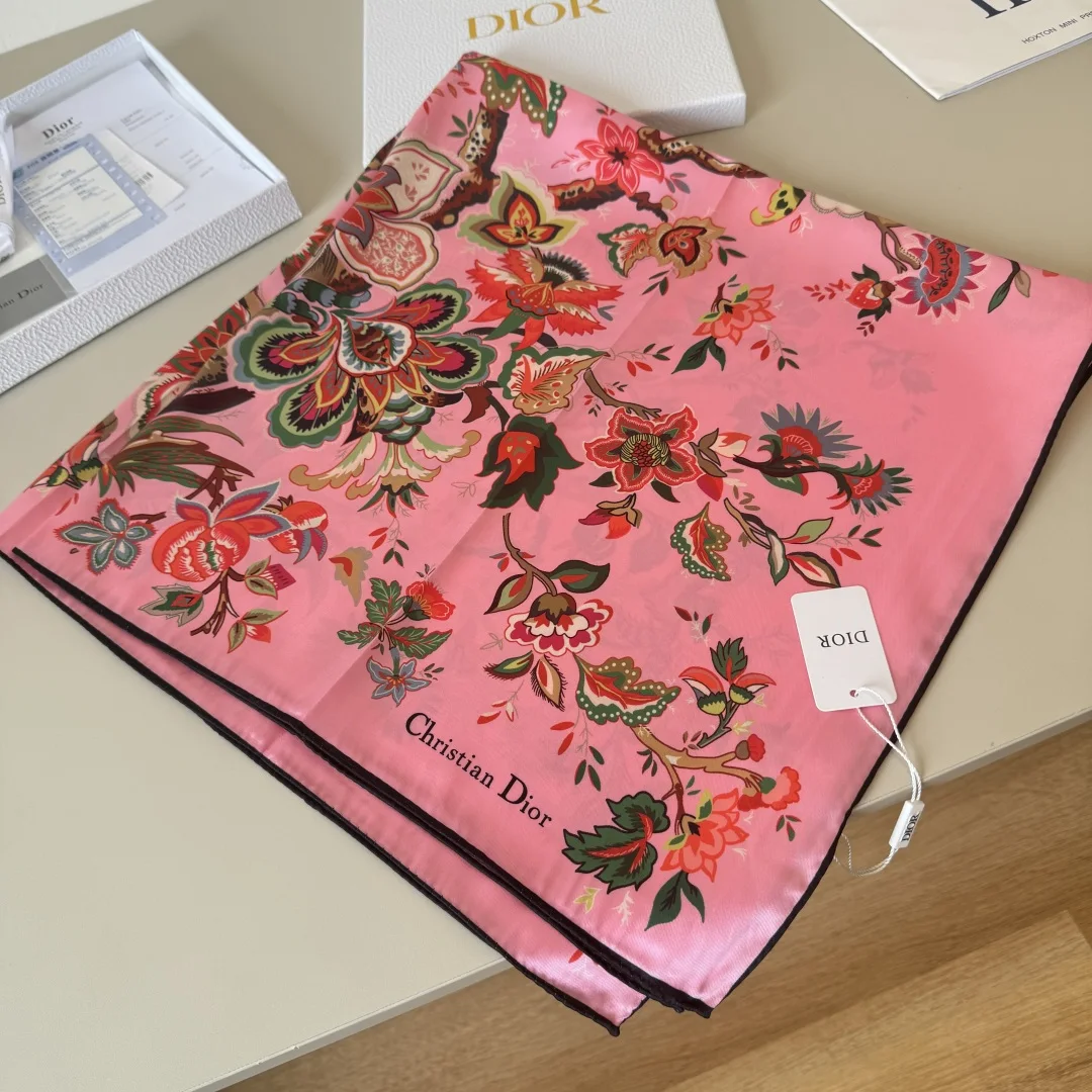 Dior s new square scarf Dior Floral Square Scarf Absolutely stunning, a top-tier masterpiece Classic element pattern design style, extremely beautiful. It truly complement..