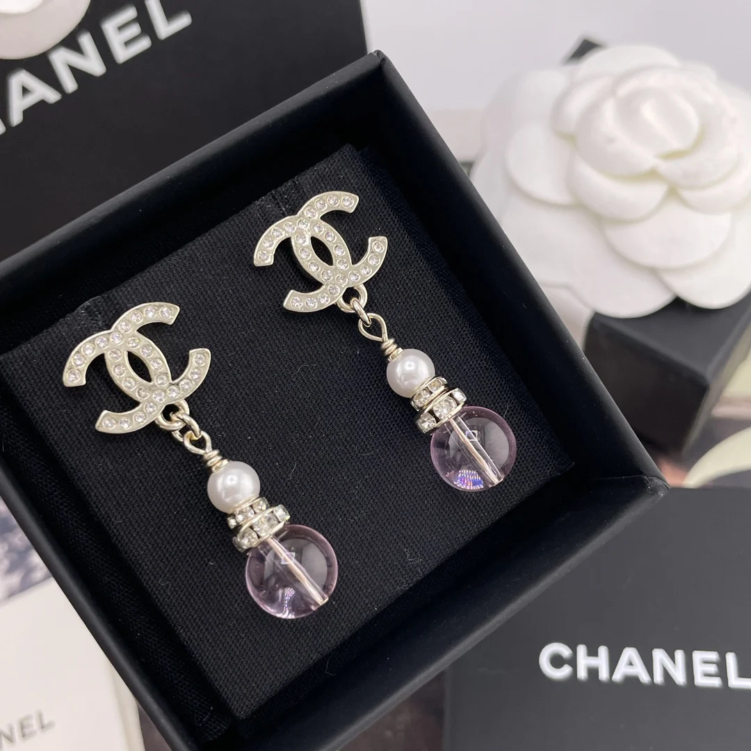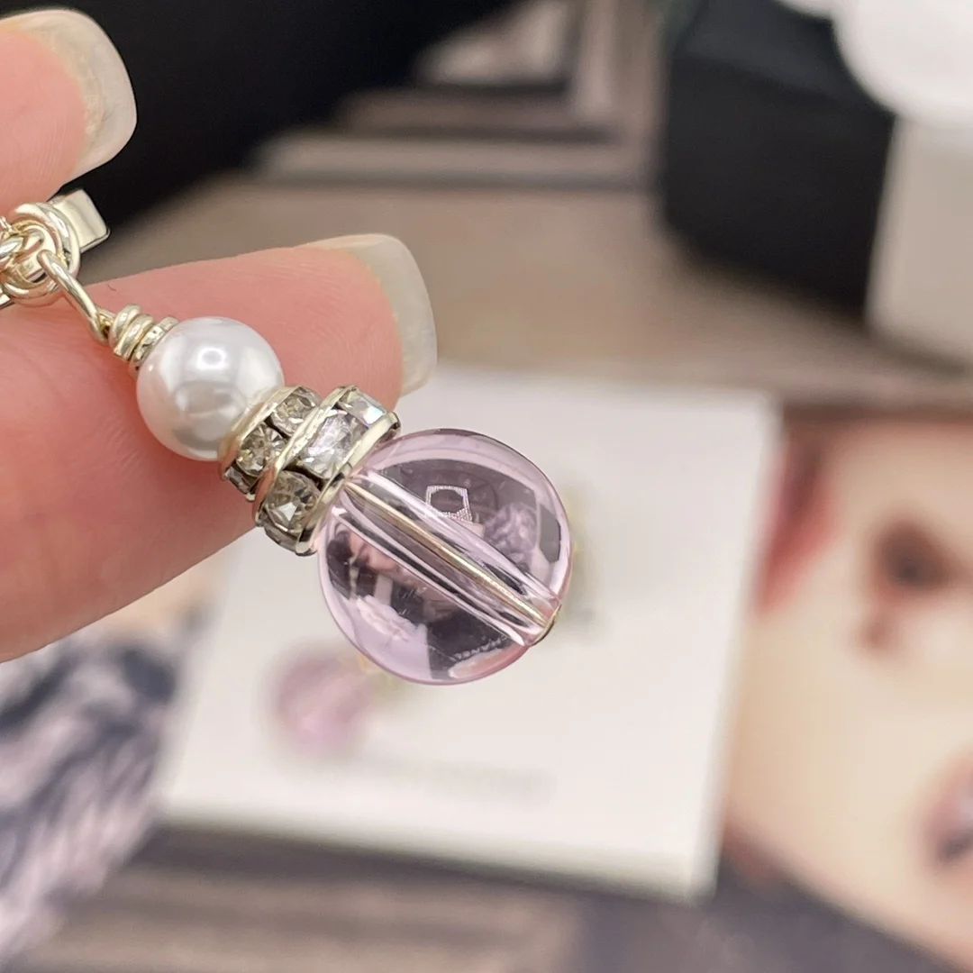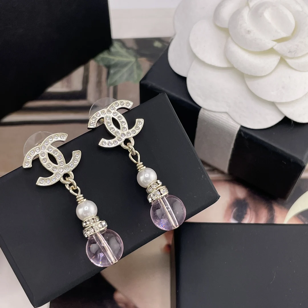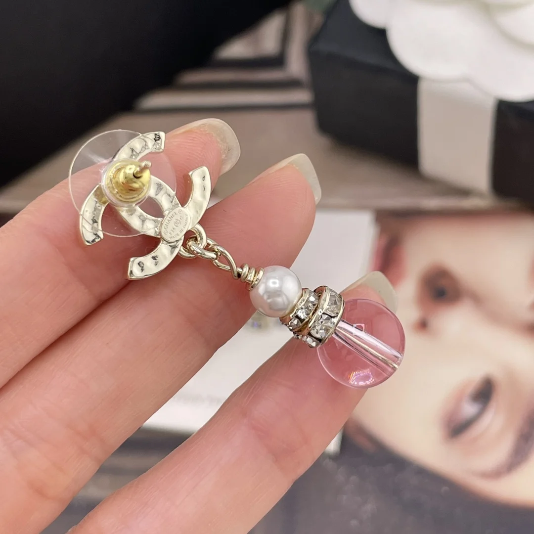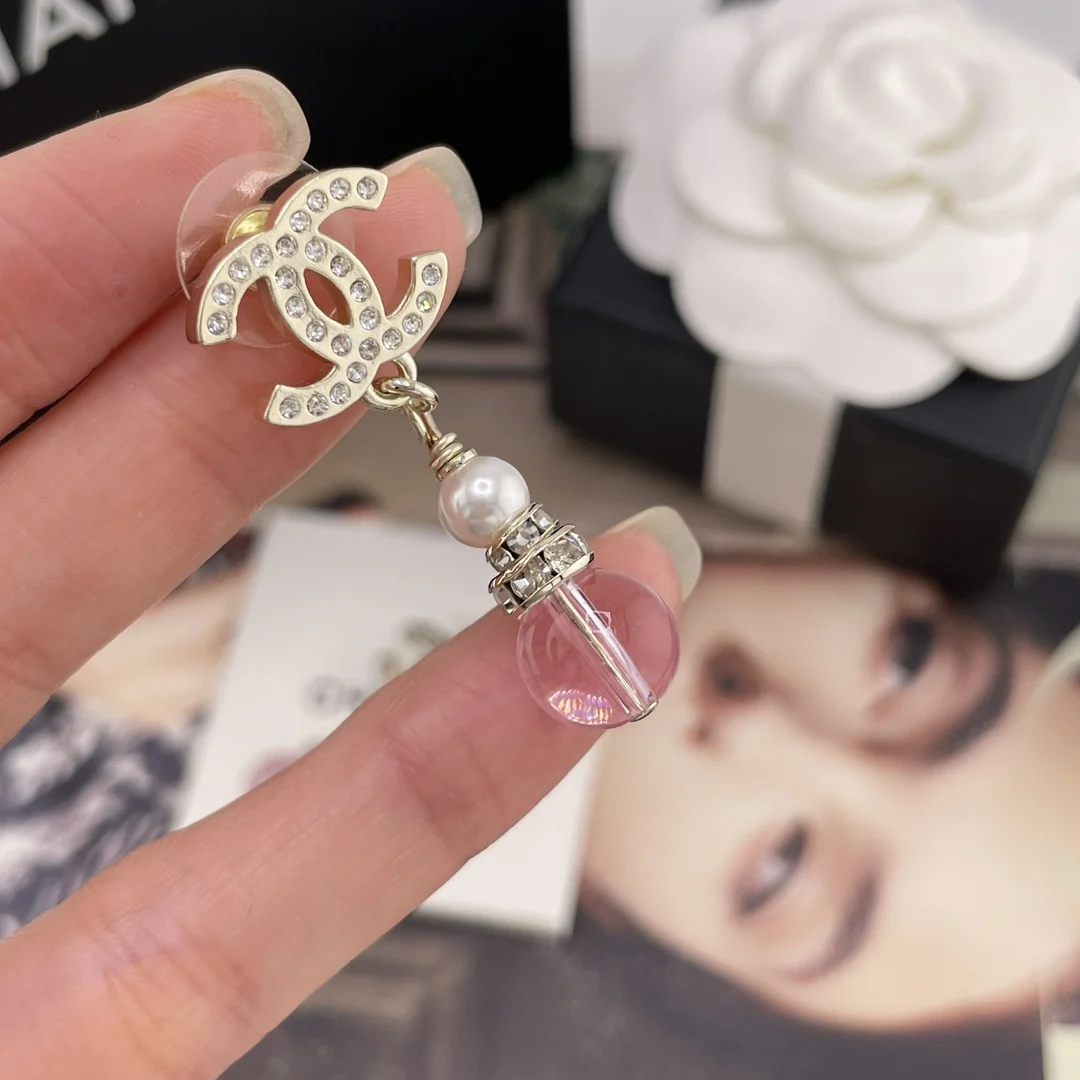 216771 [Chanel Double C Pink Crystal Gourd Earrings] Latest early spring collection, simple double C logo with diamond accents pink crystal pearl