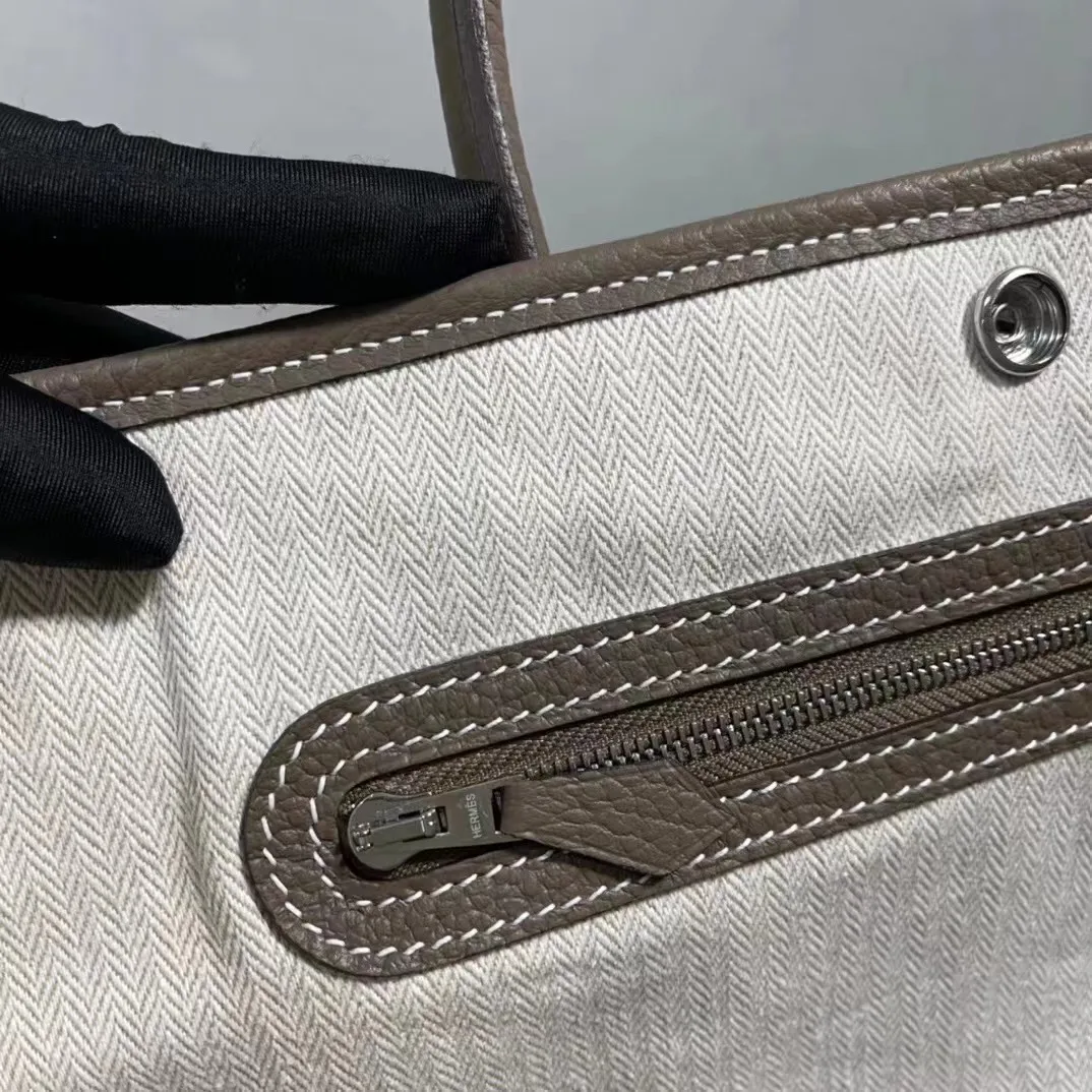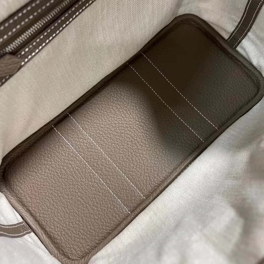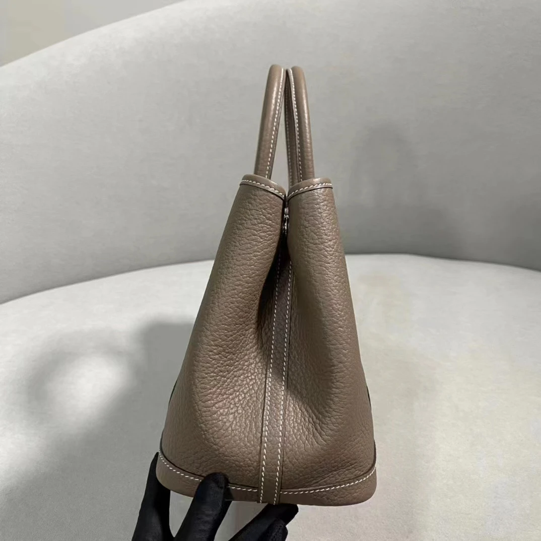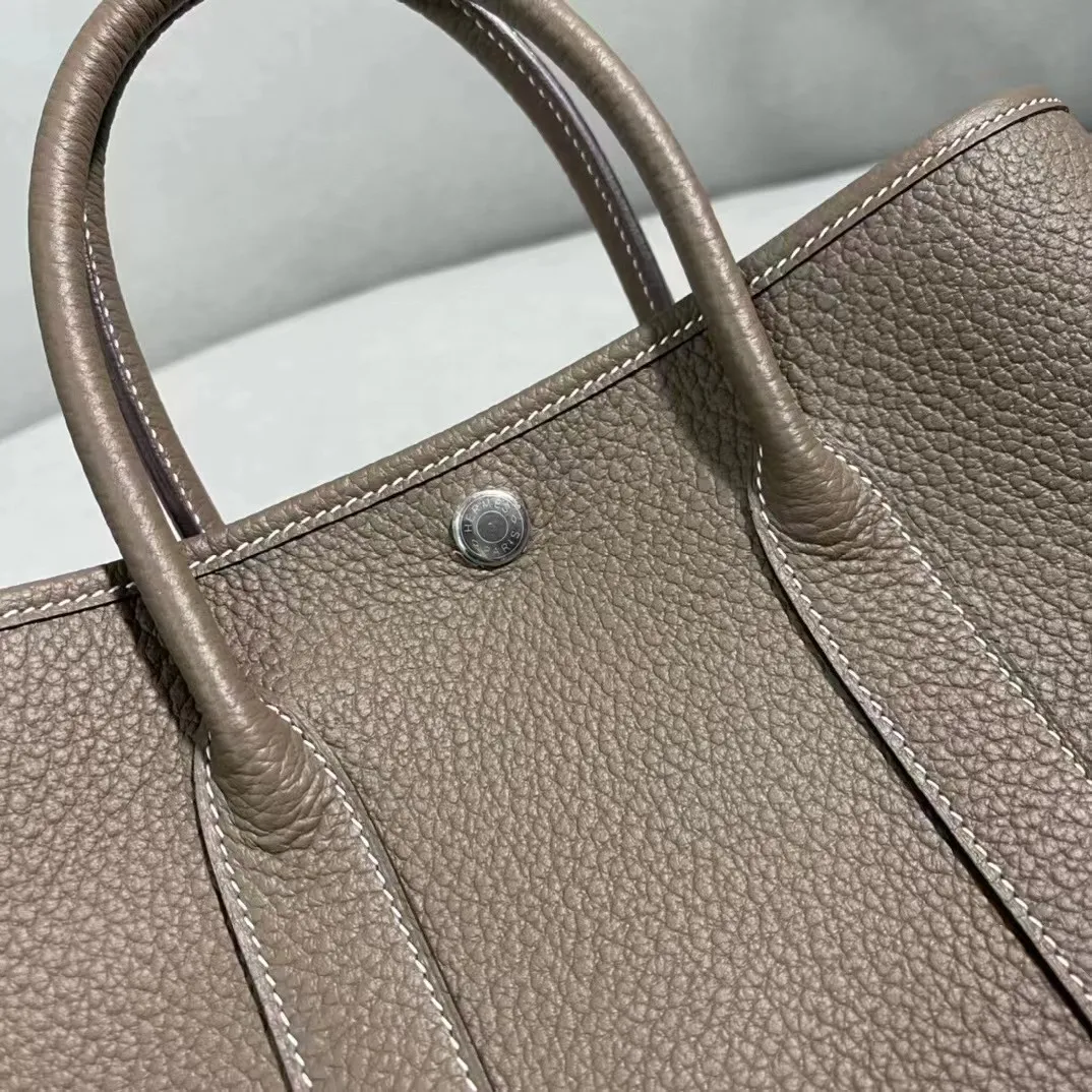 Semi-handmade Garden Party 30cm 36cm bag, elephant grey. Material: electroplated pure steel hardware. Leather material: Grade A Togo leather, sewn with beeswax thread in sync with the store s standard.