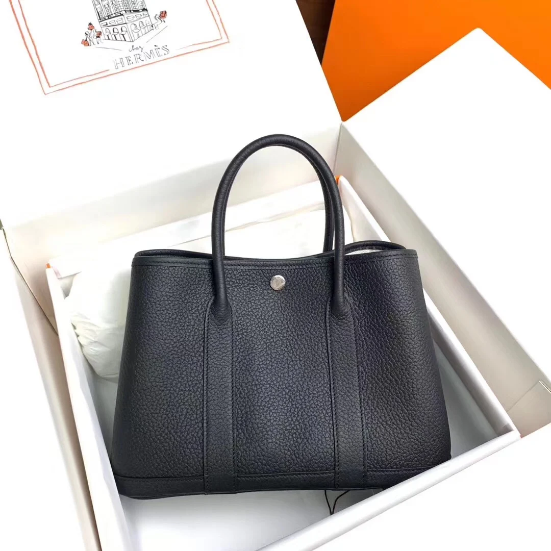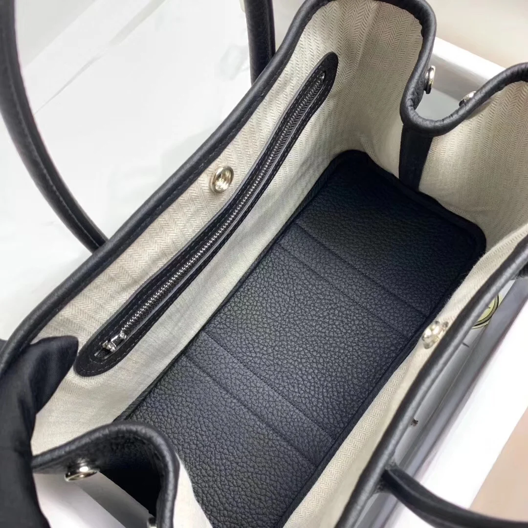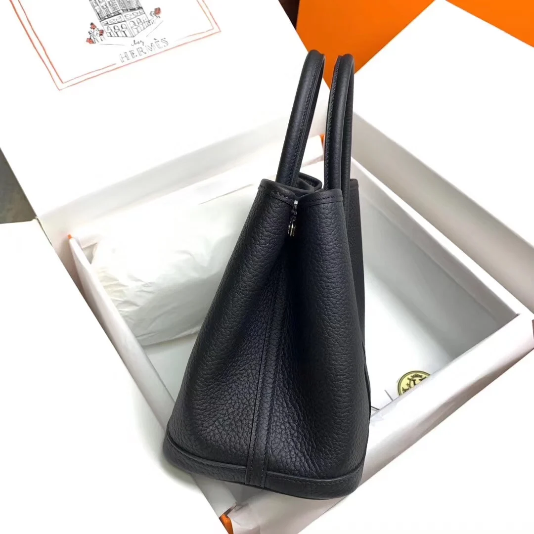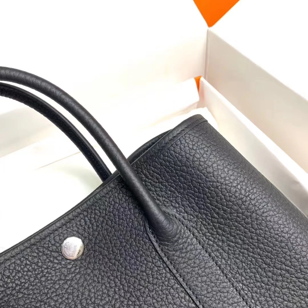 Semi-handmade Garden Party 30cm 36cm Tote Bag, Black. Material: Electroplated pure steel hardware, Leather material: Grade A Negond leather, stitched with beeswax thread matching the authentic product.