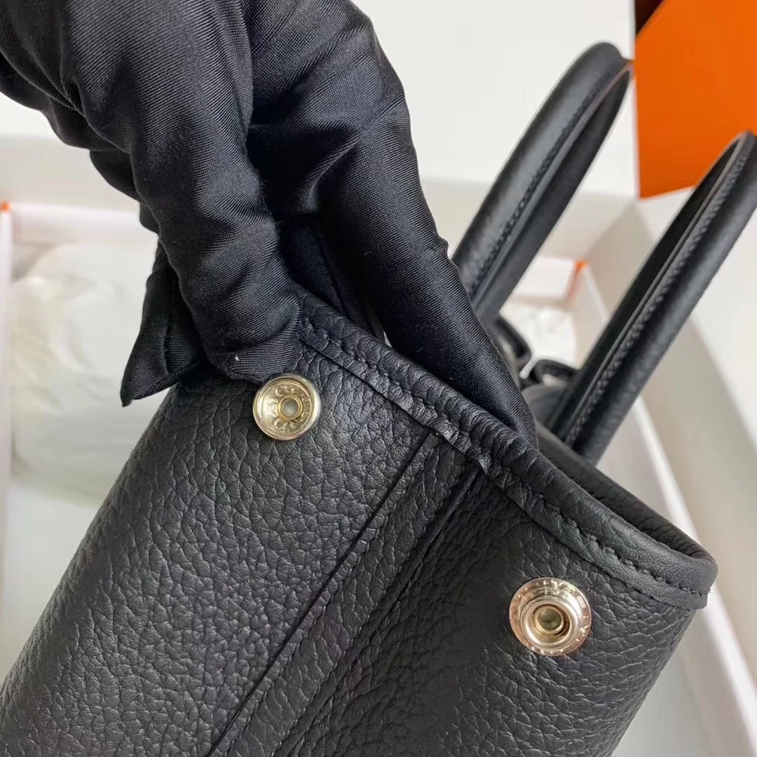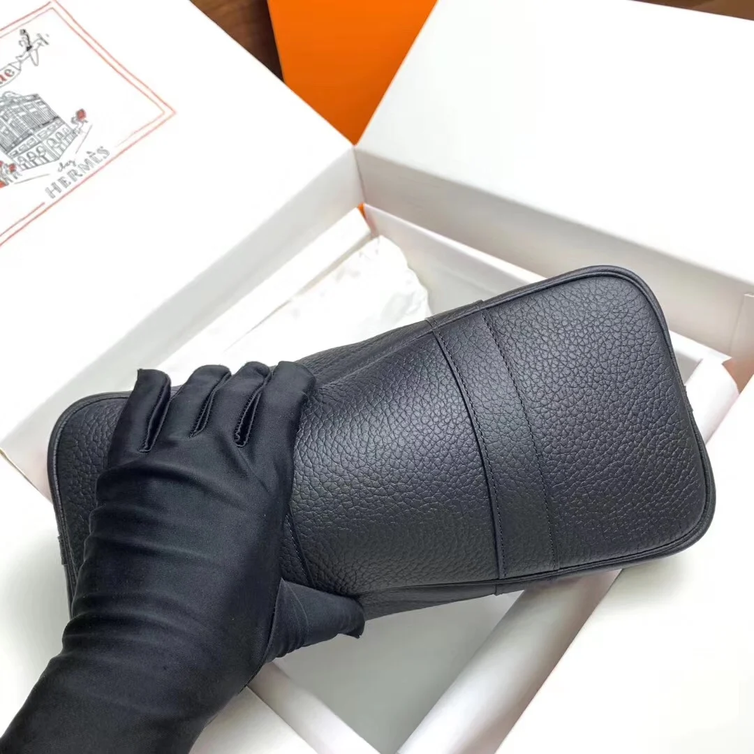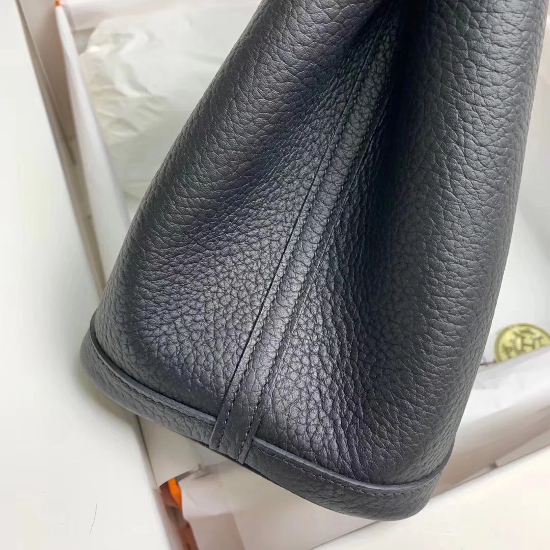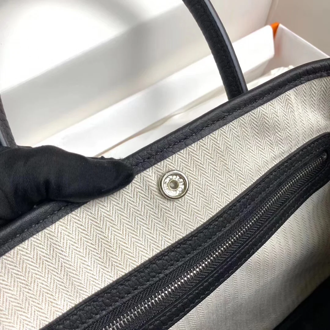 Semi-handmade Garden Party 30cm 36cm Tote Bag, Black. Material: Electroplated pure steel hardware, Leather material: Grade A Negond leather, stitched with beeswax thread matching the authentic product.