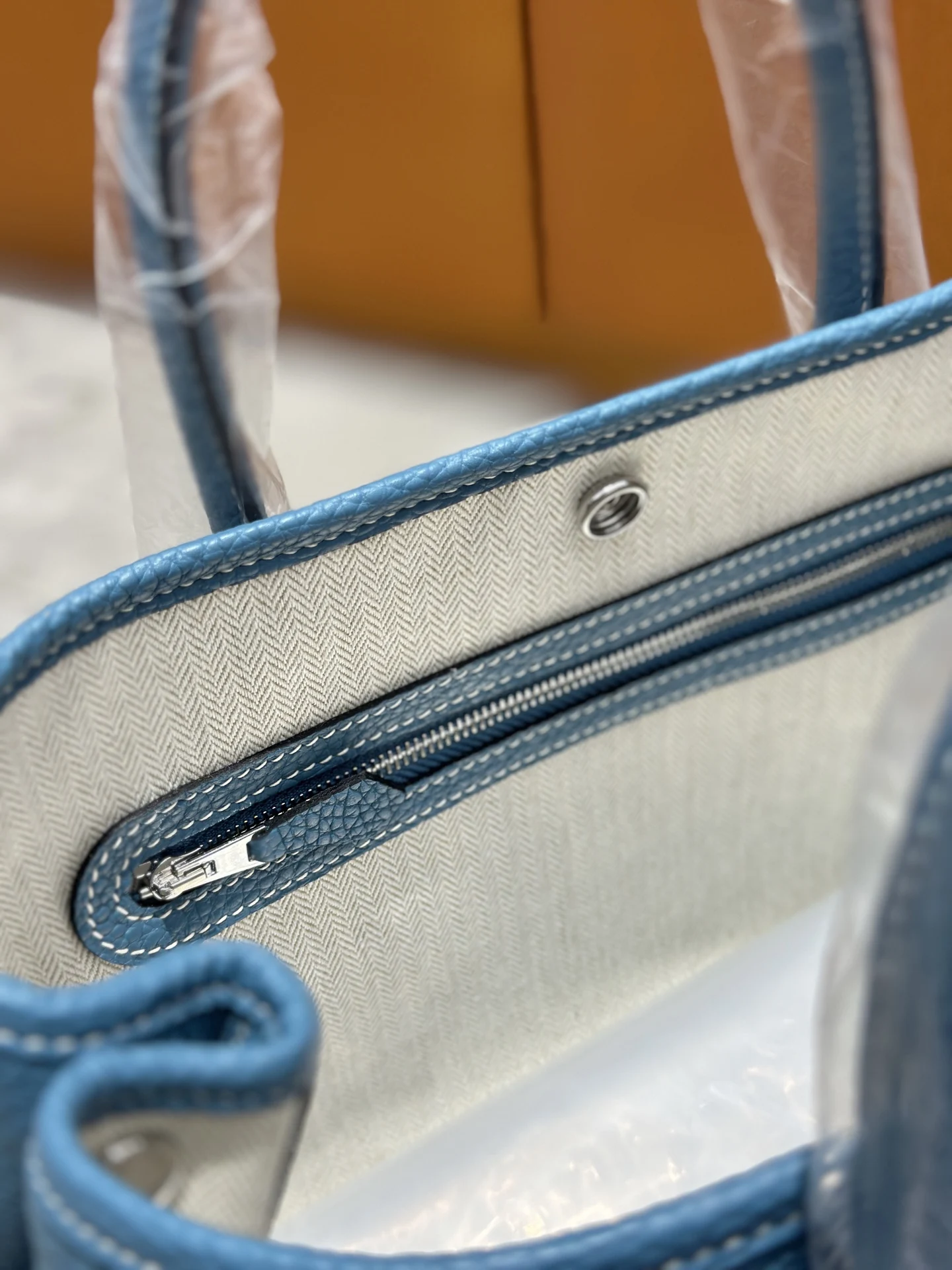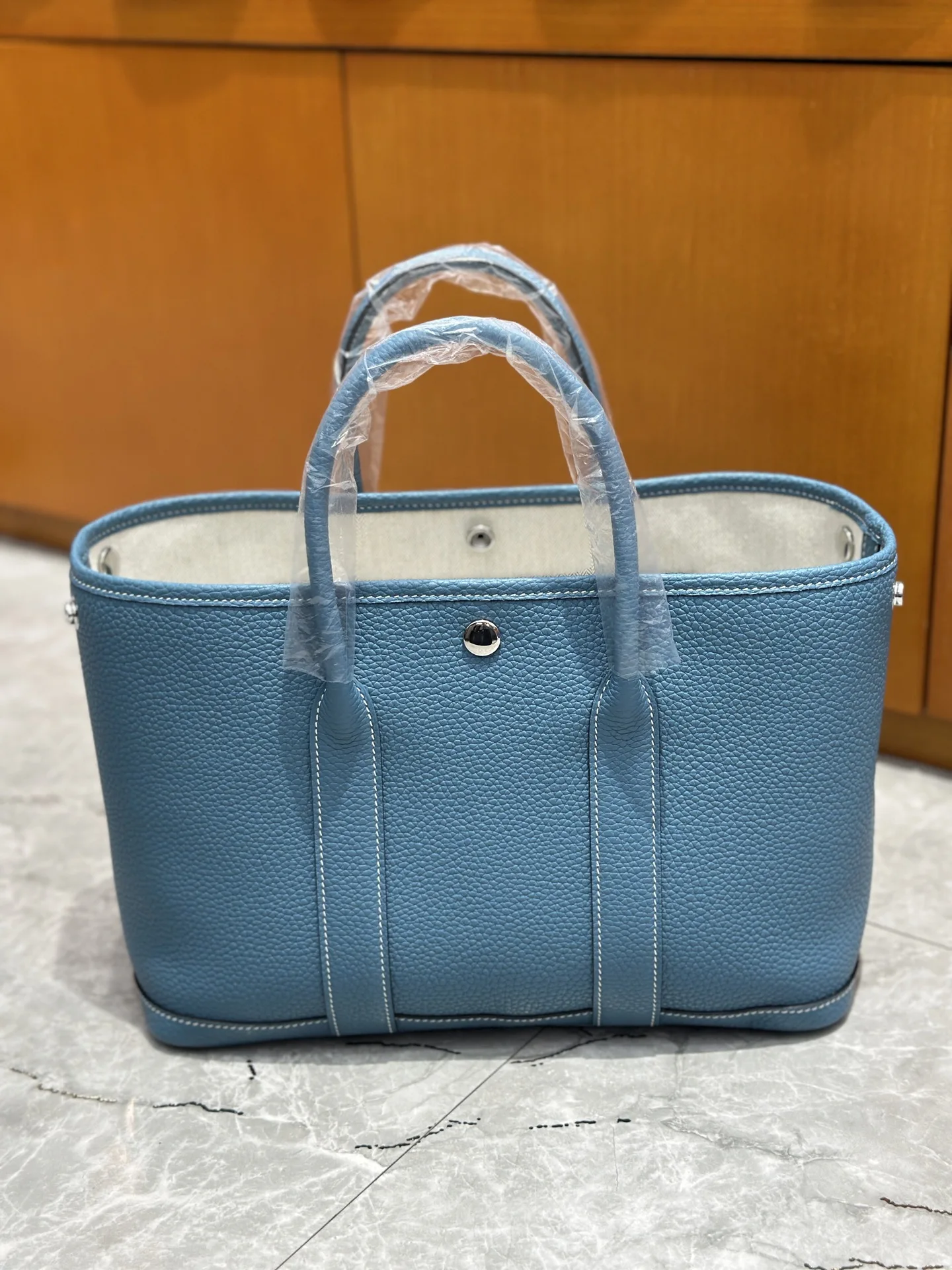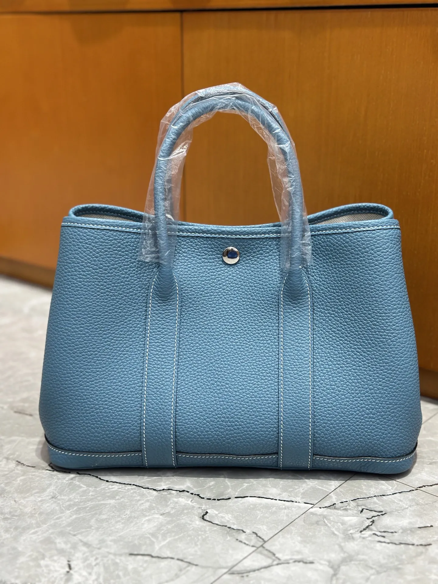 Garden Party 30cm full leather handbag in denim blue perfect for both commuting and going out! Exudes a sense of luxury.
