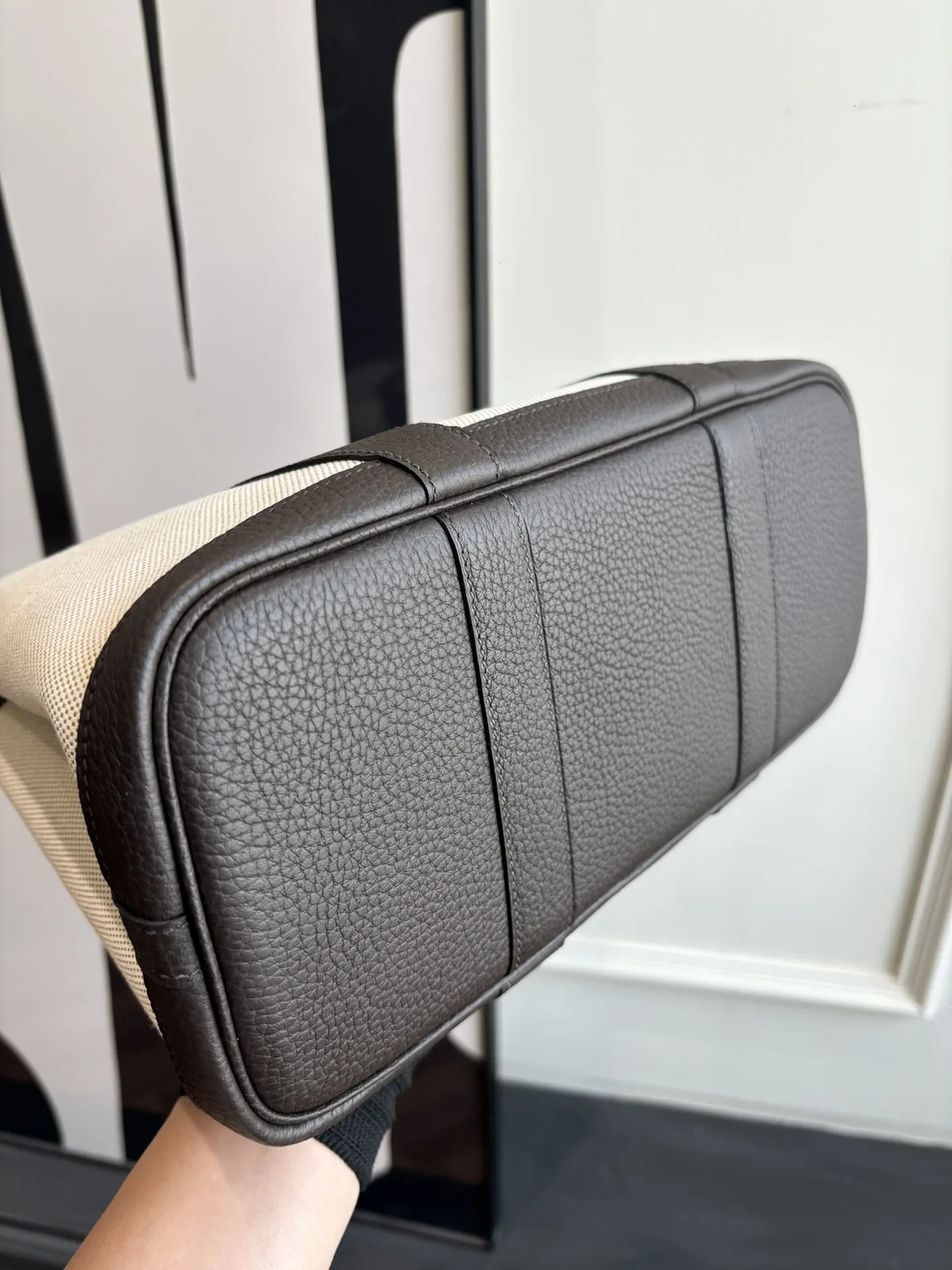 Garden Party bag, canvas combined with Notogo leather, lightweight design suitable for commuting or as a diaper bag, prioritizing aesthetics and practicality. Waxed thread, semi-ha..