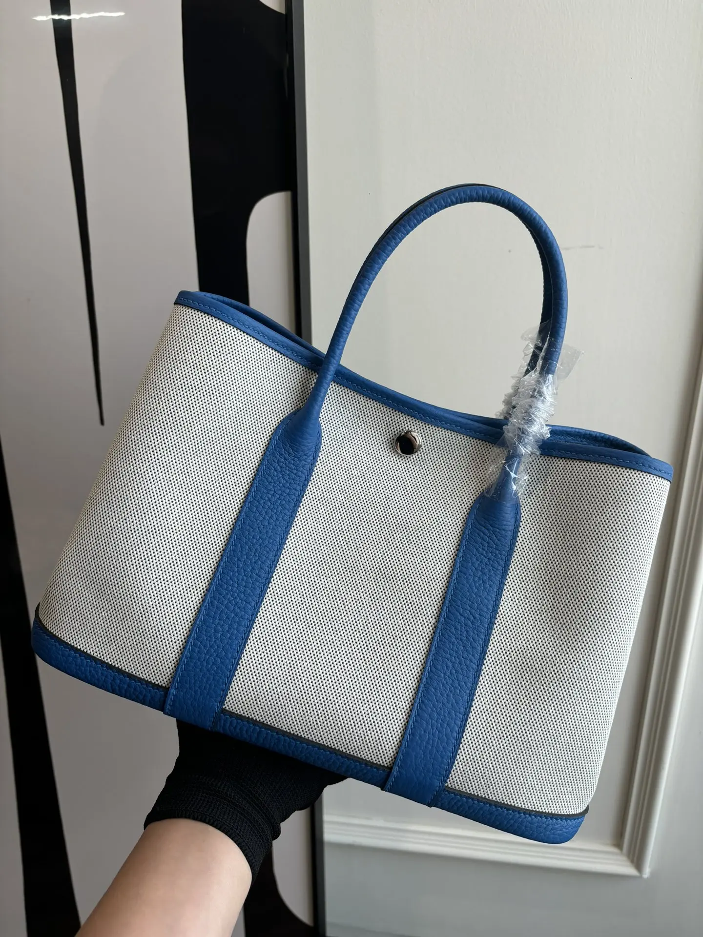 Garden party canvas bag with Notogo leather trim, lightweight and practical, suitable for commuting or as a diaper bag. Combines aesthetics and functionality. Waxed thread, semi-ha..