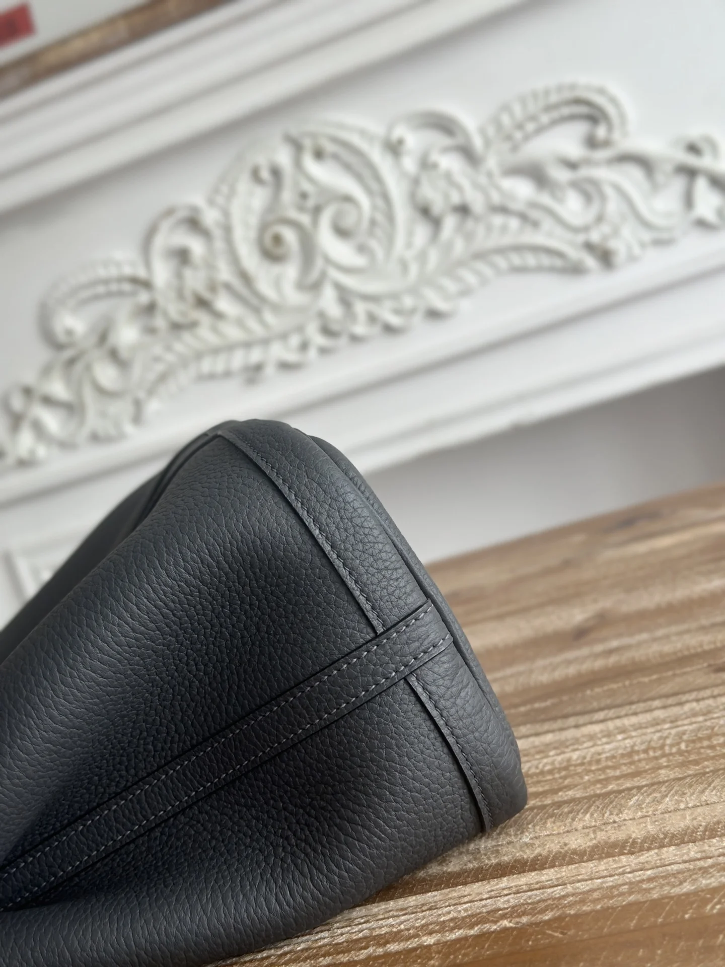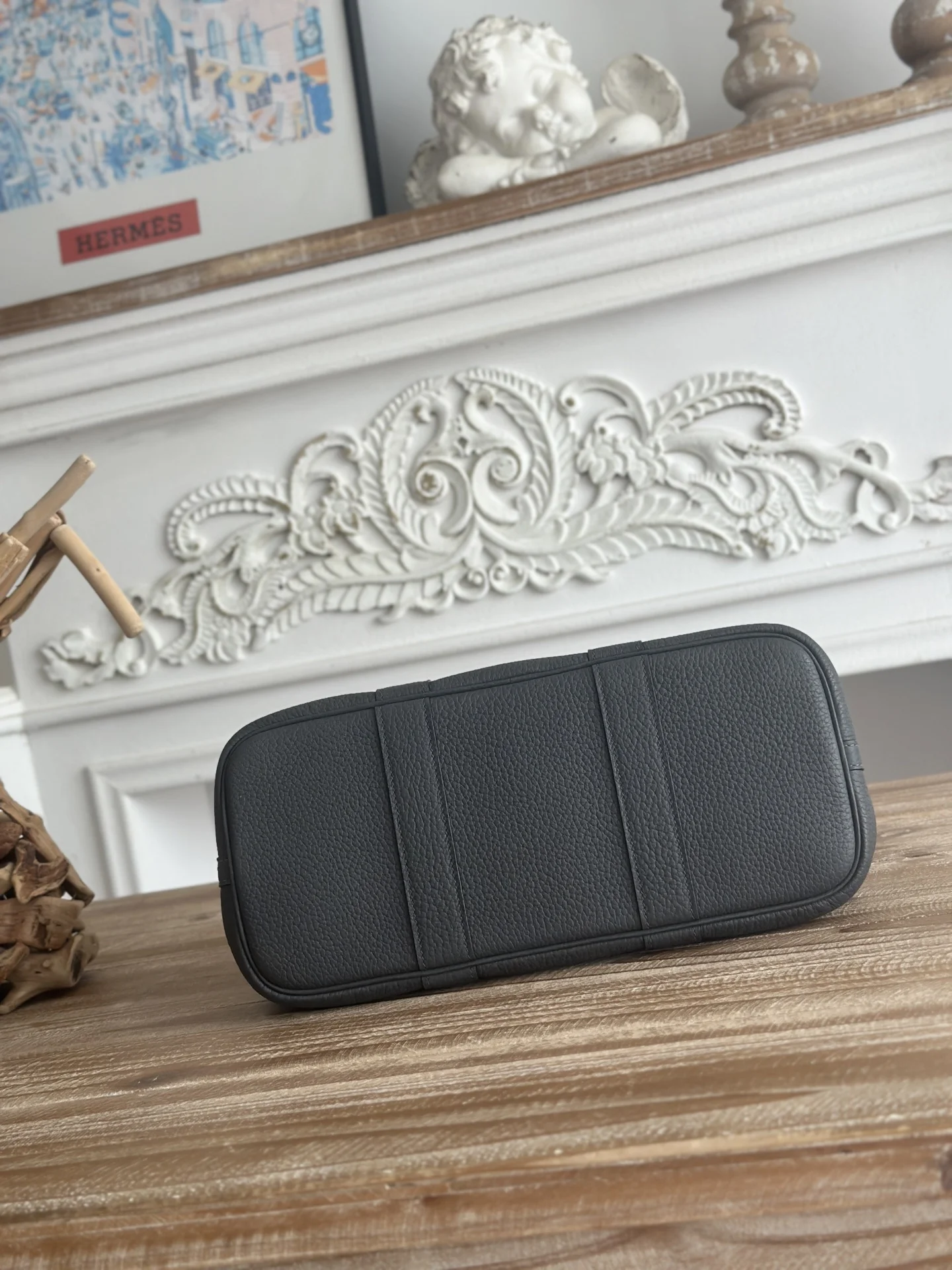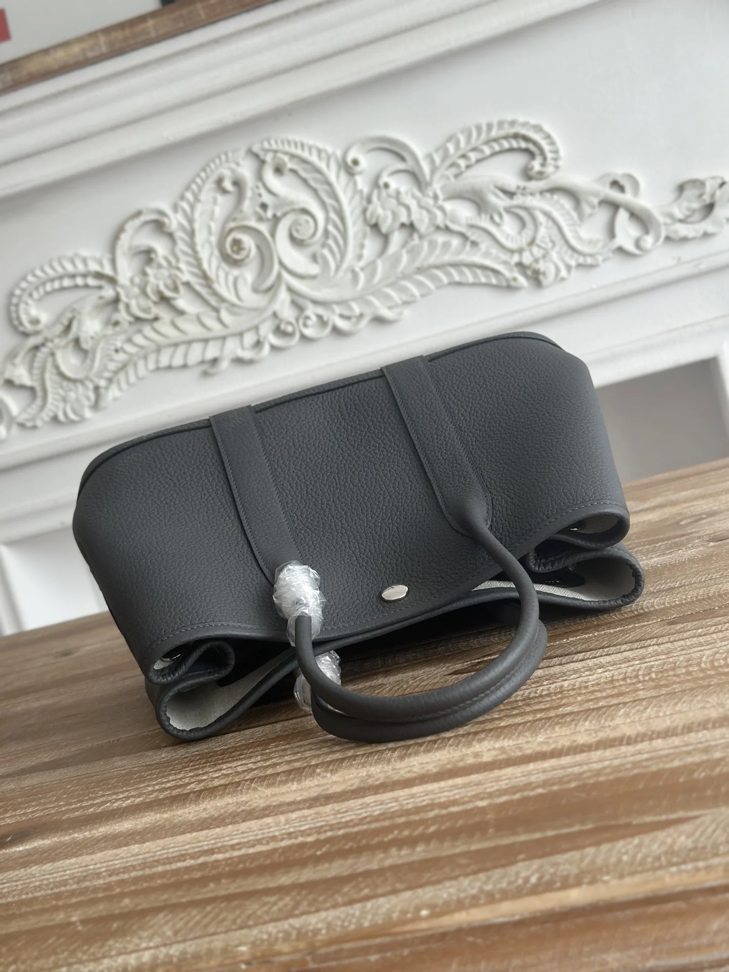 Semi-Handmade Ntogo Leather Garden Party Bag, lightweight and suitable for commuting or as a diaper bag, combines aesthetics and practicality. Semi-handmade with waxed thread. Color: Graphite Gray. Size: 30cm.