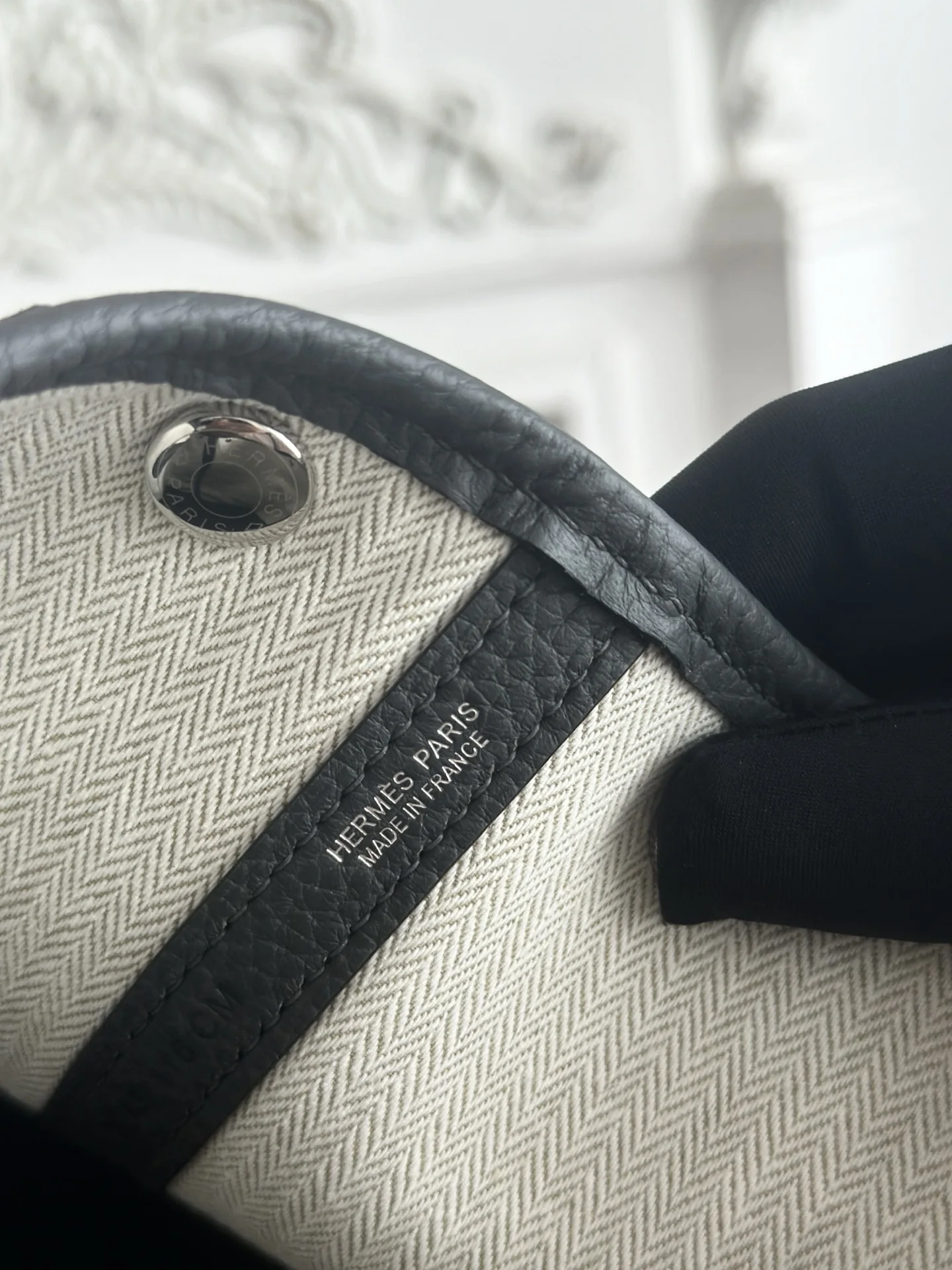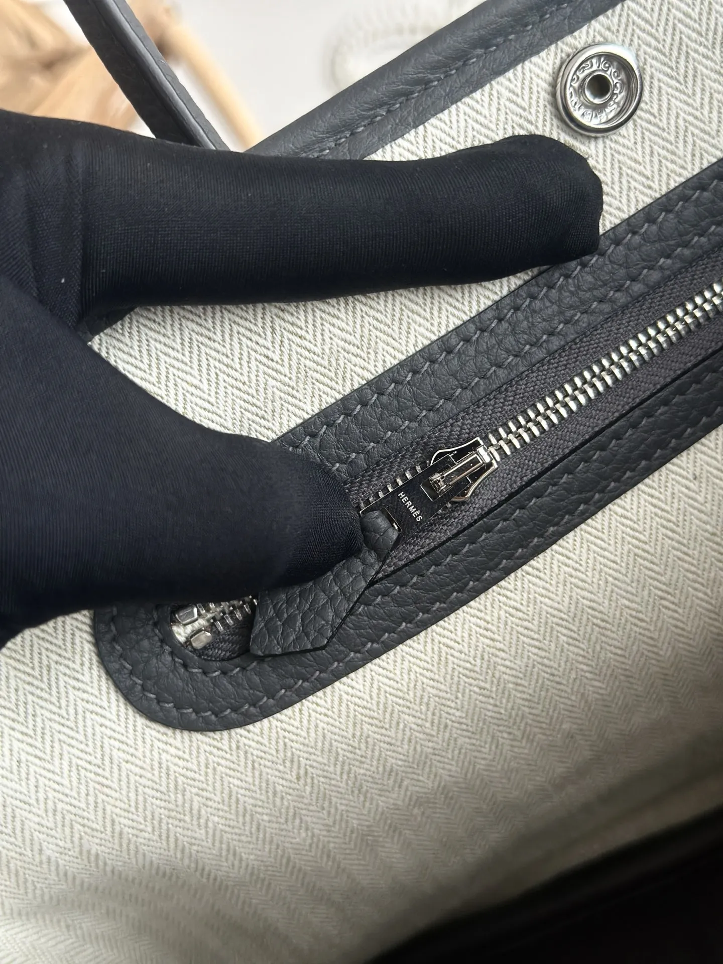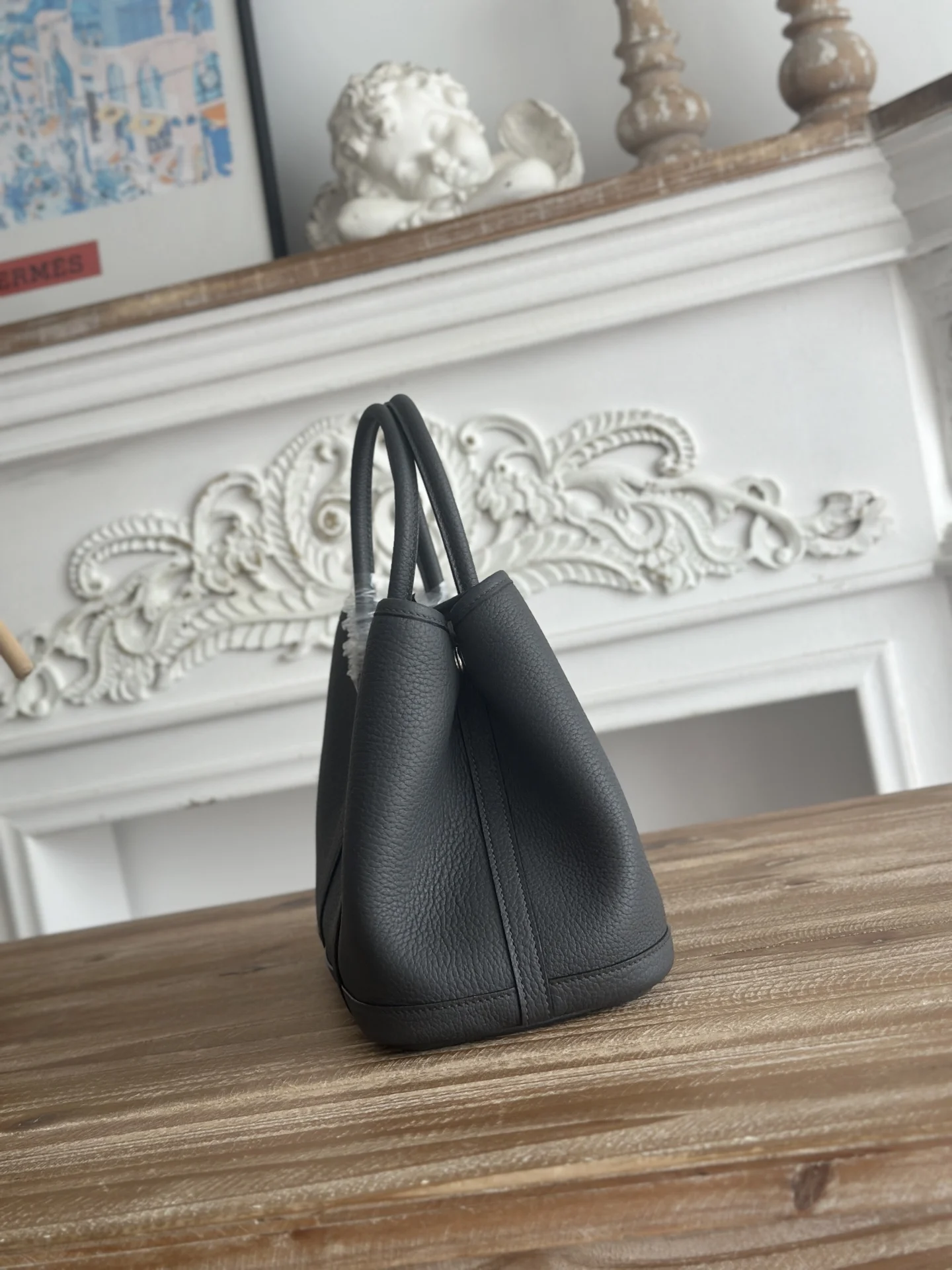 Semi-Handmade Ntogo Leather Garden Party Bag, lightweight and suitable for commuting or as a diaper bag, combines aesthetics and practicality. Semi-handmade with waxed thread. Color: Graphite Gray. Size: 30cm.