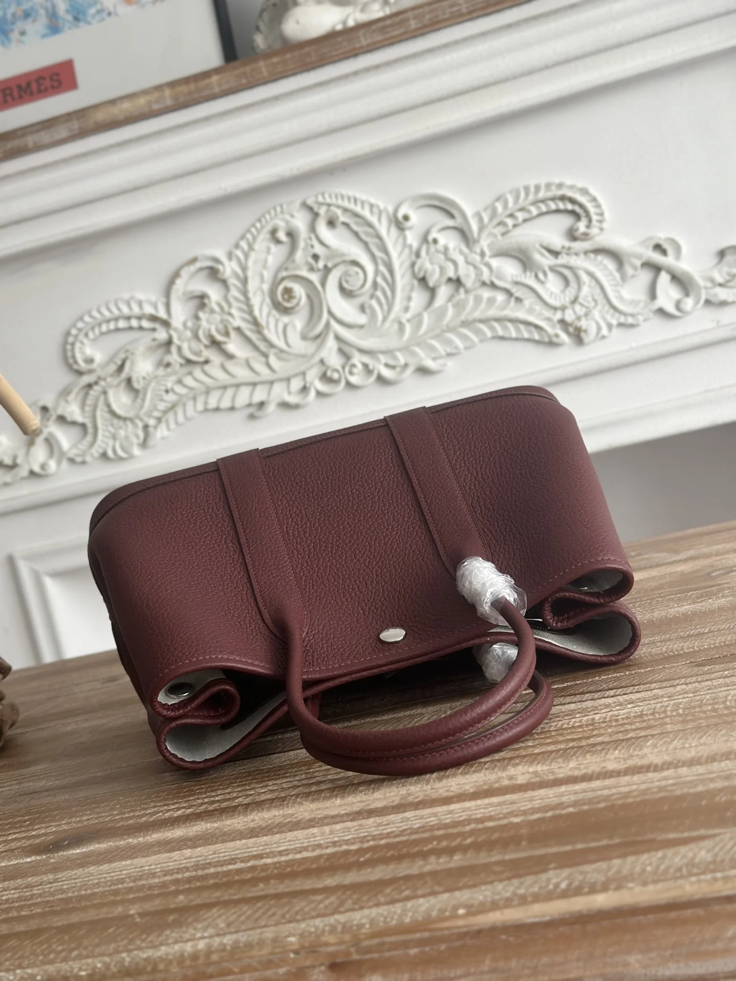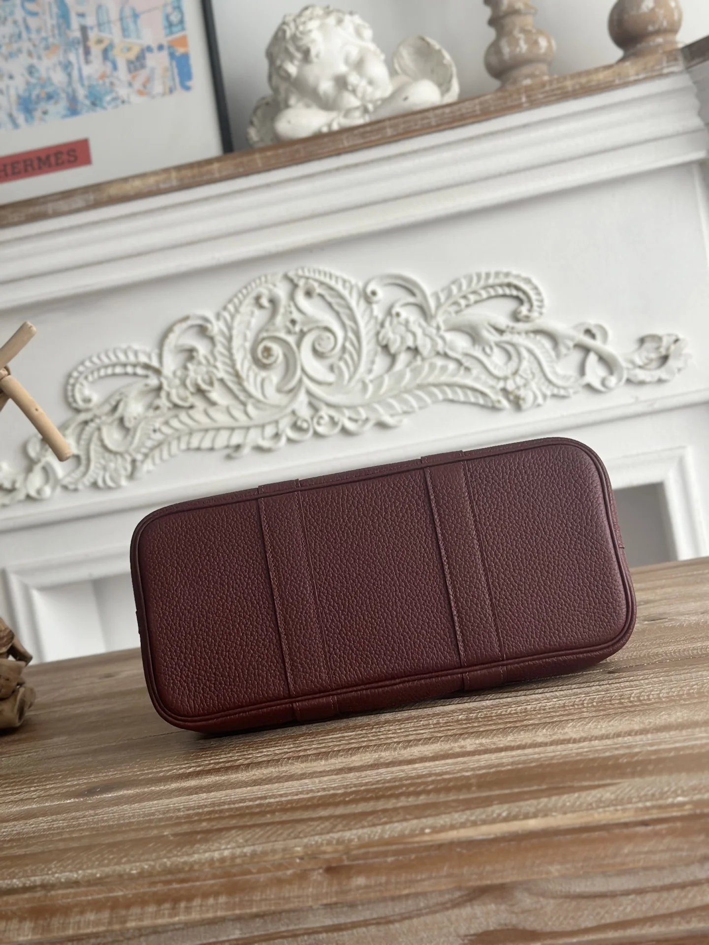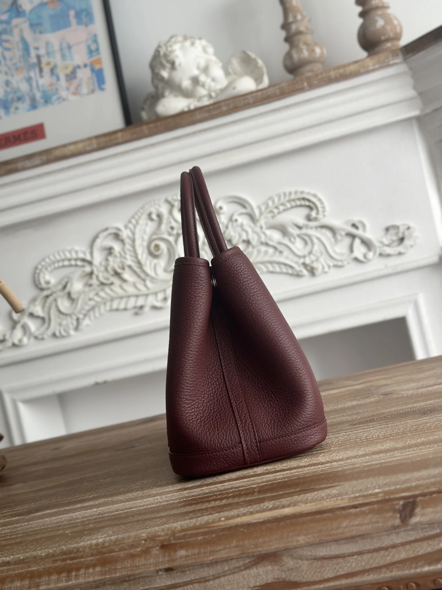 Semi-handmade Ntogo leather Garden Party bag, lightweight and suitable for commuting or as a diaper bag, combines aesthetics and practicality. Waxed thread, semi-handmade. Color: Burgundy. Size: 30cm.