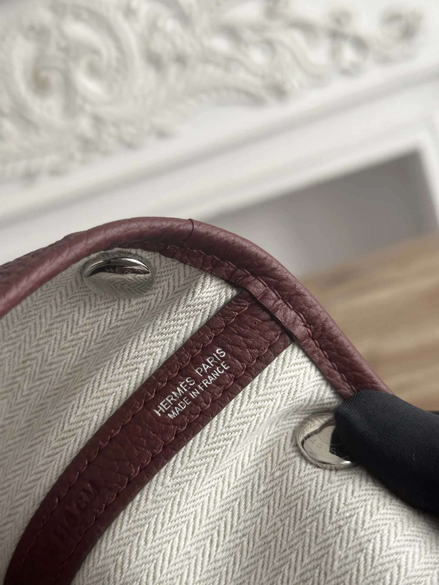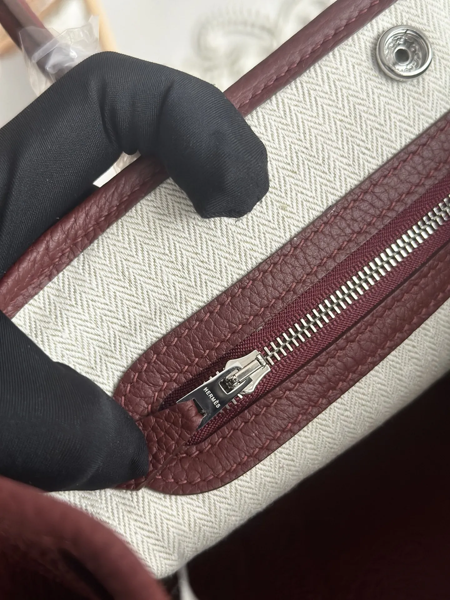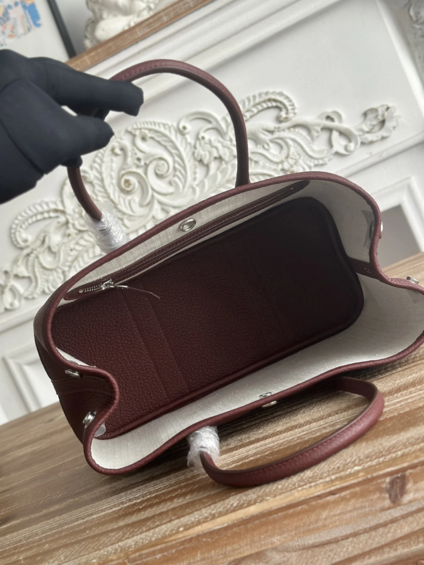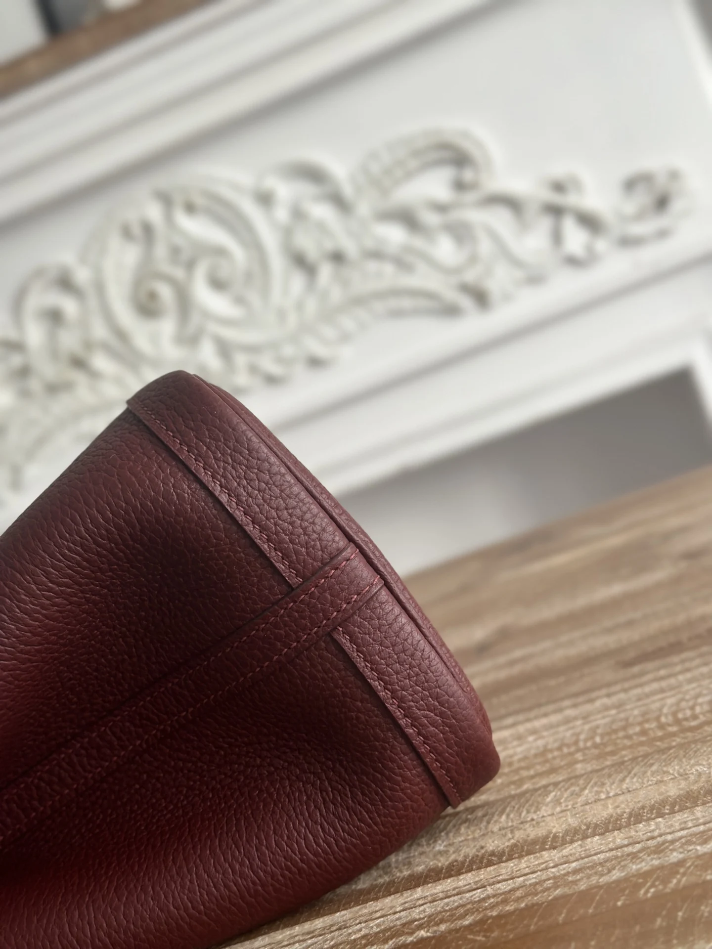 Semi-handmade Ntogo leather Garden Party bag, lightweight and suitable for commuting or as a diaper bag, combines aesthetics and practicality. Waxed thread, semi-handmade. Color: Burgundy. Size: 30cm.