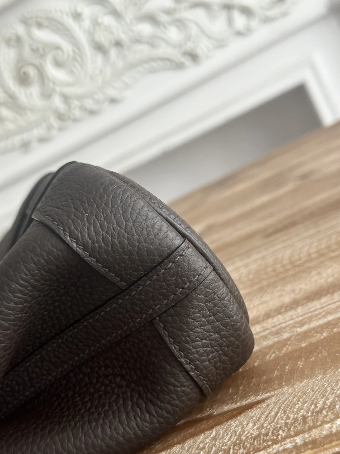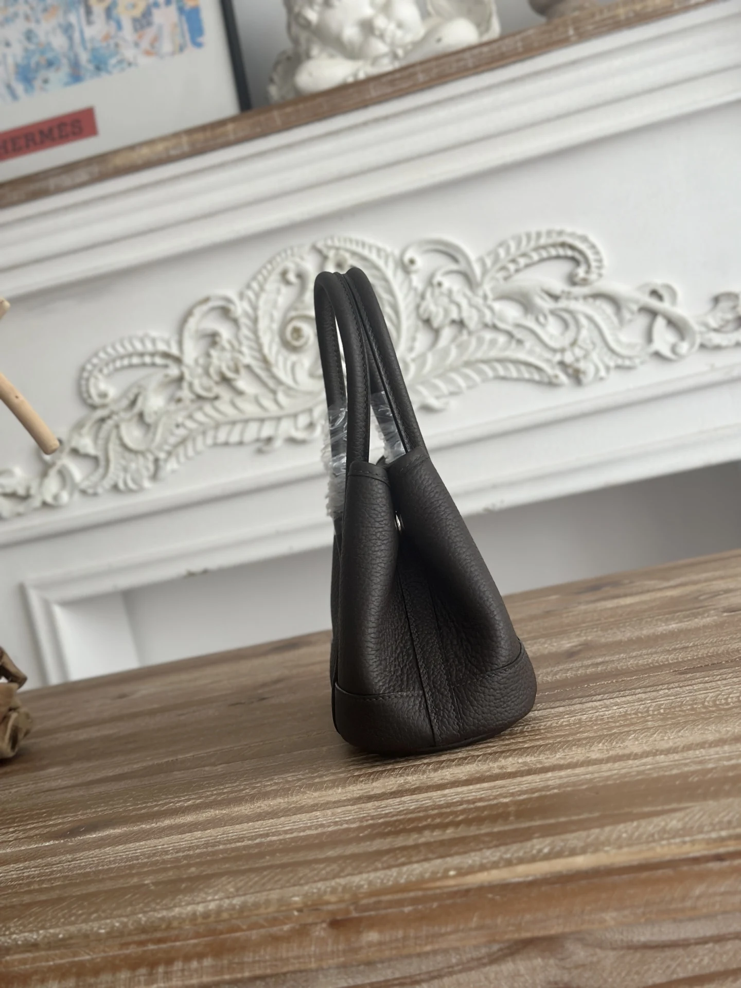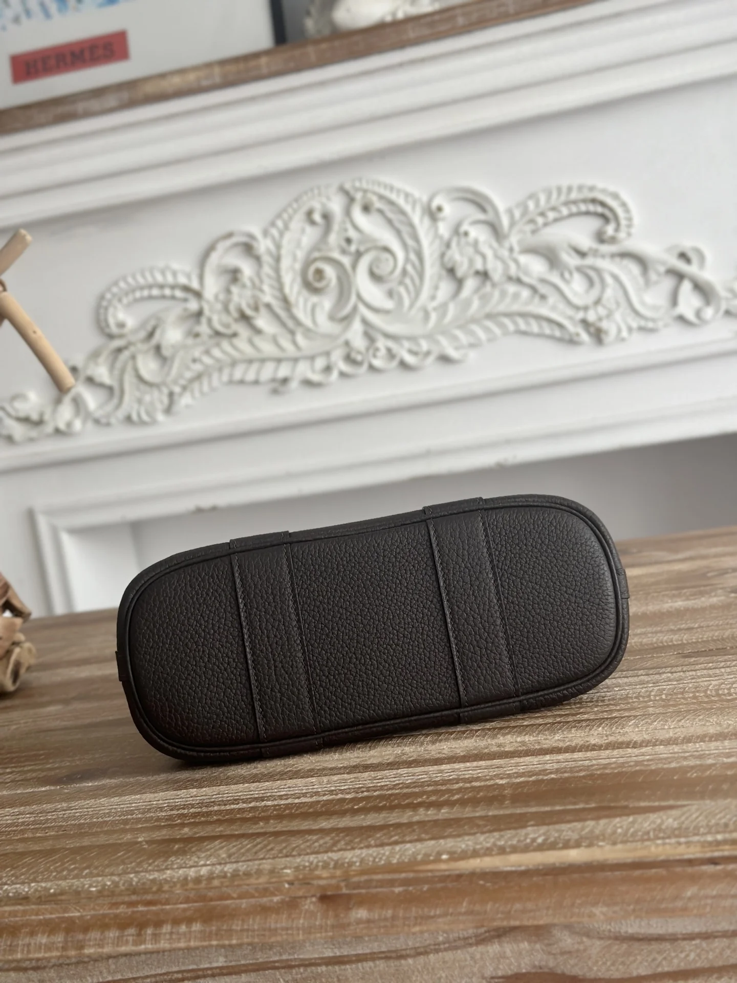 Semi-handmade Ntogo Leather Garden Party Bag Mini, lightweight and suitable for commuting or as a diaper bag. Combines aesthetics and practicality. Waxed thread, semi-handmade. Color: Ebony. Size: 23cm.