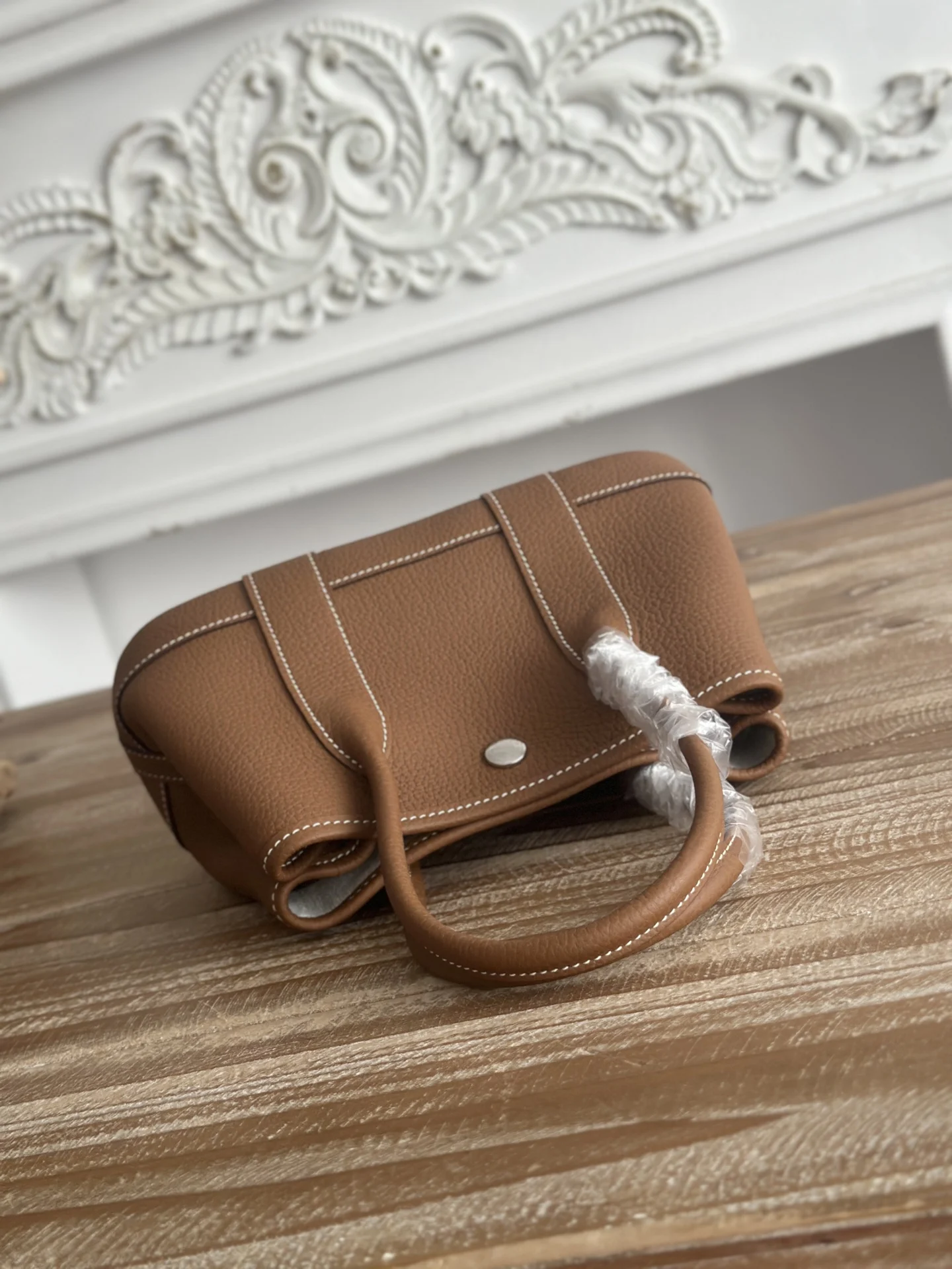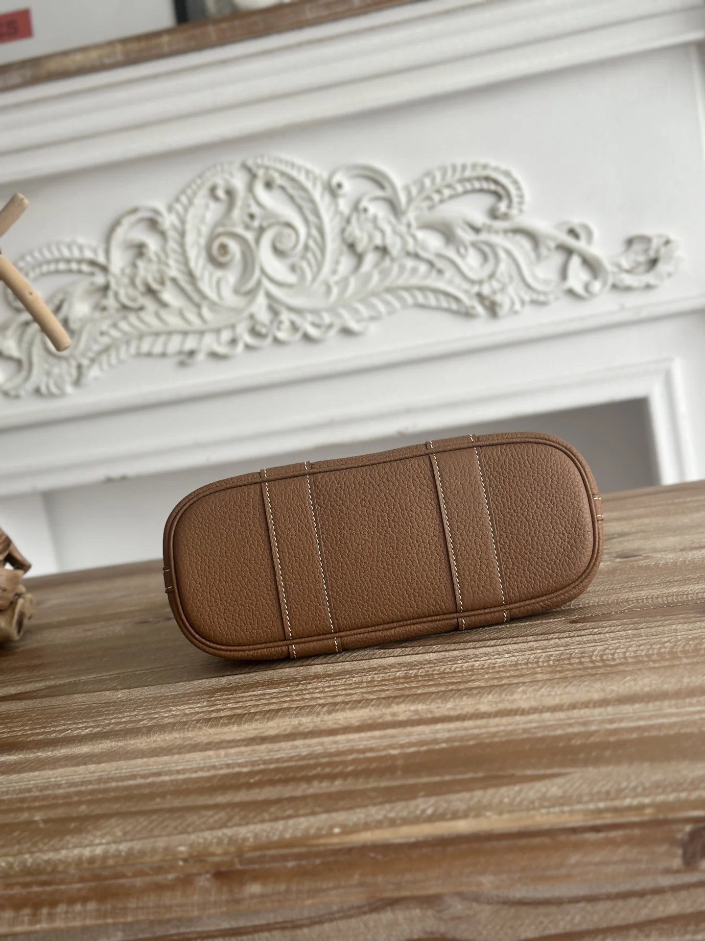 Semi-Handmade Ntogo Leather Garden Party Bag Mini - Lightweight and Ideal for Commuting or as a Diaper Bag. Combines Aesthetics and Practicality. Waxed Thread, Semi-Handmade. Color: Gold Brown. Size: 23cm.