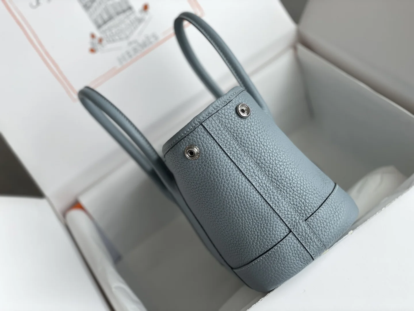 Semi-handmade Garden Party Mini Linen: Electroplated pure steel hardware Leather: Grade A Ntogo, beeswax thread stitching synchronized with the boutique Dimensions: 23*16*10cm
