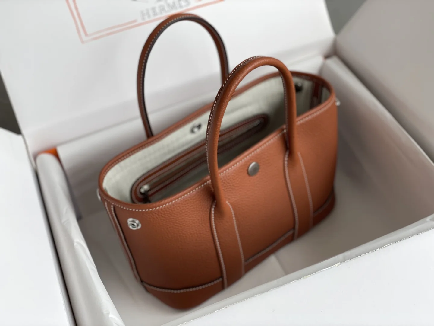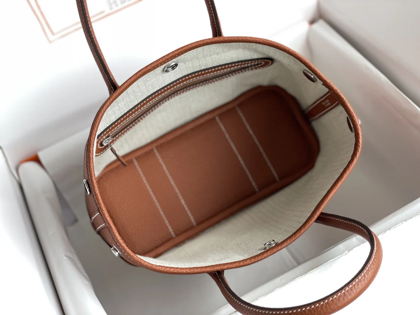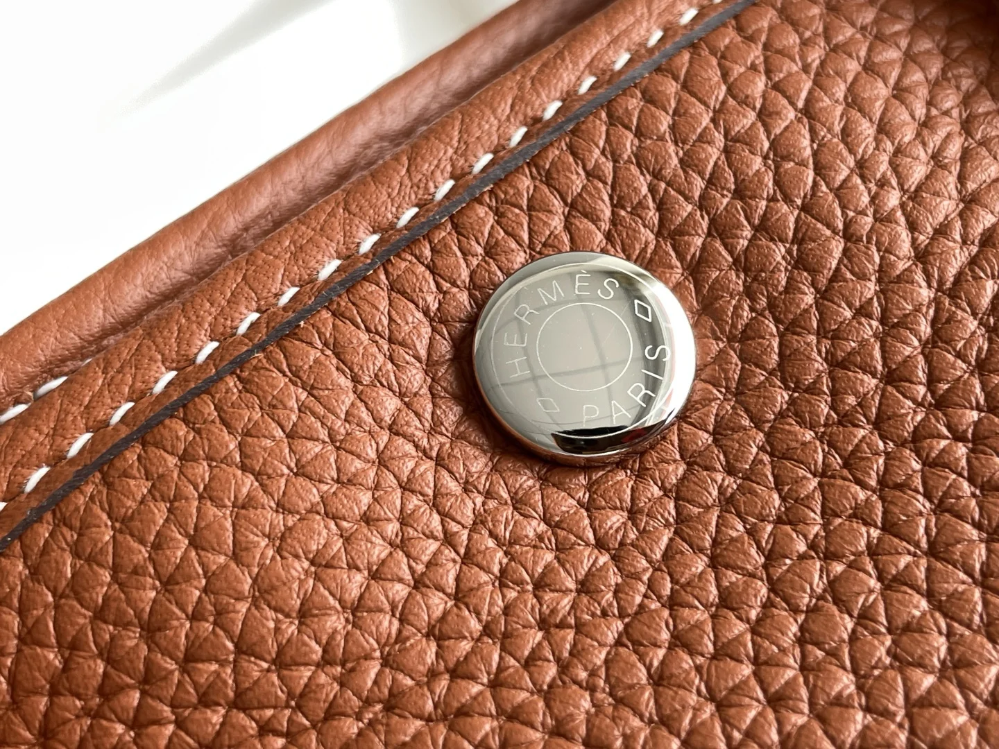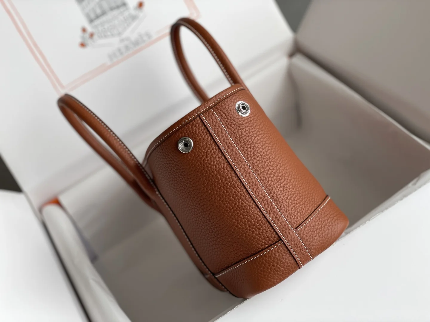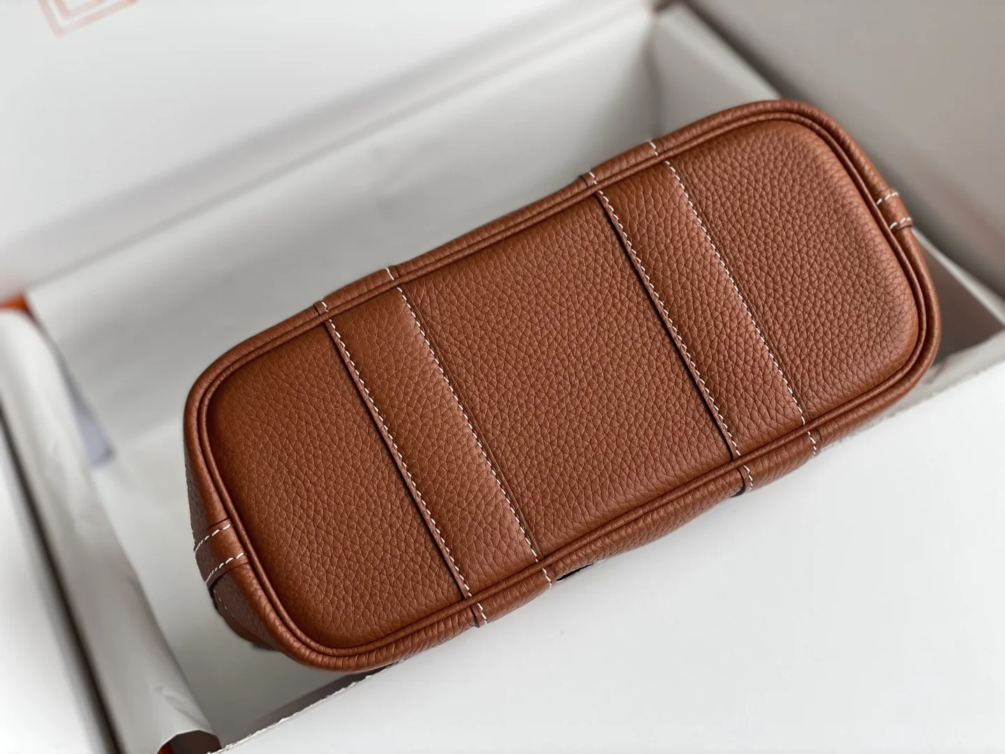 Half Handmade Garden Party Mini Bag, Gold BrownMaterial: Electroplated Pure Steel Hardware, A-Grade Ntogo LeatherStitching: Wax Thread (Same as Original)Dimensions: 23*16*10cm