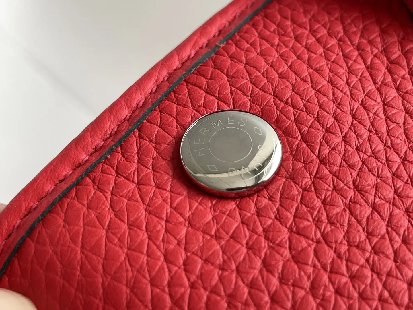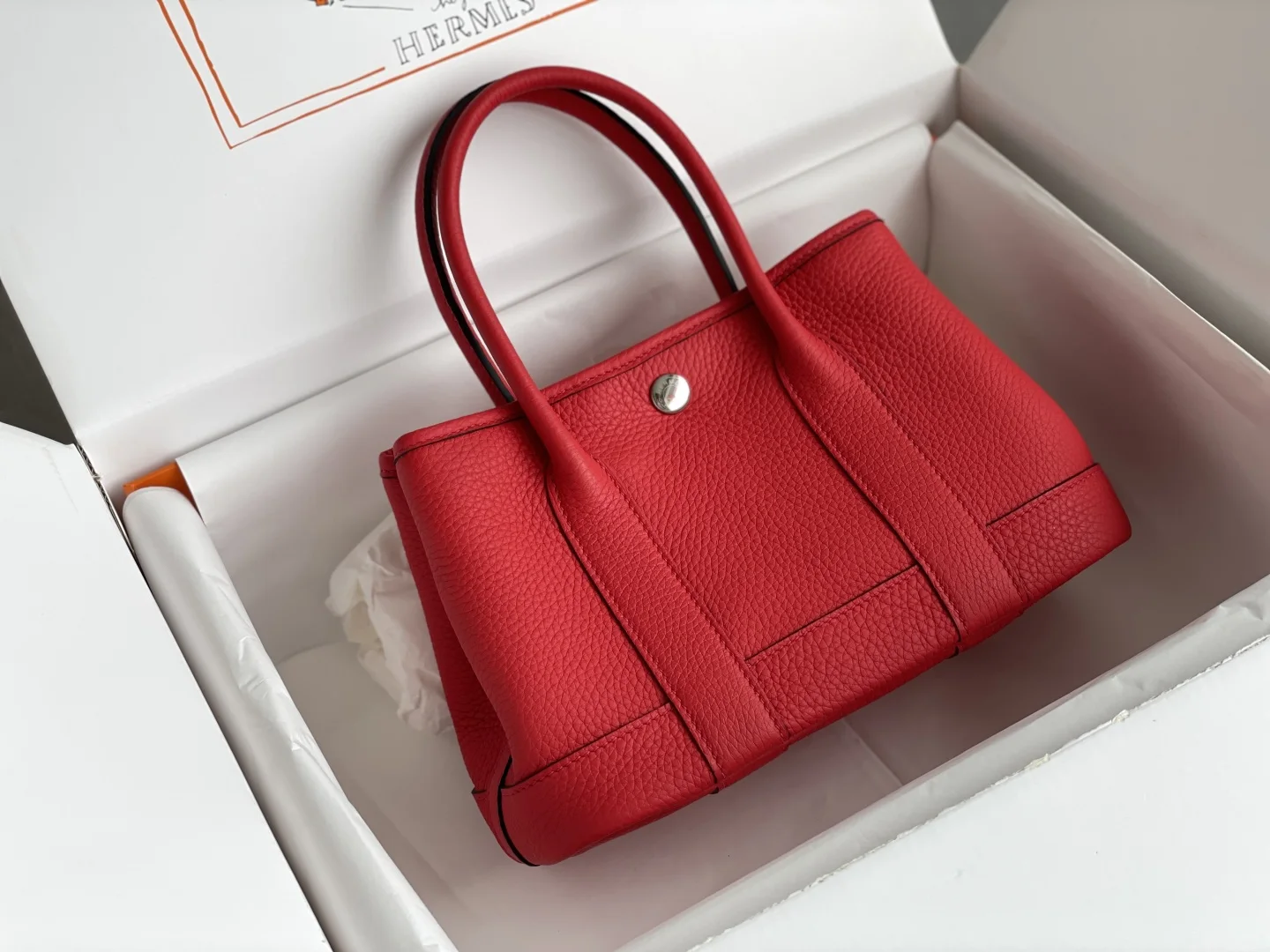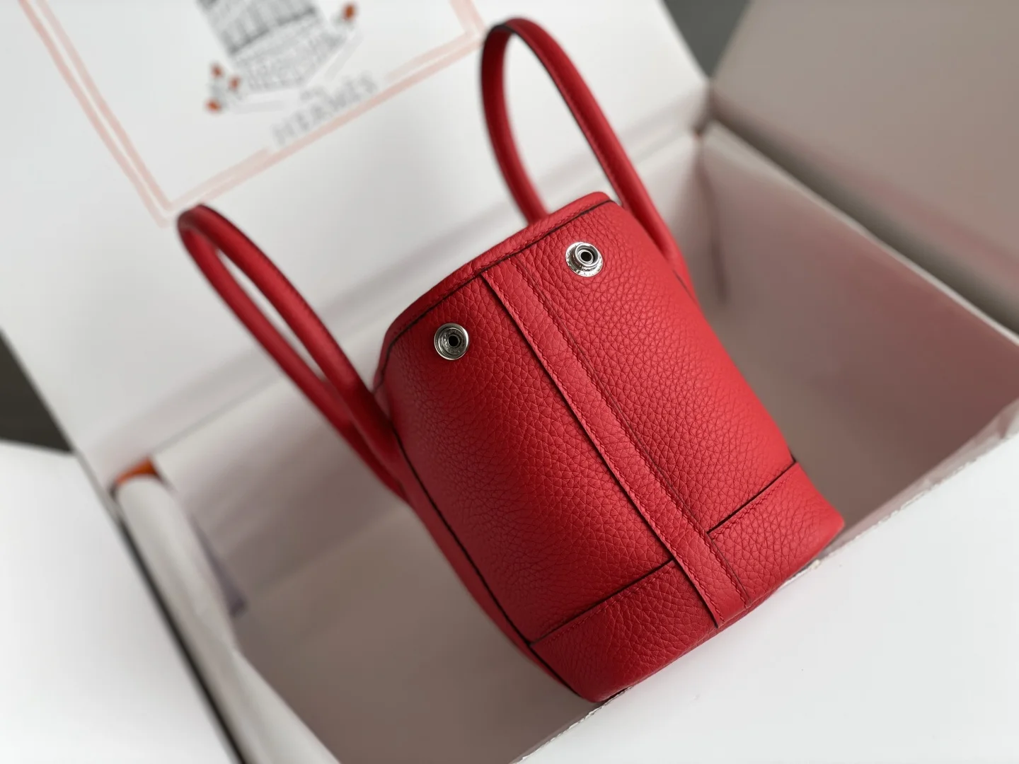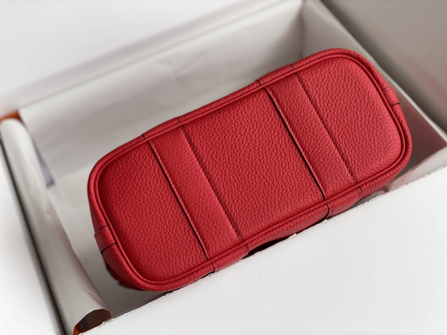 Semi-handmade Garden Party Mini Bag, Scarlet. Hardware: Electroplated pure steel. Leather: Grade A Ntogo, hand-stitched with waxed thread (same as authentic). Dimensions: 23*16*10cm