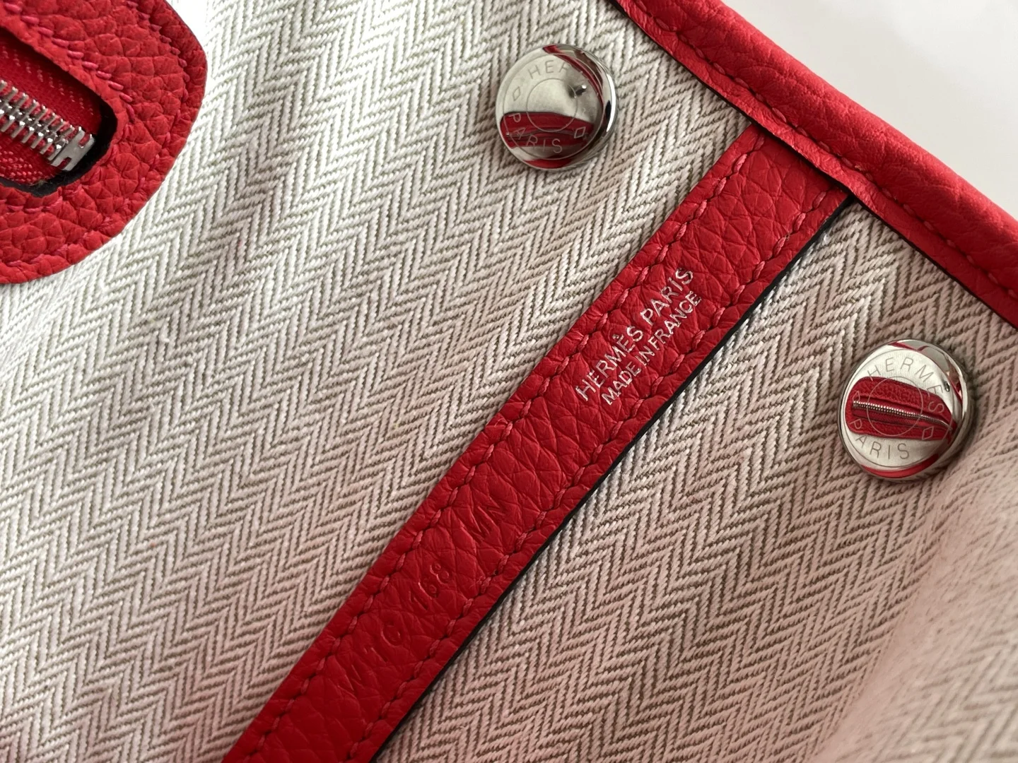 Semi-handmade Garden Party Mini Bag, Scarlet. Hardware: Electroplated pure steel. Leather: Grade A Ntogo, hand-stitched with waxed thread (same as authentic). Dimensions: 23*16*10c..