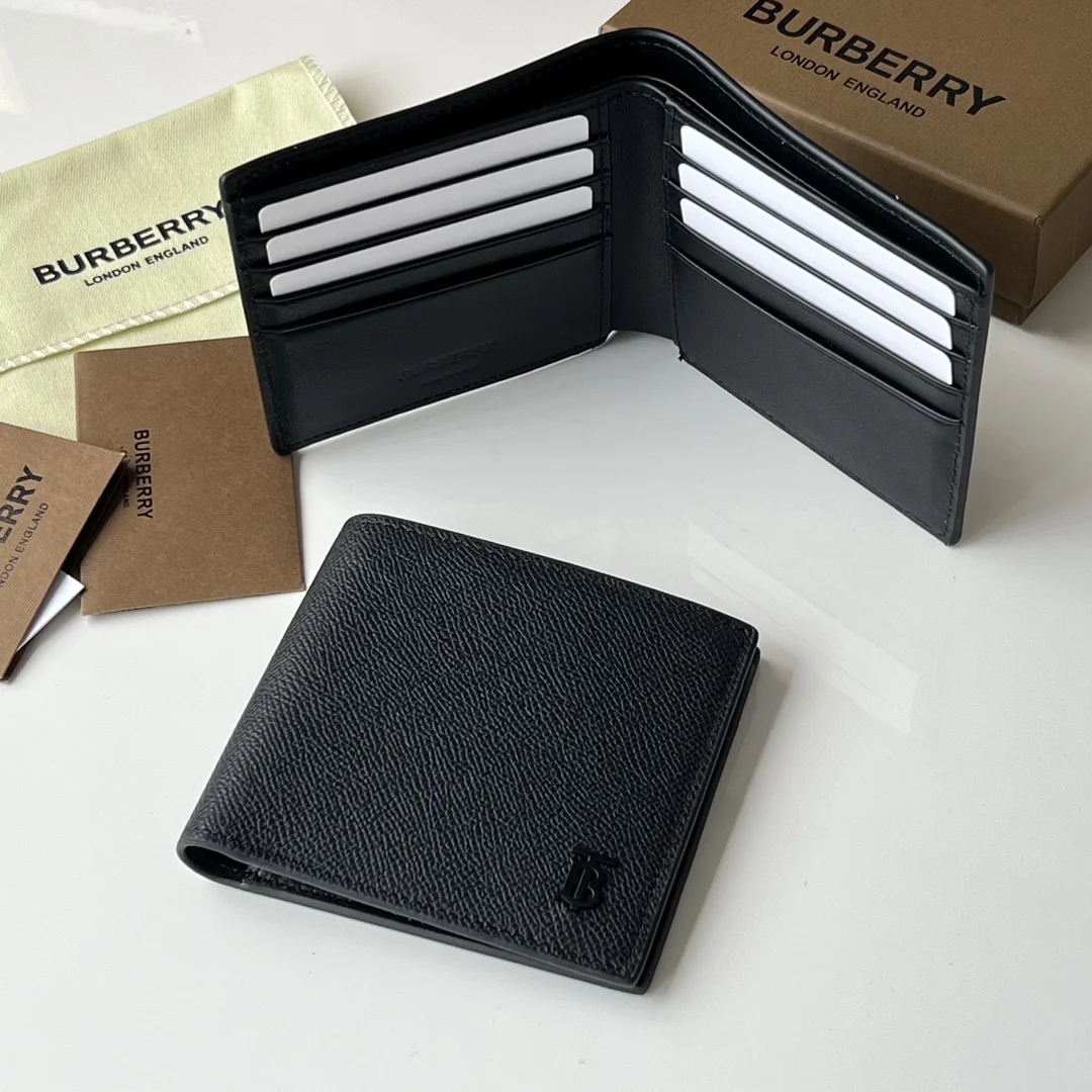 Grained Leather TB Bi-fold Wallet [B. Family] Original Export The main body is made of imported palm-grained leather with black calfskin, counter quality, exquisite workmanship, actual product shooting, 80697311 Black, Size 11cm*10cm*