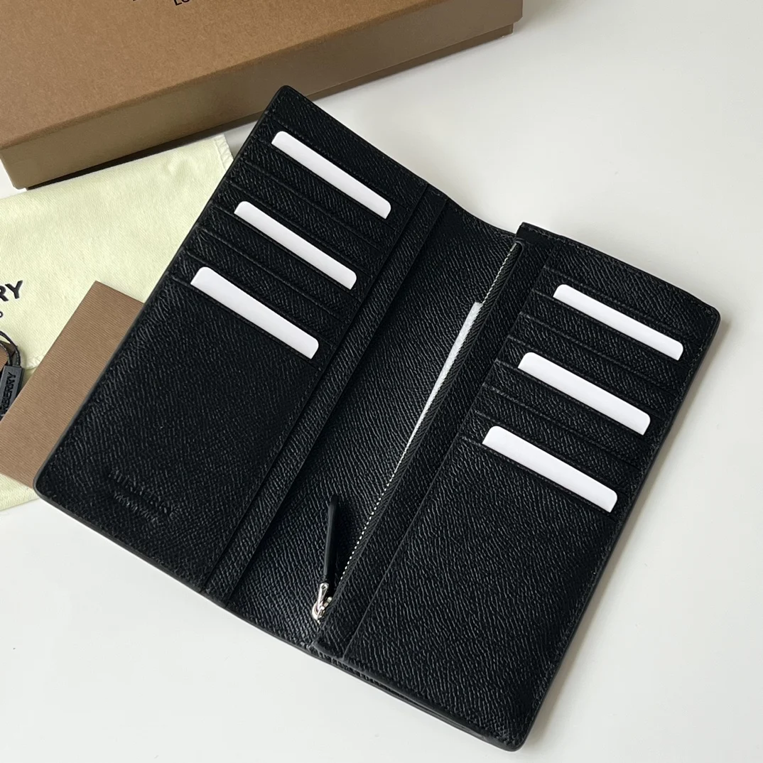Grained Leather Long Wallet [B. Home] Original Export The main body is made of imported palm-grained leather with black calfskin, silver-tone metal hardware, counter quali..