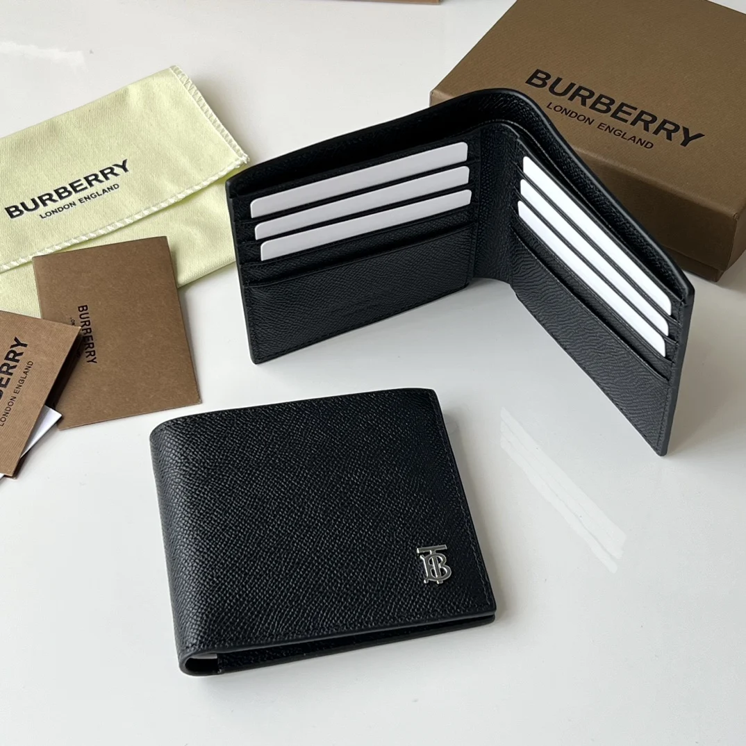 Grained Leather TB Bi-fold Wallet [B. House] Original Export The main body is made of imported palm-grained leather, counter quality, exquisite workmanship, actual product shooting, 80627091 Black, Size 11cm*10cm*