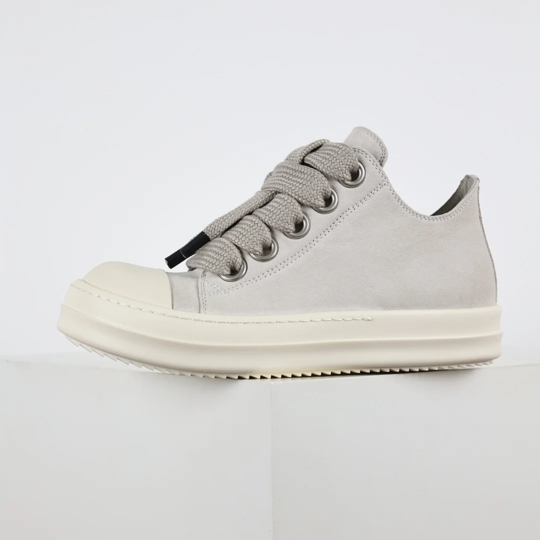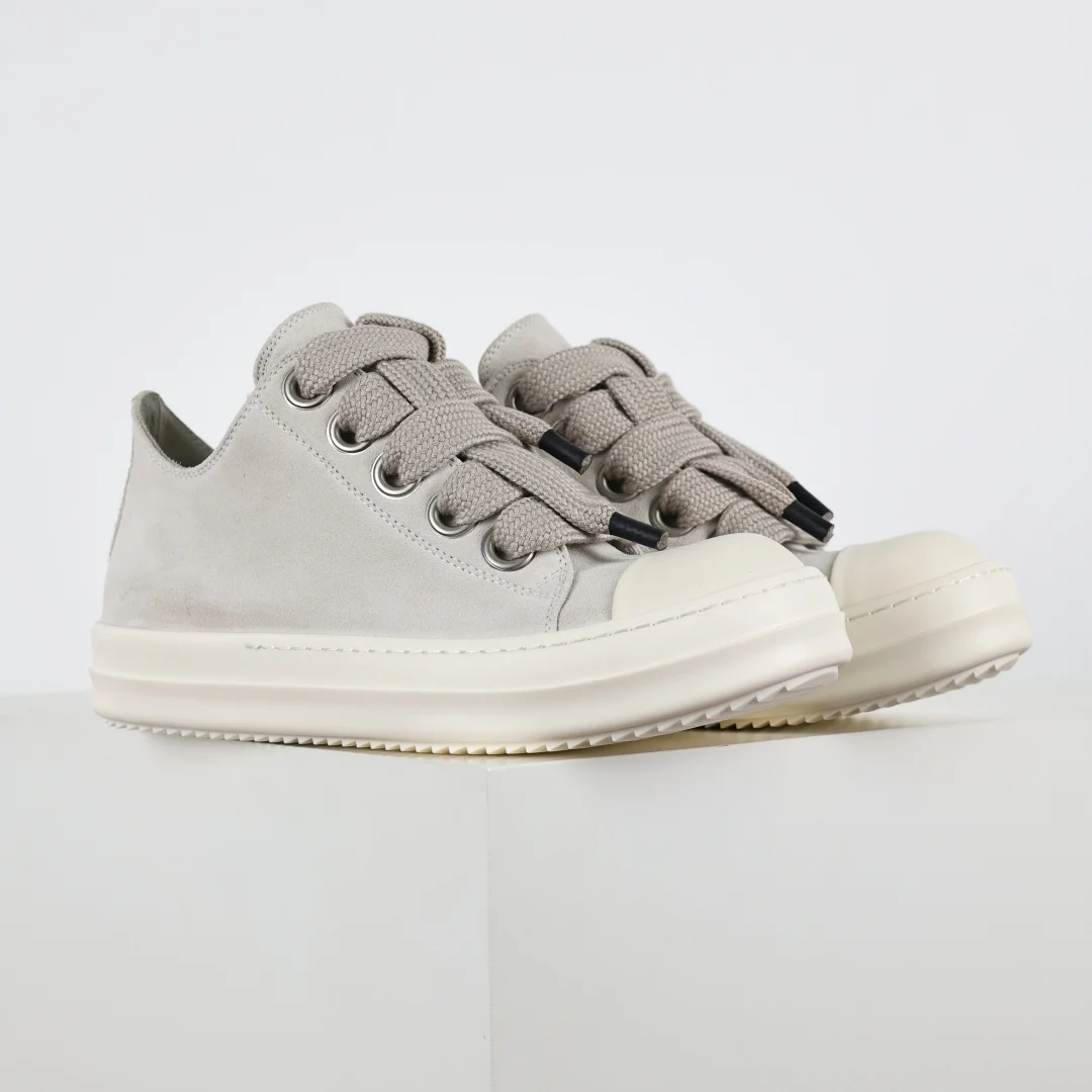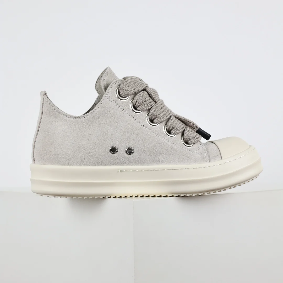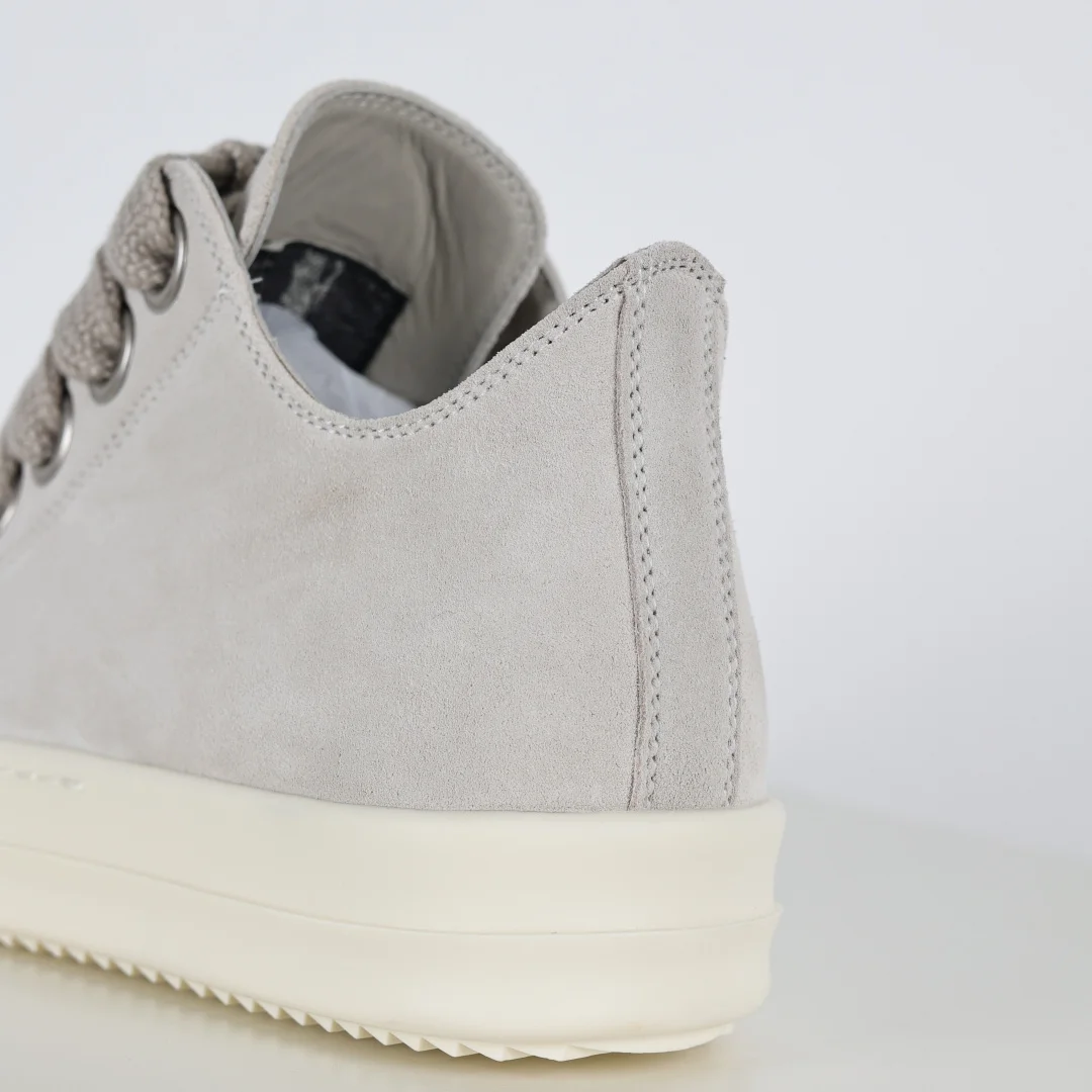 Rick Owens Grayish-white suede chunky lace-up low-top casual sneakers