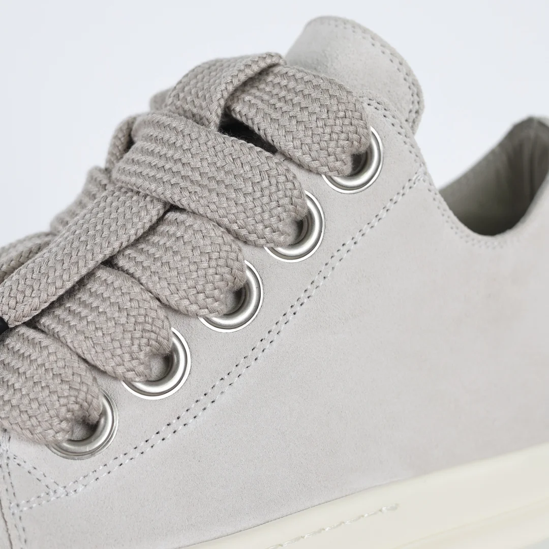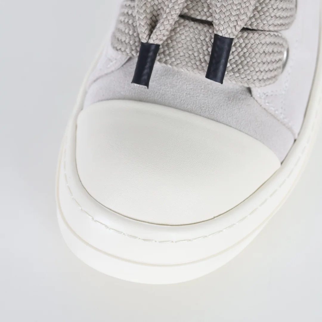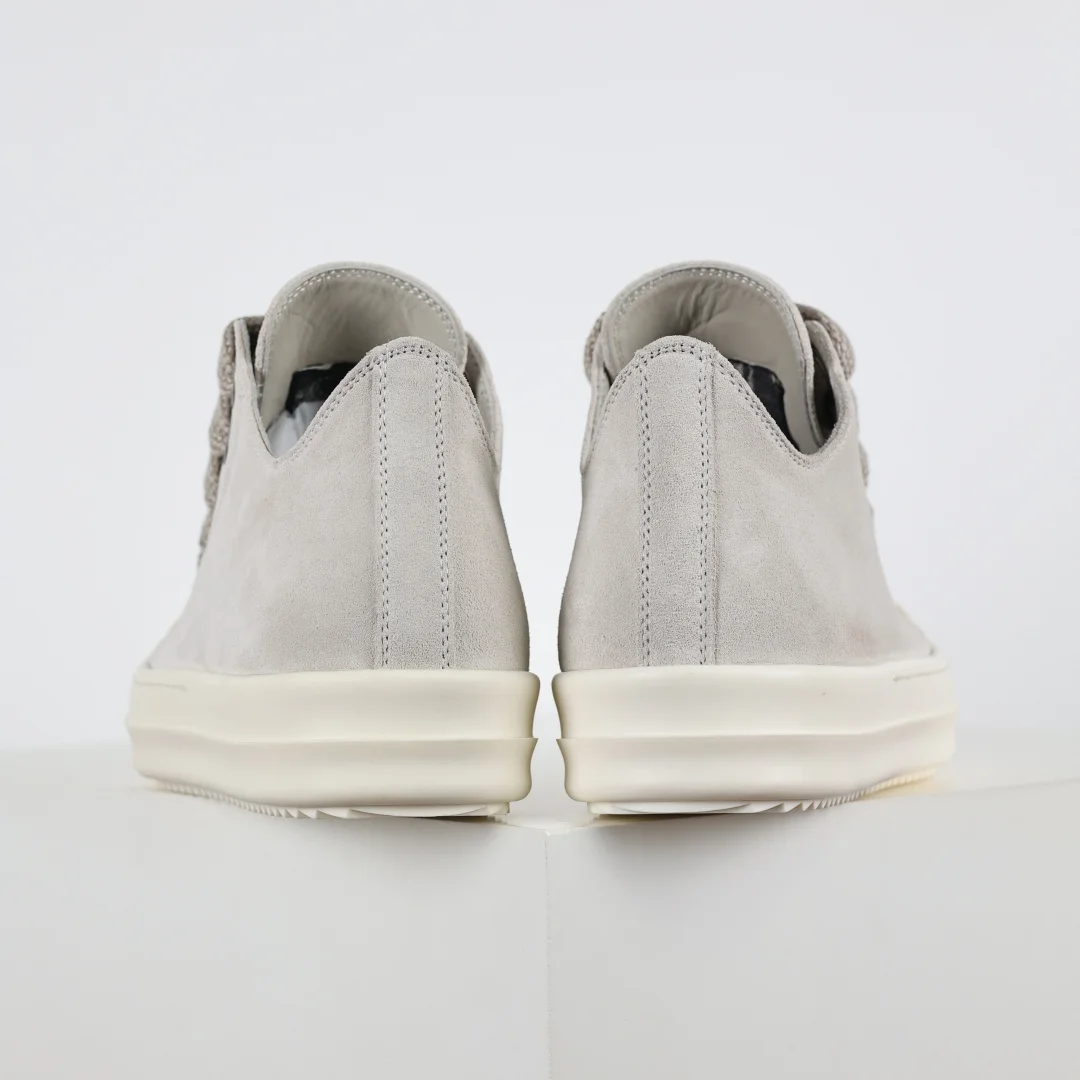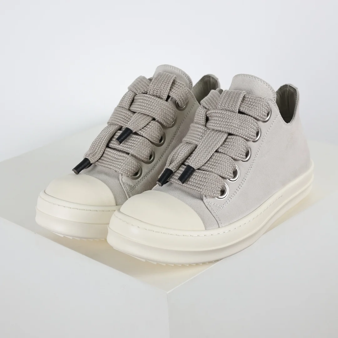Rick Owens Grayish-white suede chunky lace-up low-top casual sneakers