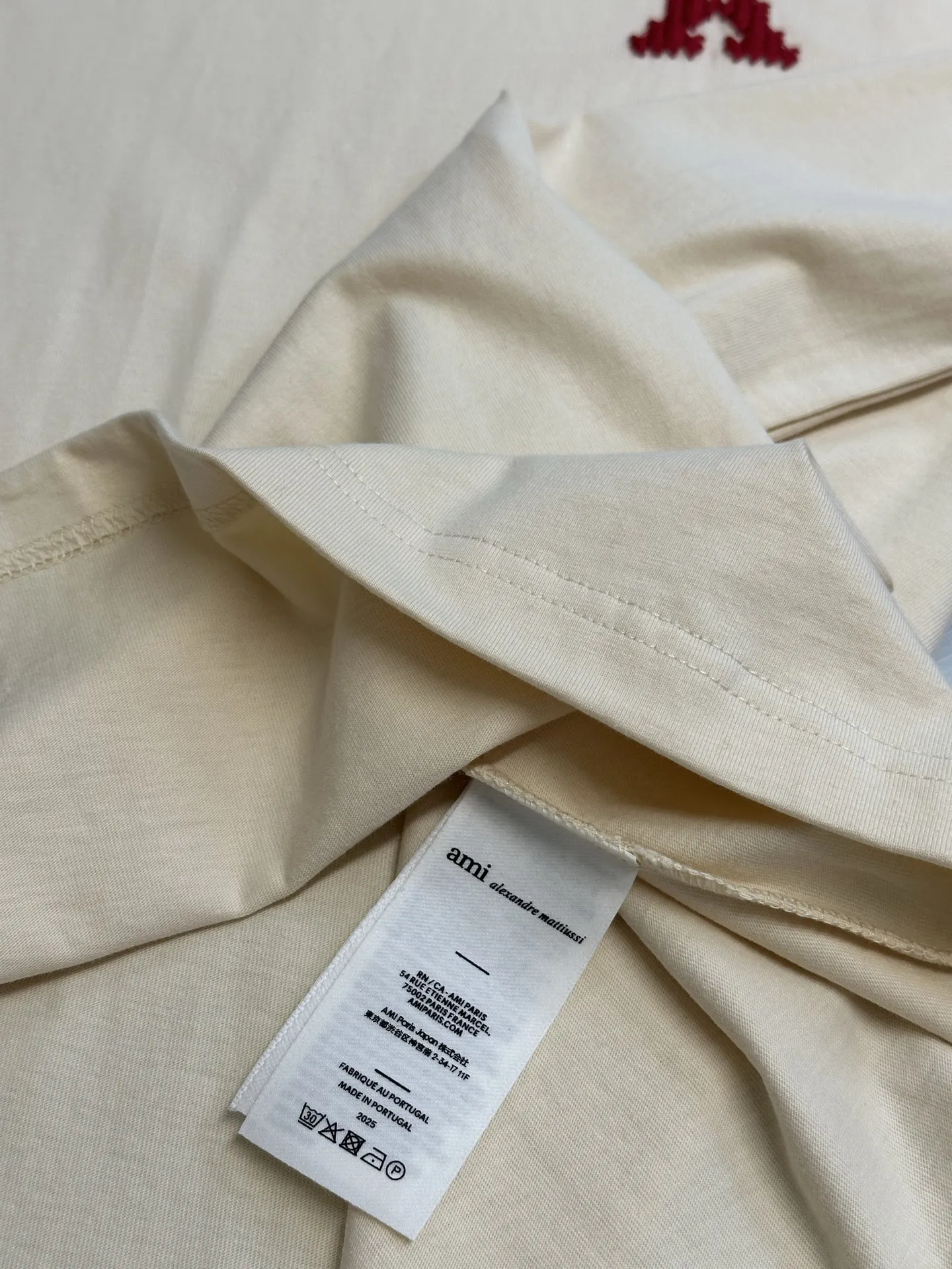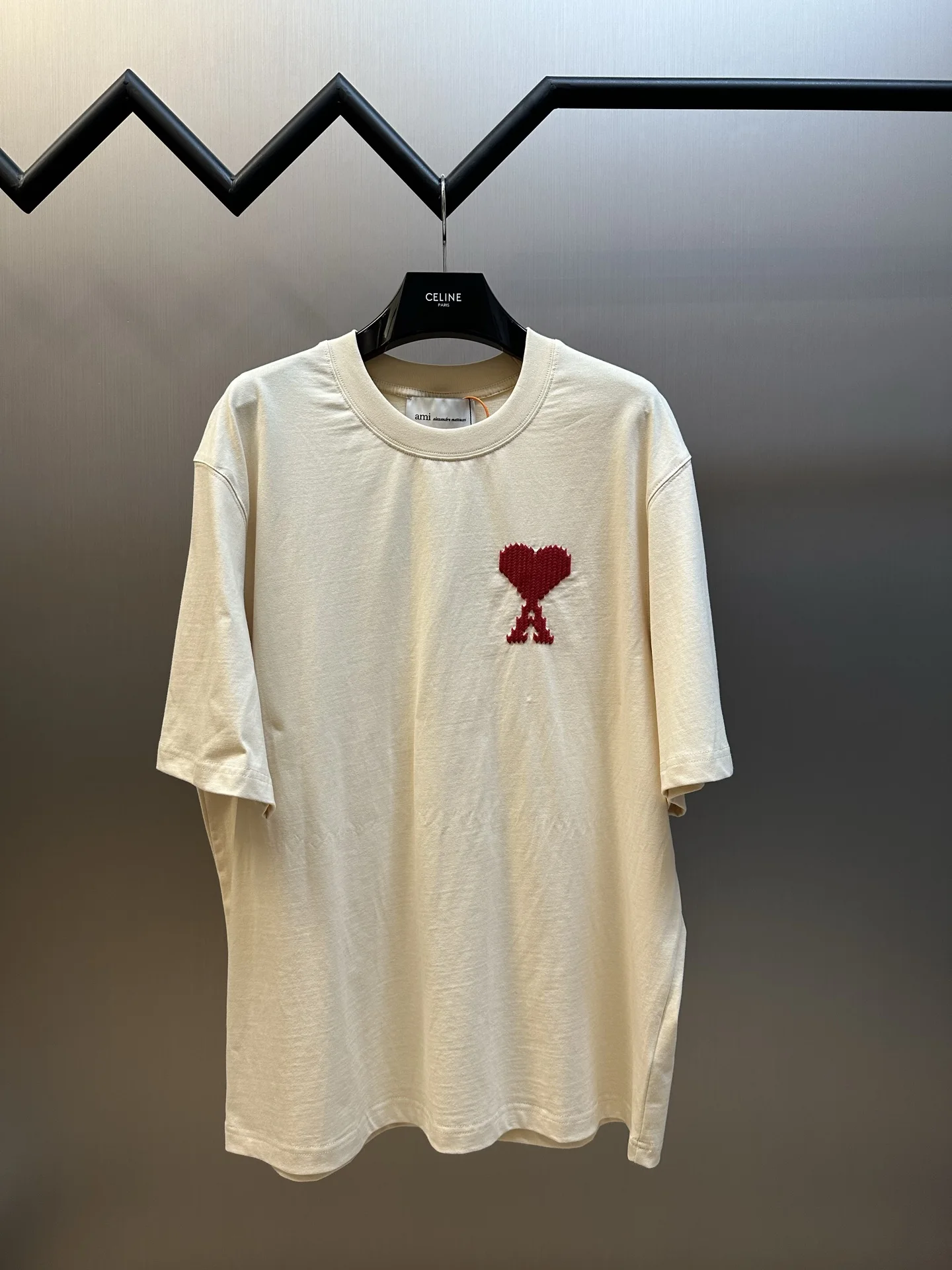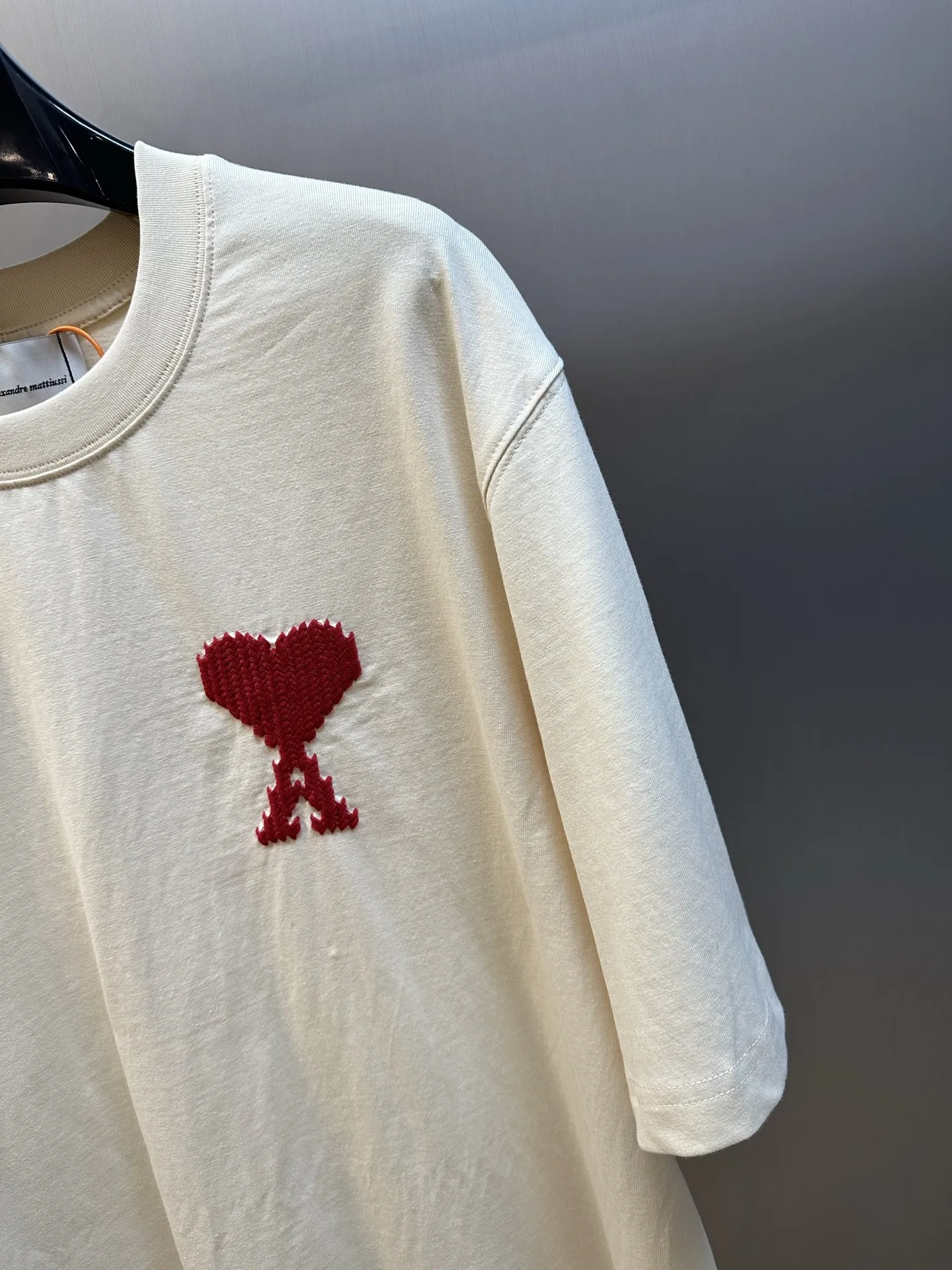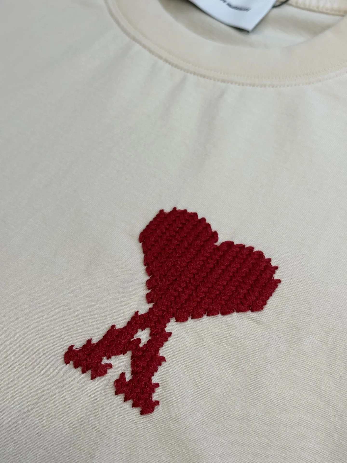 Customized misty soft plain cotton fabric, the heart logo is deconstructed into rough pixel particles, pixelated and embellished on the chest, complementing the AMI letter embroidery on the back to enhance brand recognition and hide the French romance.
