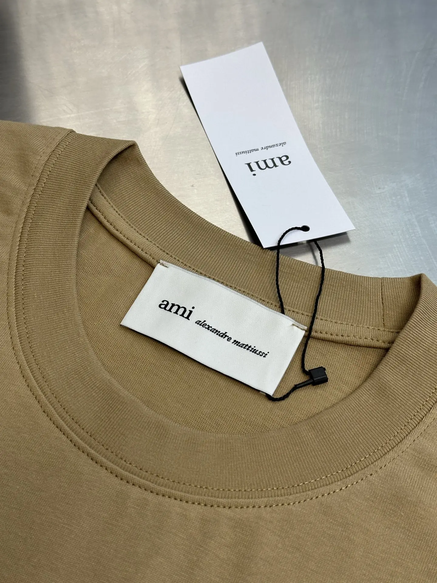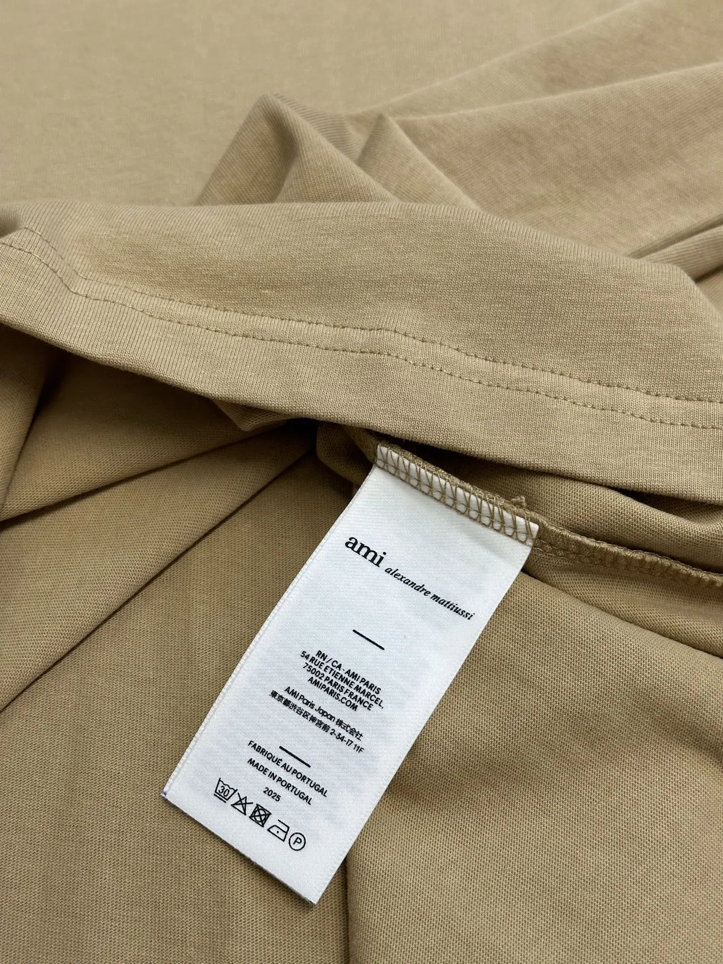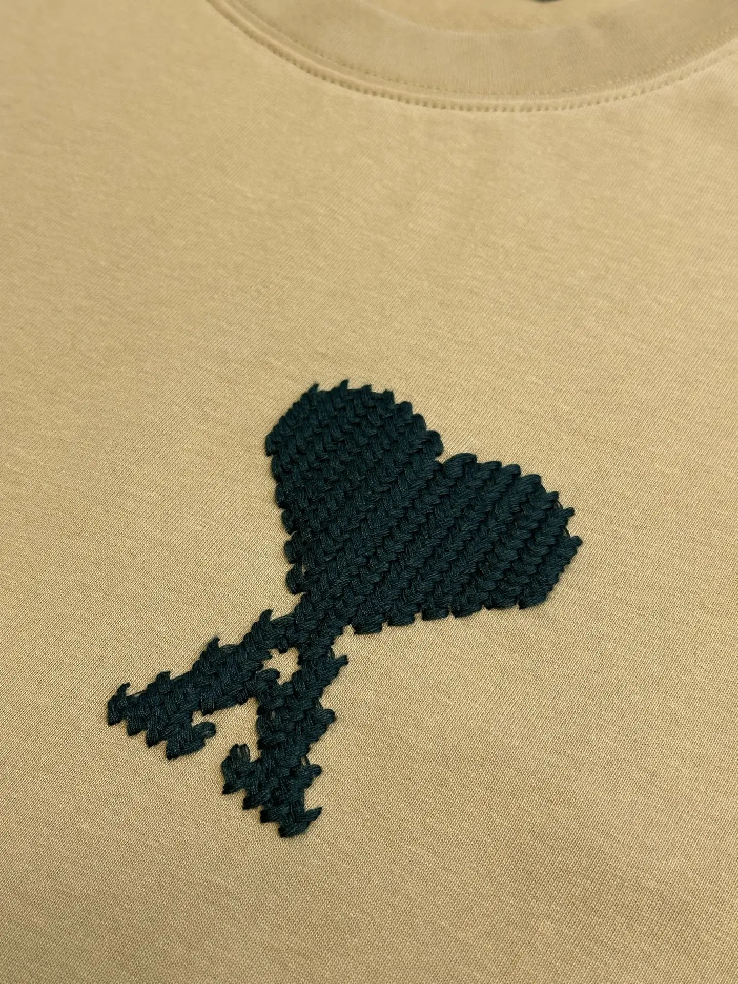 Customized misty soft plain cotton fabric, the heart logo is deconstructed into rough pixel particles, pixelated and embellished on the chest, complementing the AMI letter embroidery on the back to enhance brand recognition, hiding the French romance.